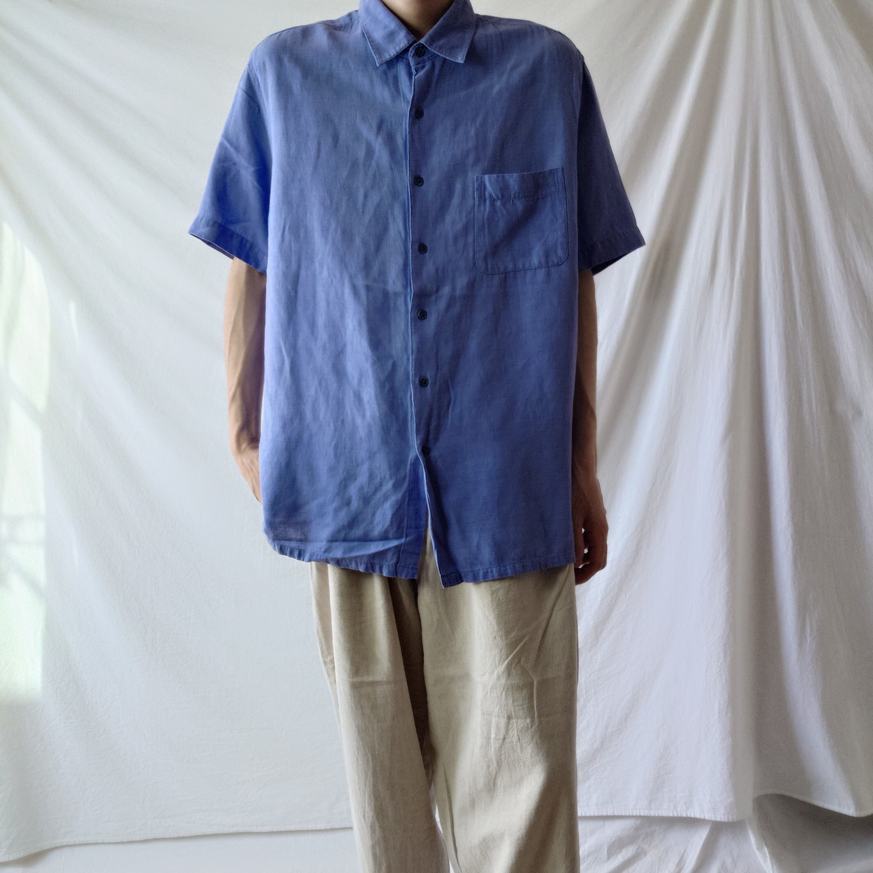 【00s】古着 シルクリネンシャツ 半袖シャツ ボックスシルエット