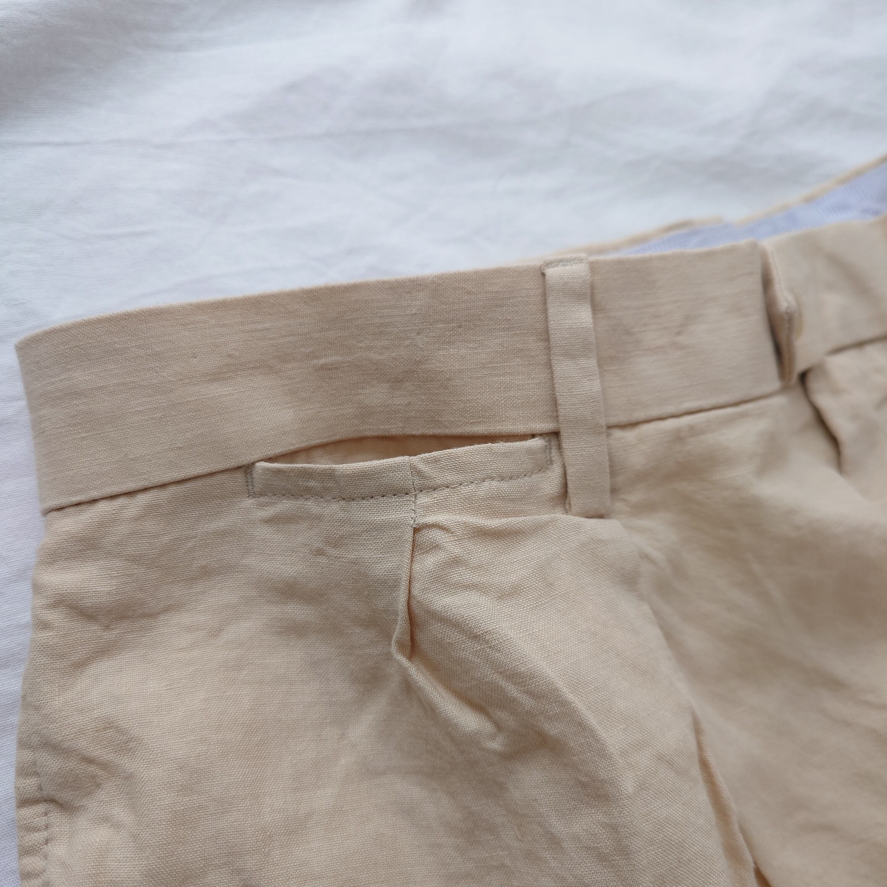 アメリカ古着のリネンパンツというと、ラルフローレンなどが浮かびますがこういった古着のリネンスラックスパンツもかなり質が高いのでおすすめ!