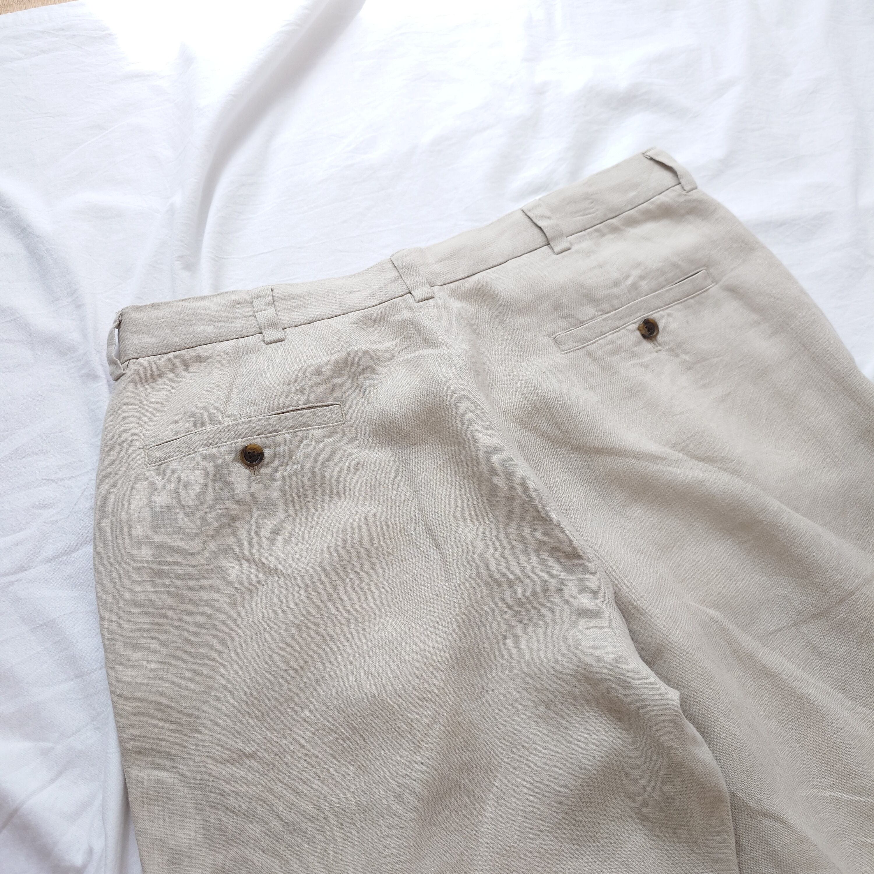 アメリカ古着のリネンパンツというと、ラルフローレンなどが浮かびますがこういった古着のリネンスラックスパンツもかなり質が高いのでおすすめ!