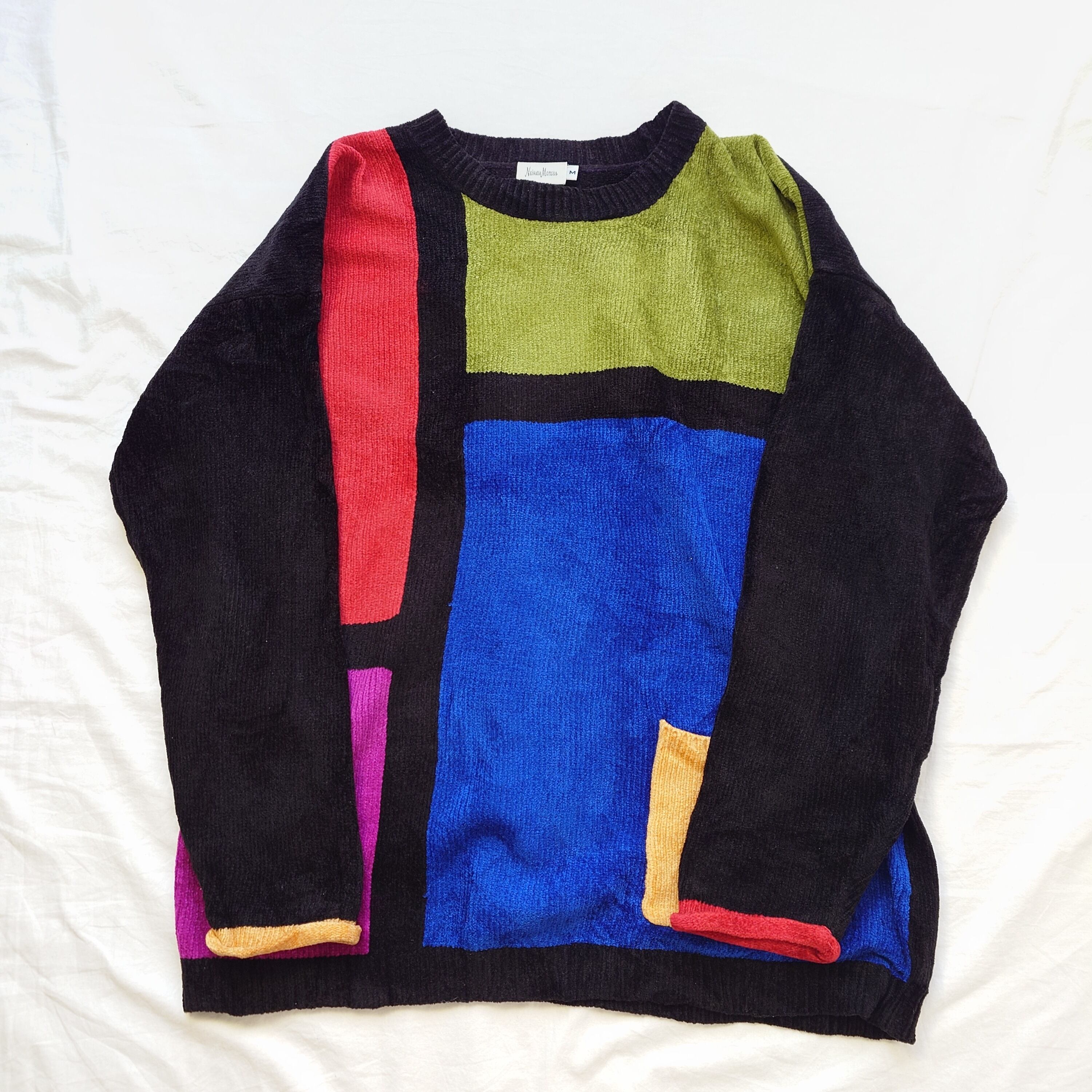 【90s】neiman marcus ベロアニット クレイジーパターン マルチカラー レトロ 古着