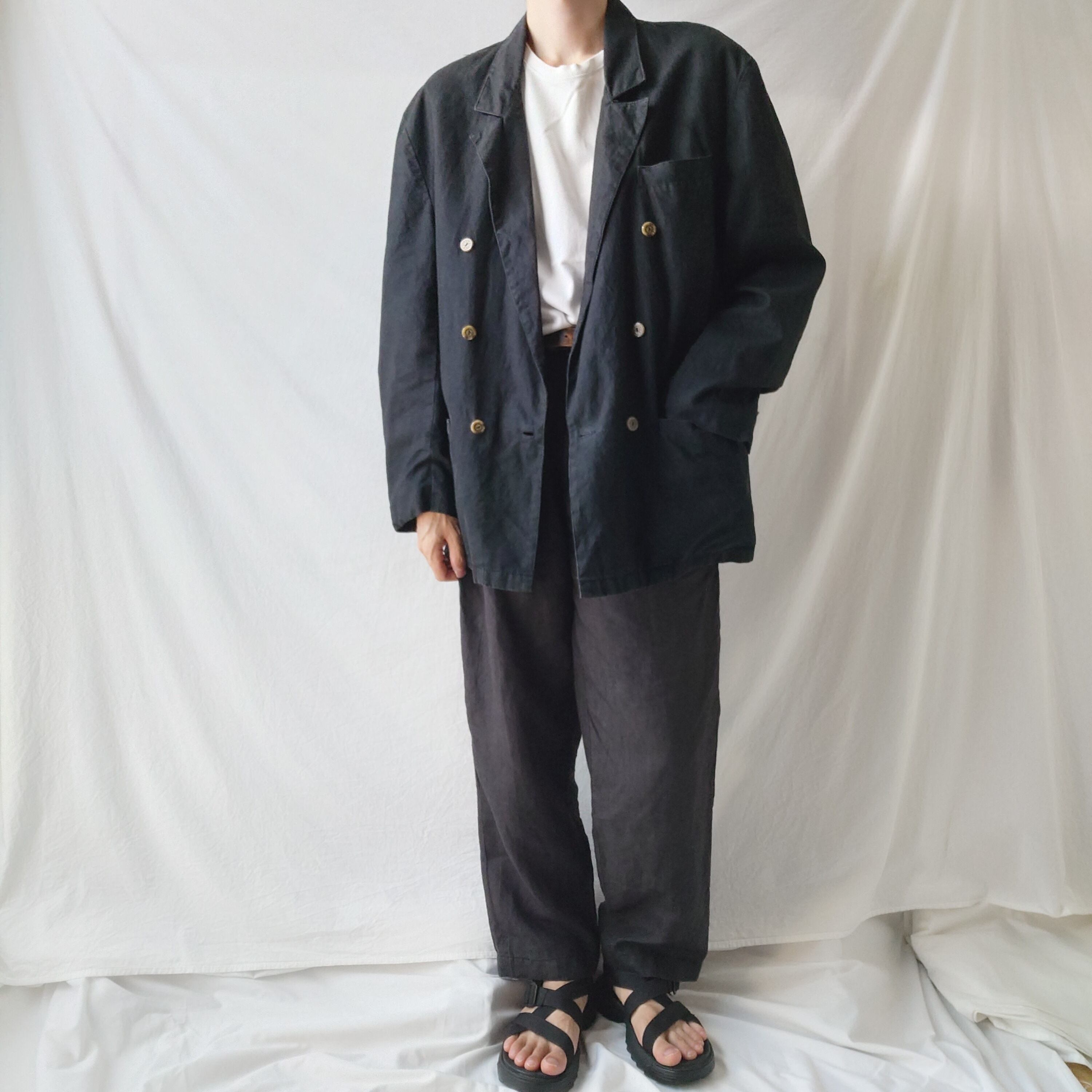 【ユーロ古着】コットンリネン テーラードジャケット ブラック フェード
