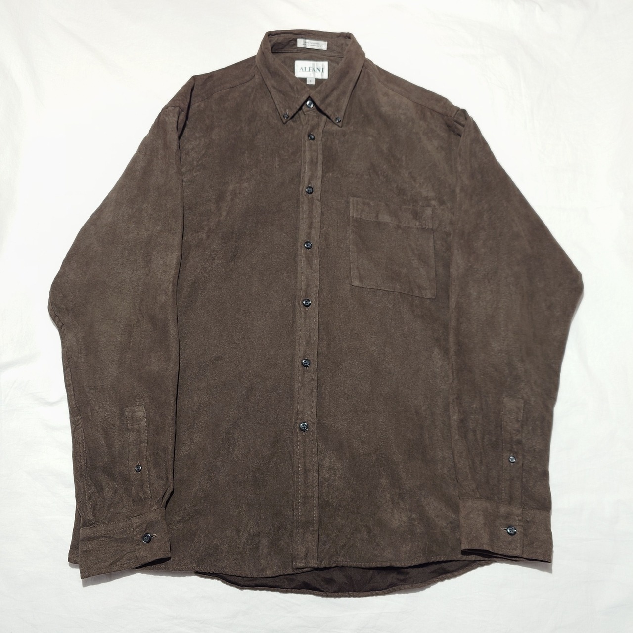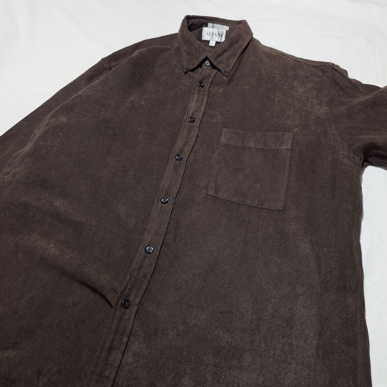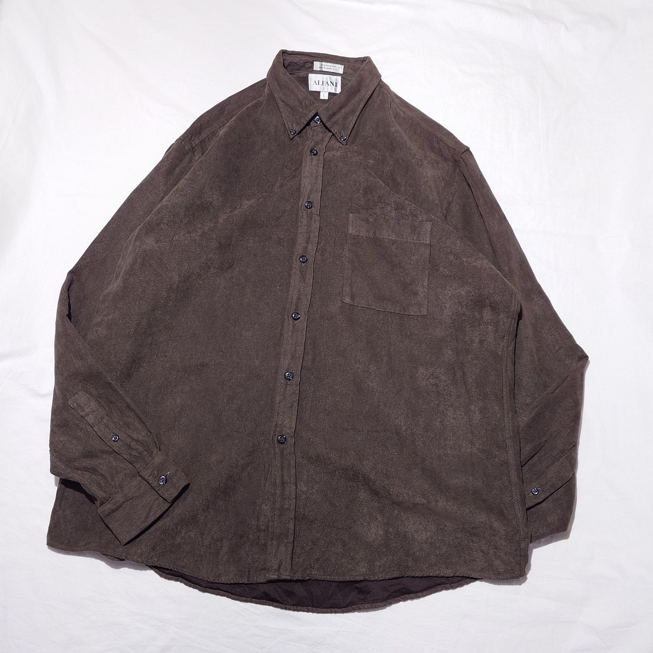 【90s】ALFANI フェイクスエードシャツ ブラウン フェード 古着 長袖