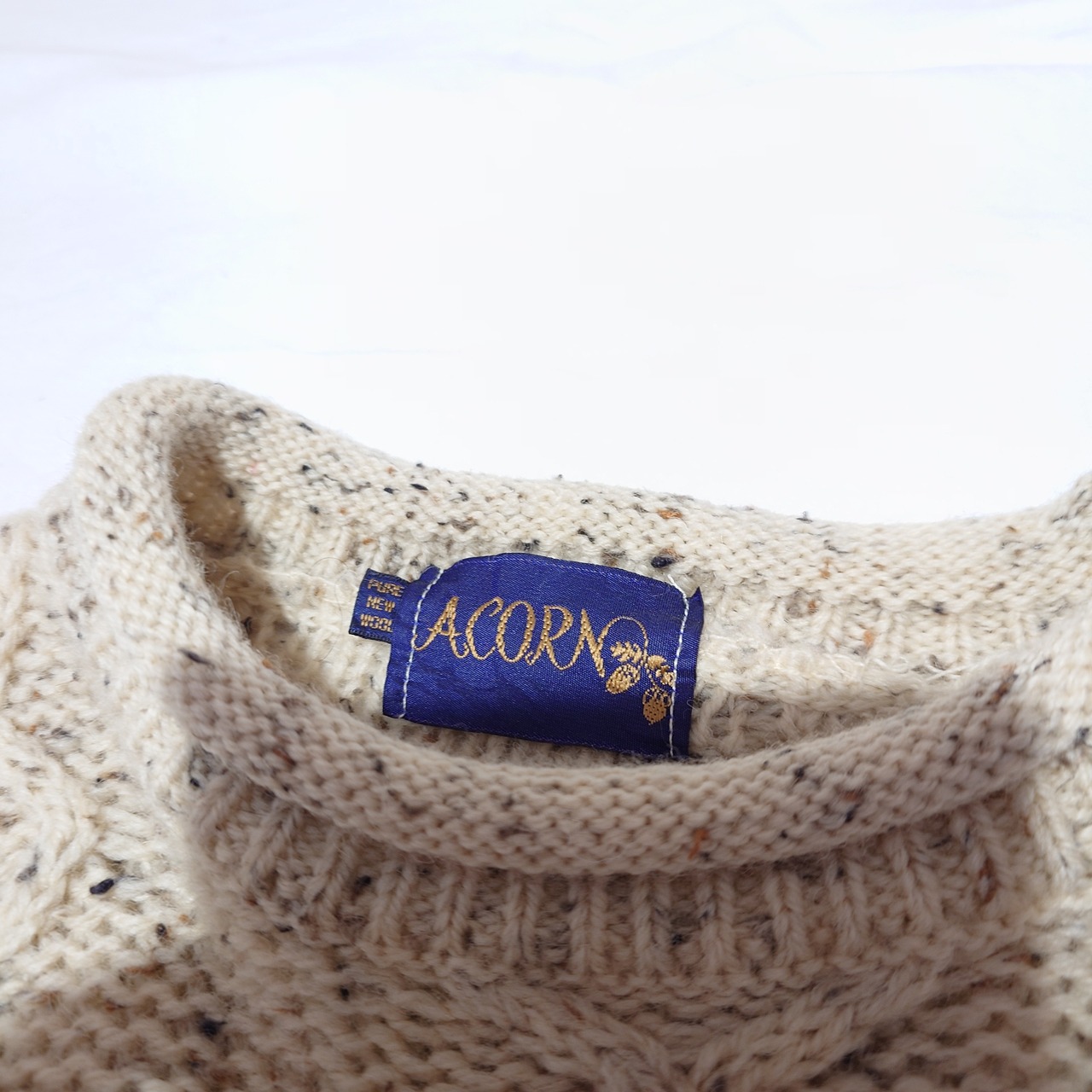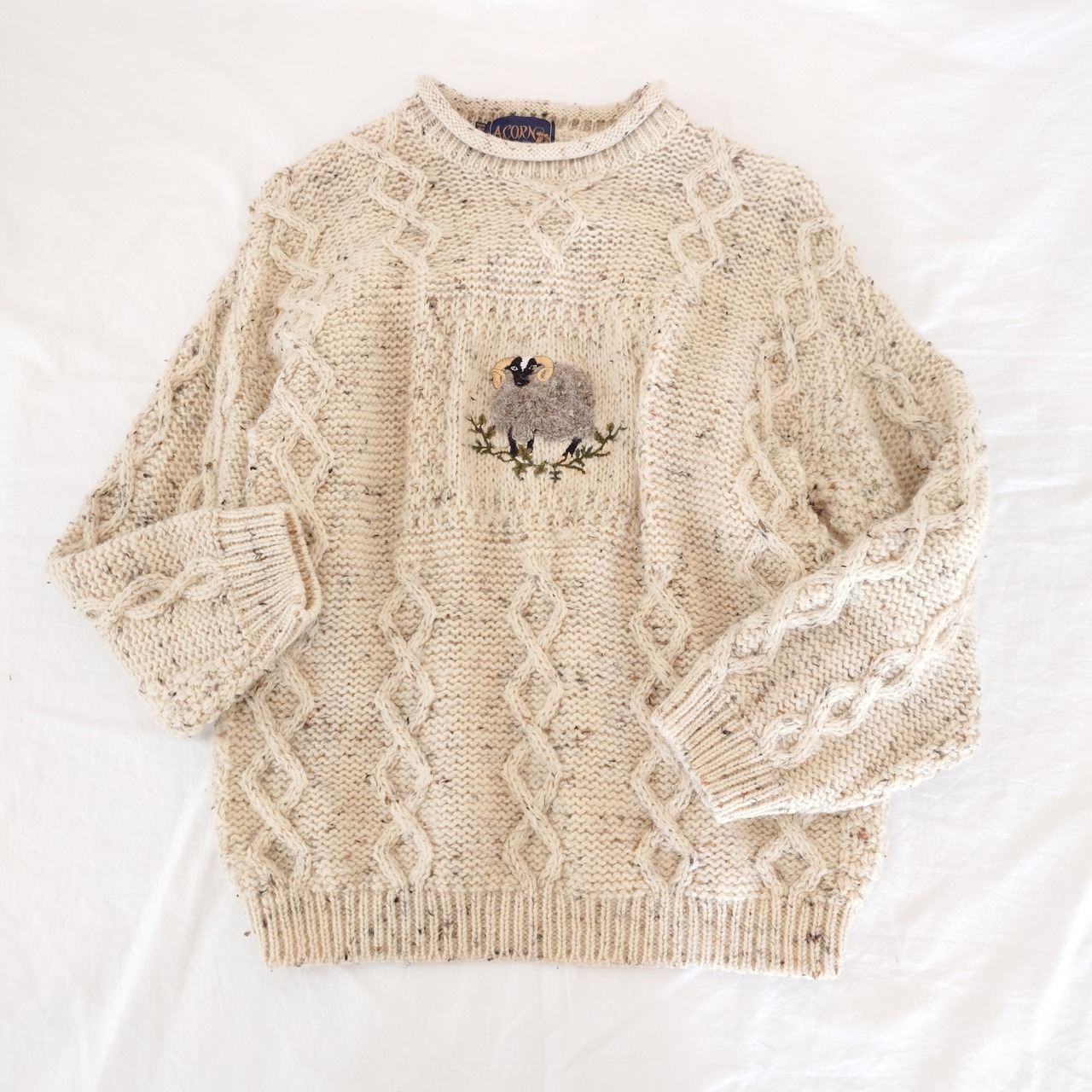 【90s】古着ニット 羊 アニマル柄 アランニット ウール ケーブル編み
