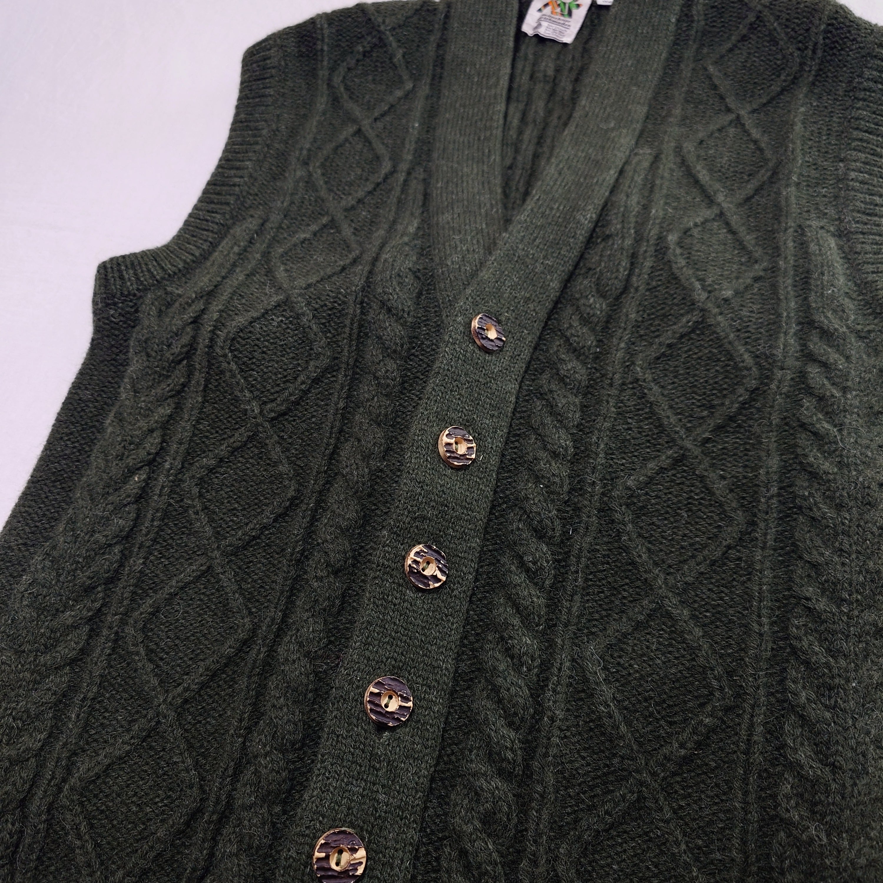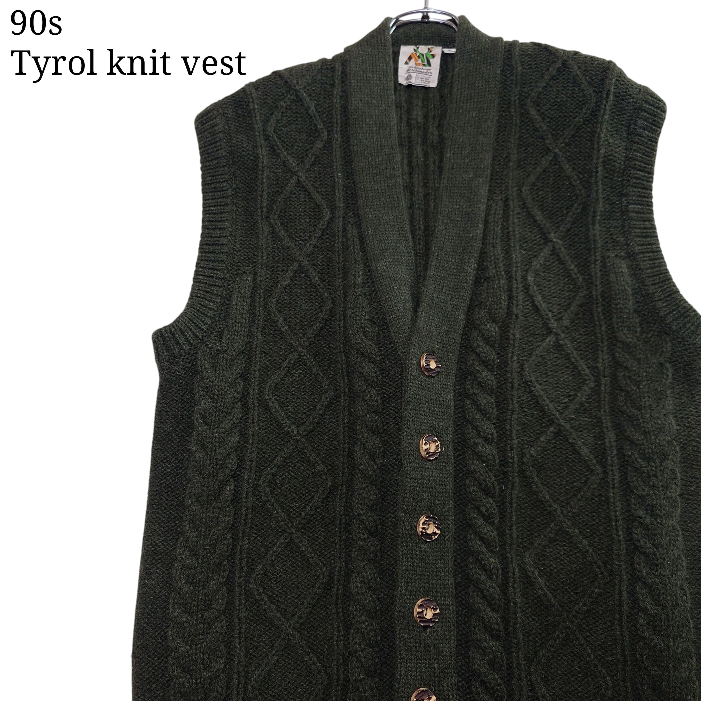 【90s】ヴィンテージ チロルニットベスト ユーロ グリーン 古着