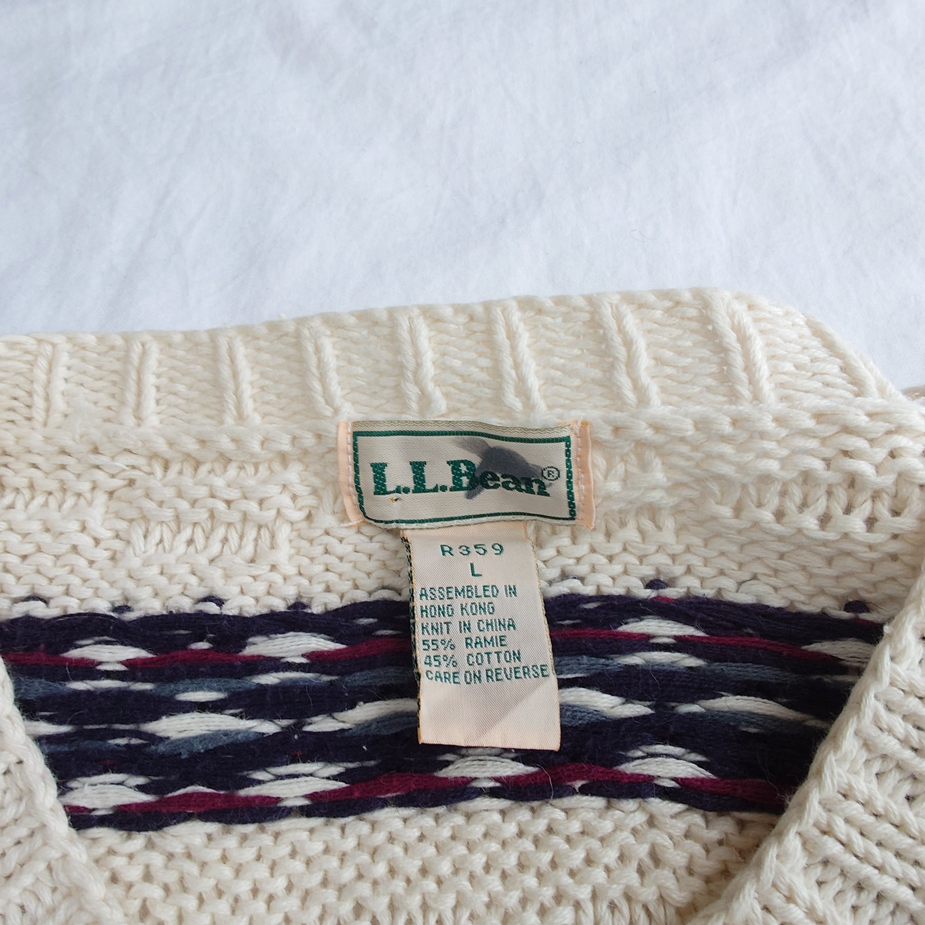 【80s】L.L.Bean エルエルビーン コットンニット 白 デザイン古着