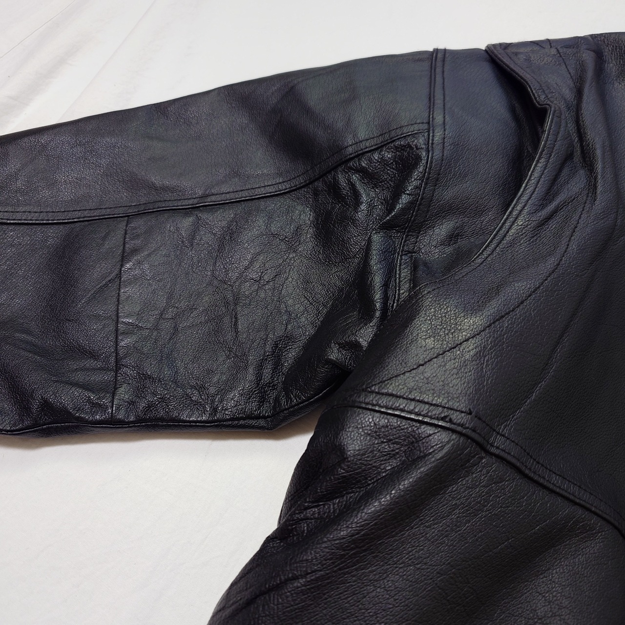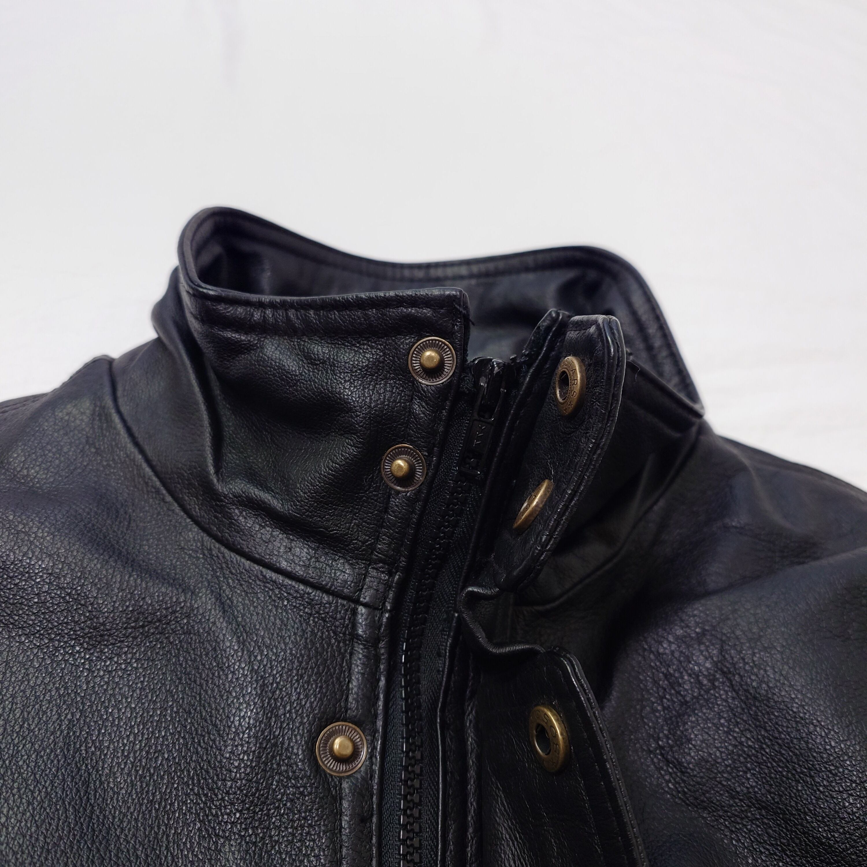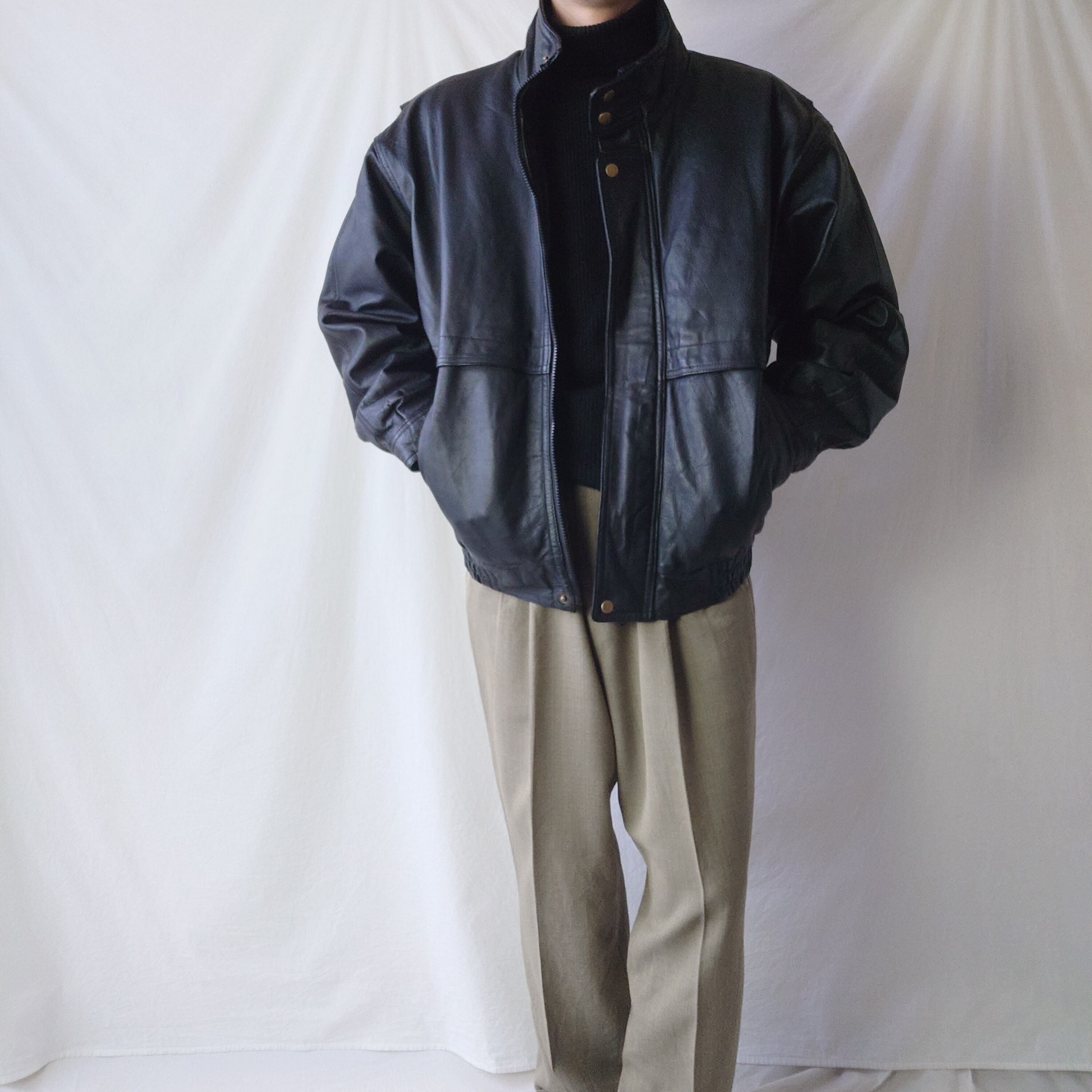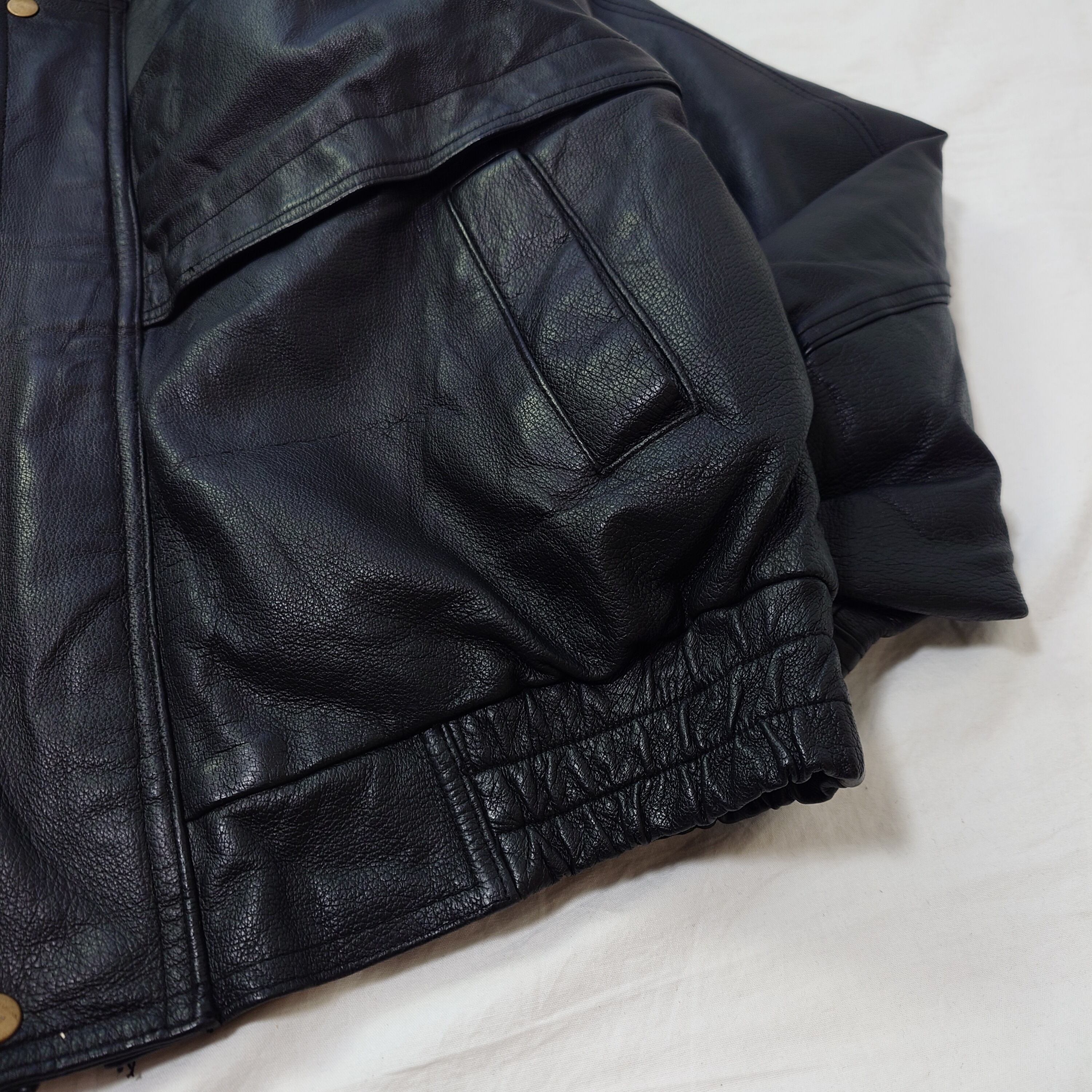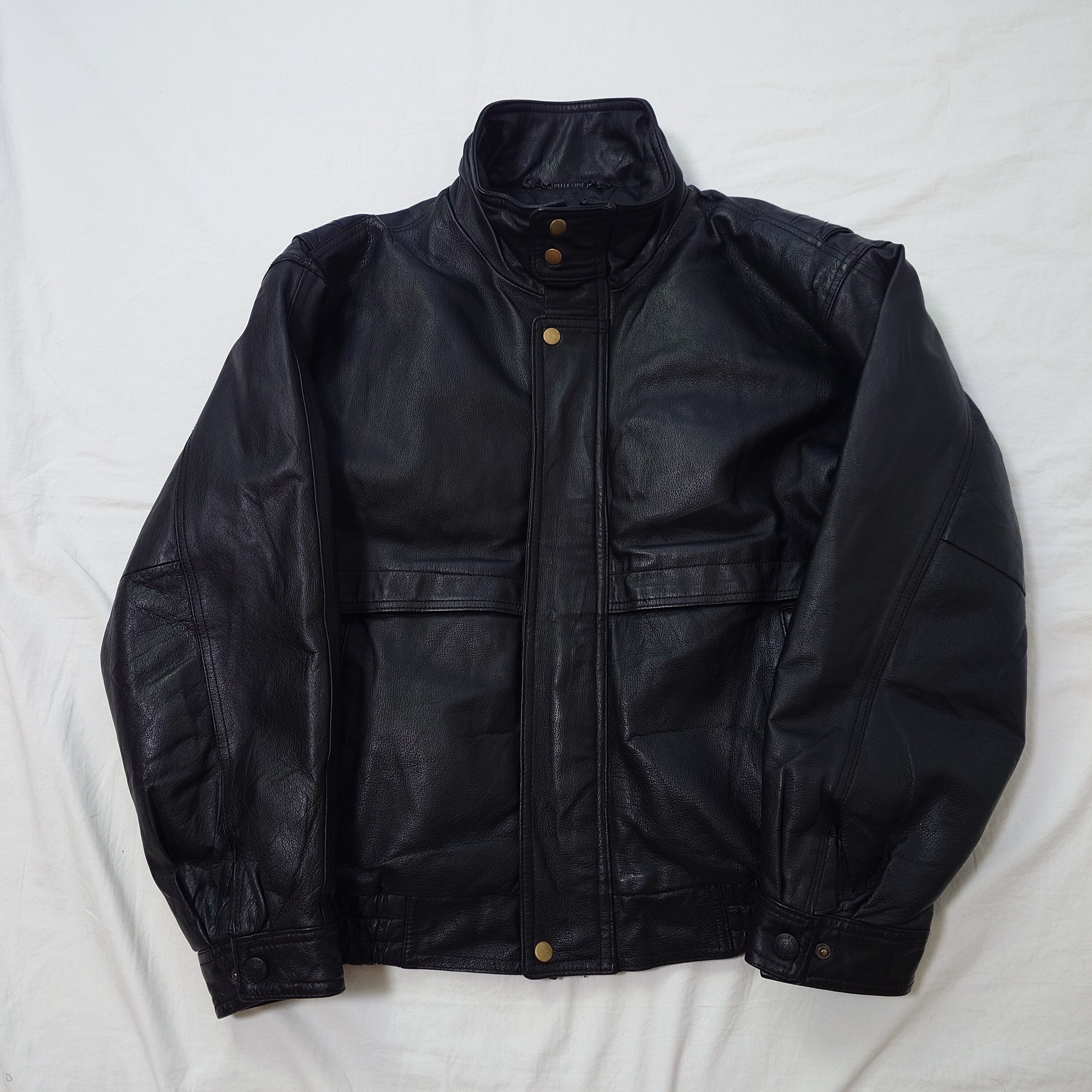 【90s】PELLE CUIR レザージャケット ブラック 黒 短丈 ショート丈 ブルゾン スタンドカラー 古着 ヴィンテージ leather jacket vintage 本革 カナダ製