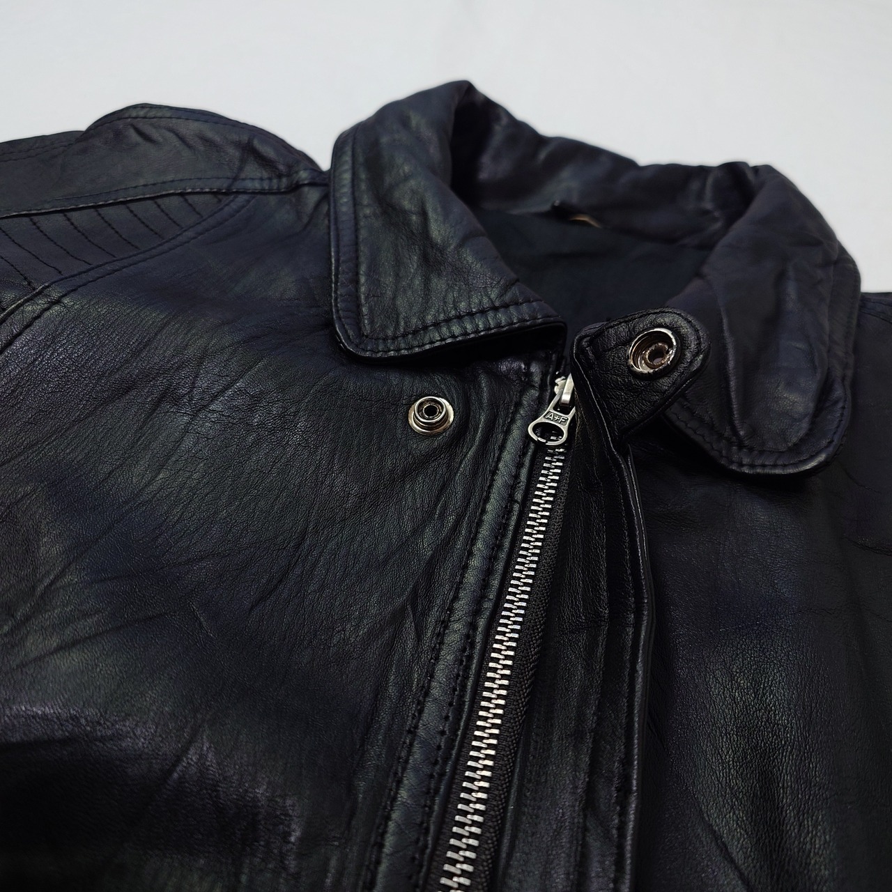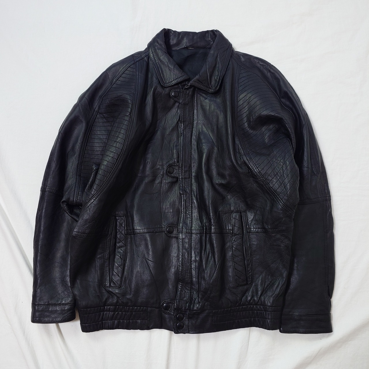【ユーロ古着】レザージャケット ブラック 黒 短丈 ショート丈 ブルゾン ユーロヴィンテージ leather jacket euro vintage 本革 ヨーロッパ古着
