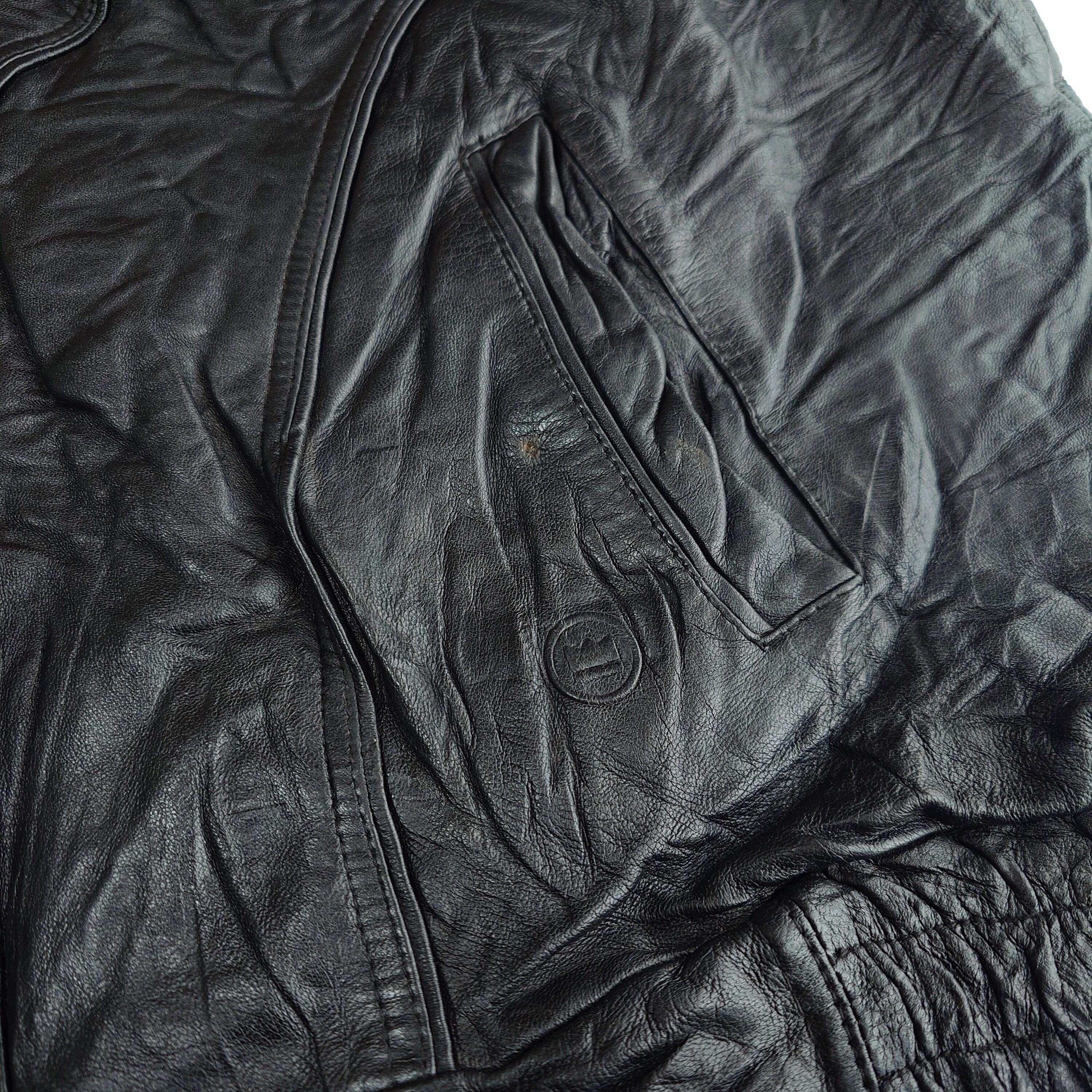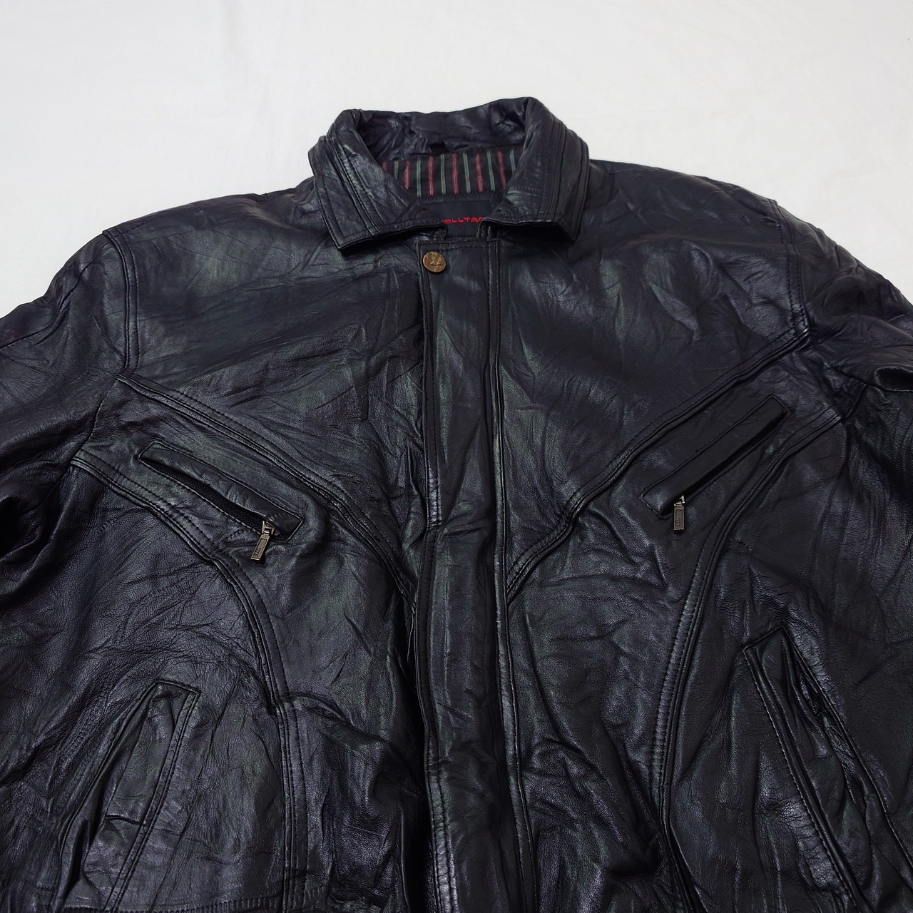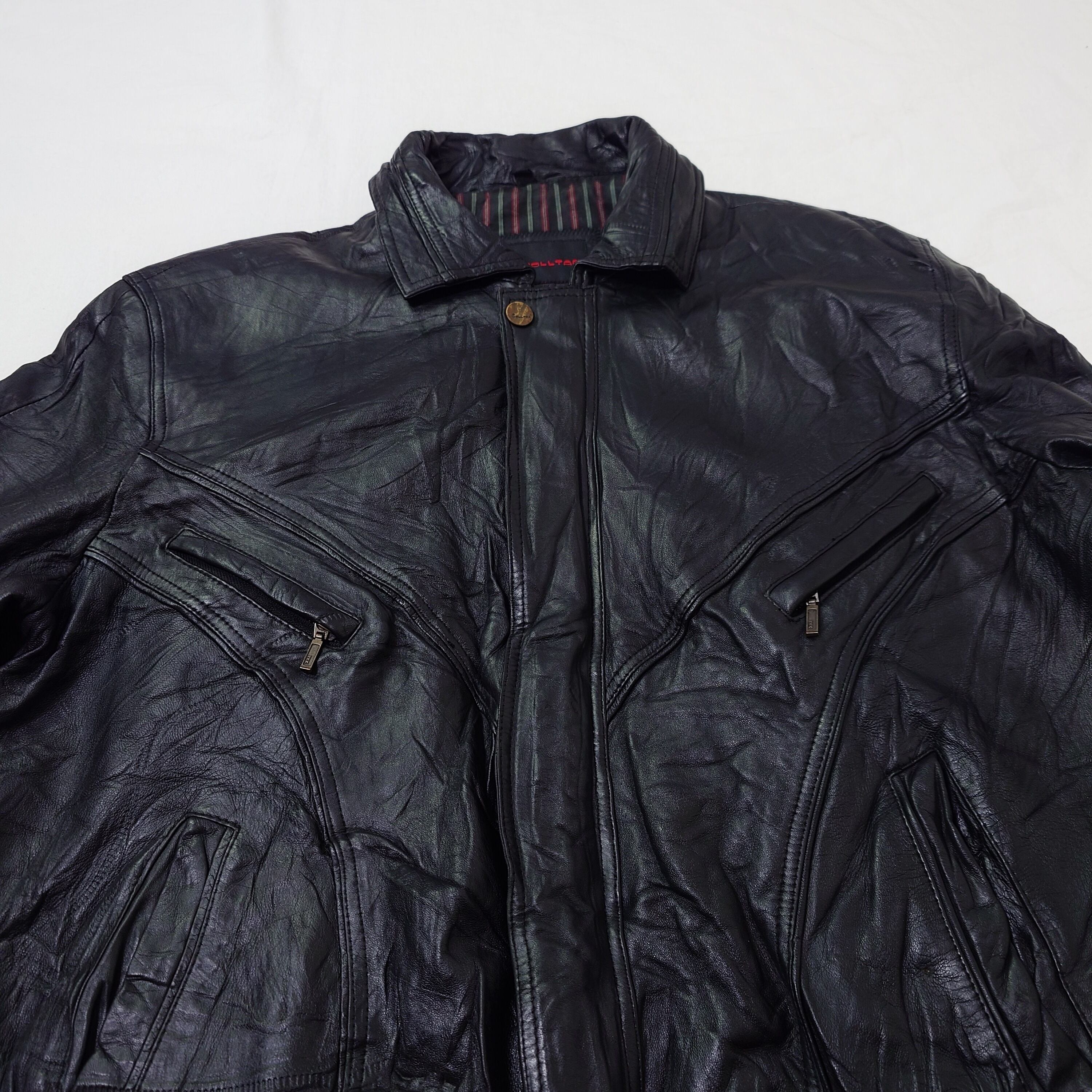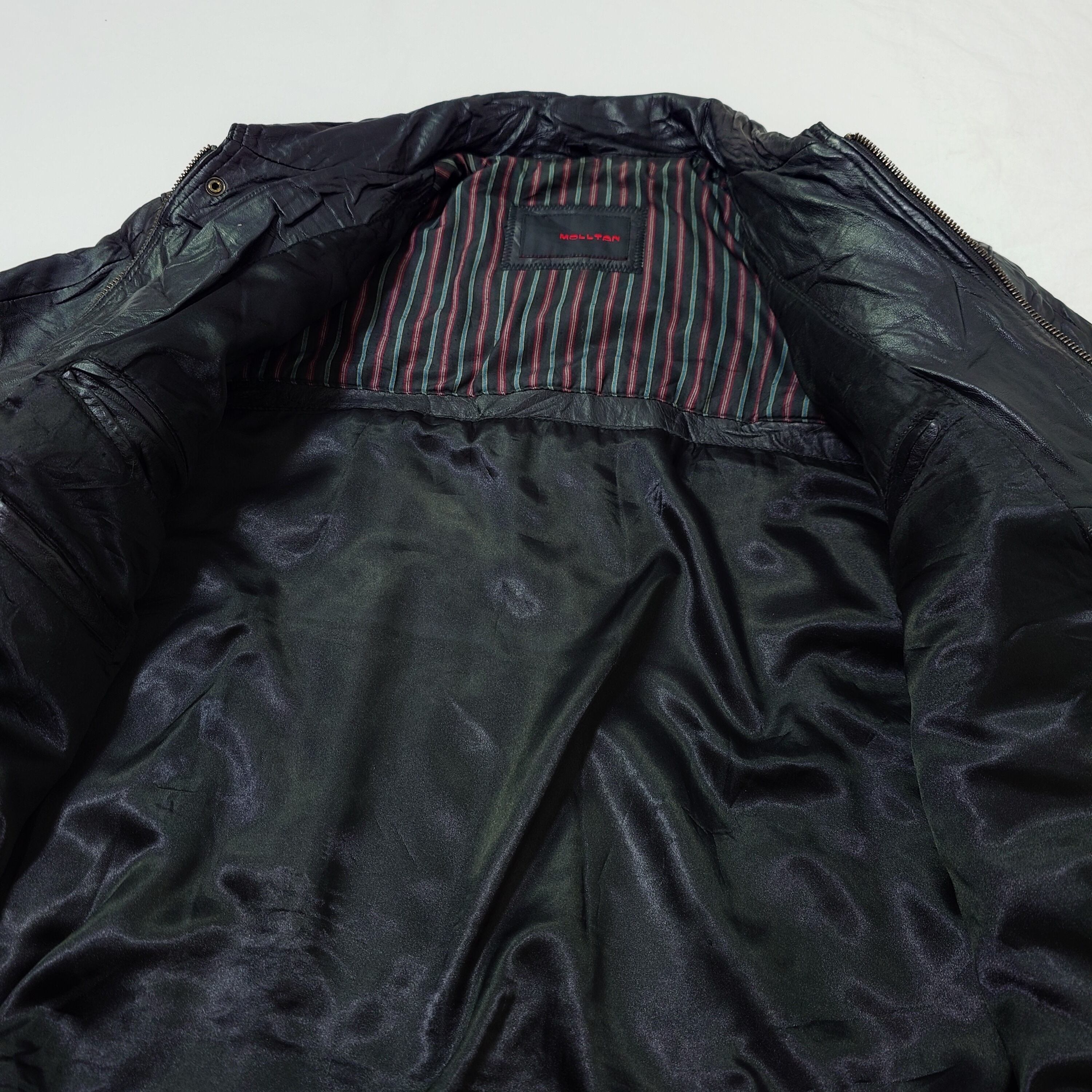 【ユーロ古着】レザージャケット ブラック 黒 短丈 ショート丈 ブルゾン ユーロヴィンテージ leather jacket euro vintage 本革 ヨーロッパ古着 逆ハの字ポケット MOLLTAN