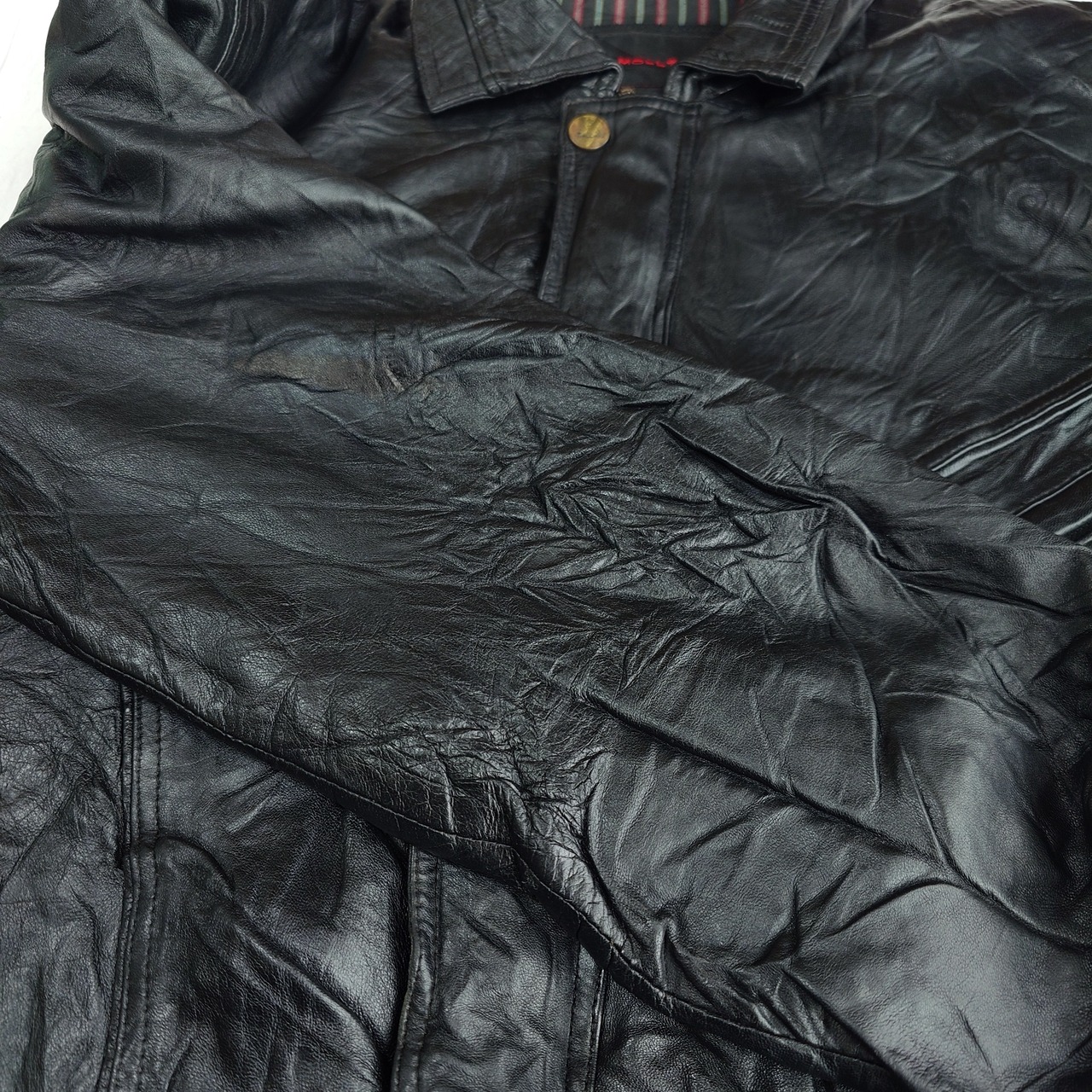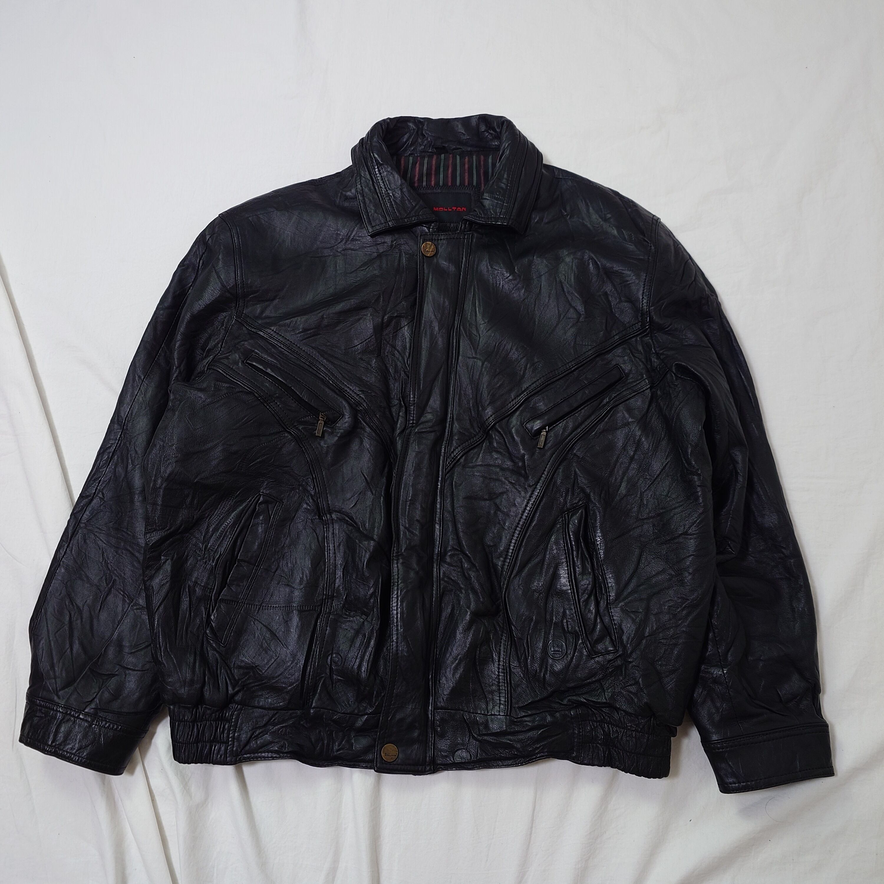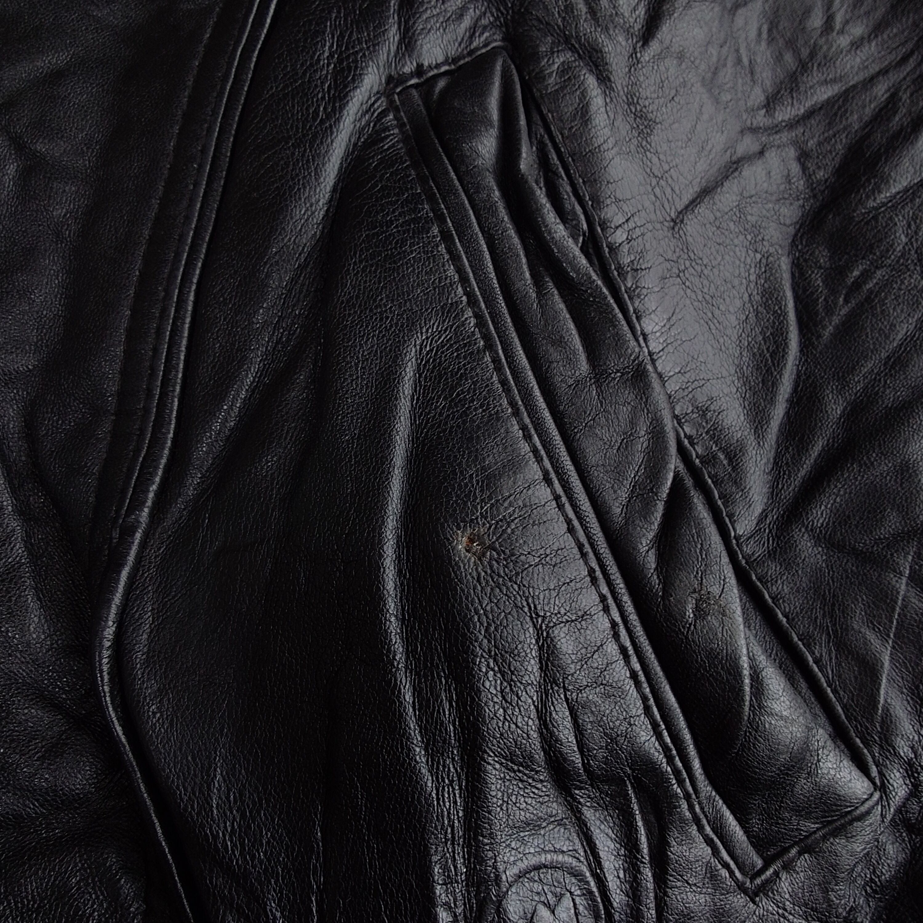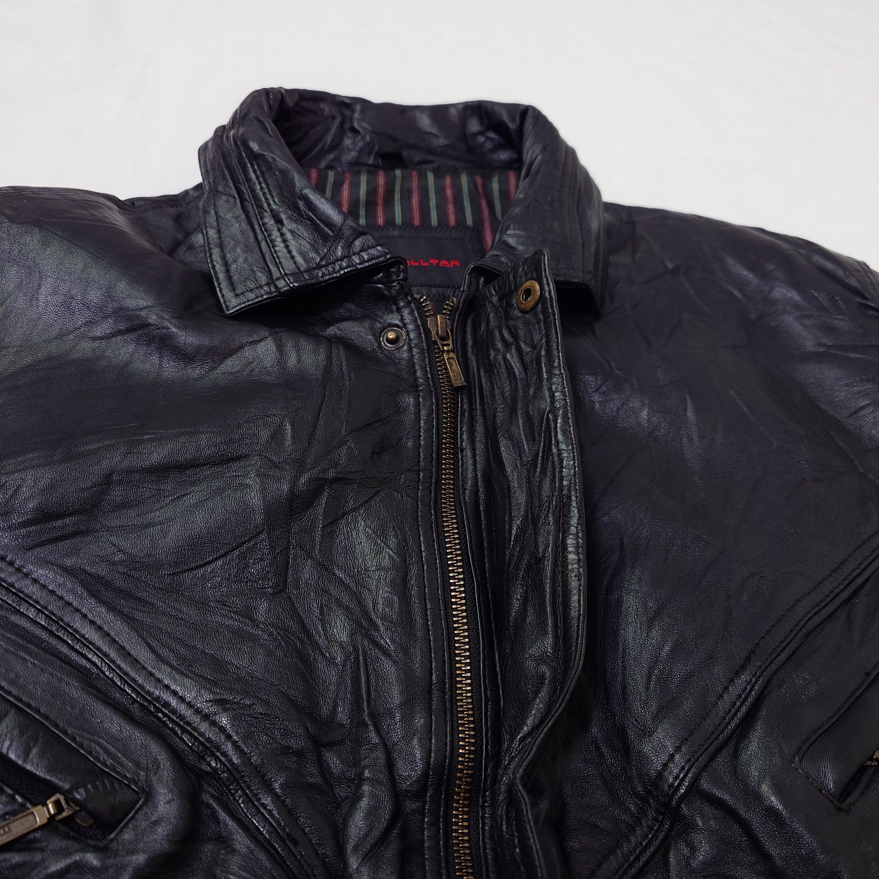 【ユーロ古着】レザージャケット ブラック 黒 短丈 ショート丈 ブルゾン ユーロヴィンテージ leather jacket euro vintage 本革 ヨーロッパ古着 逆ハの字ポケット MOLLTAN