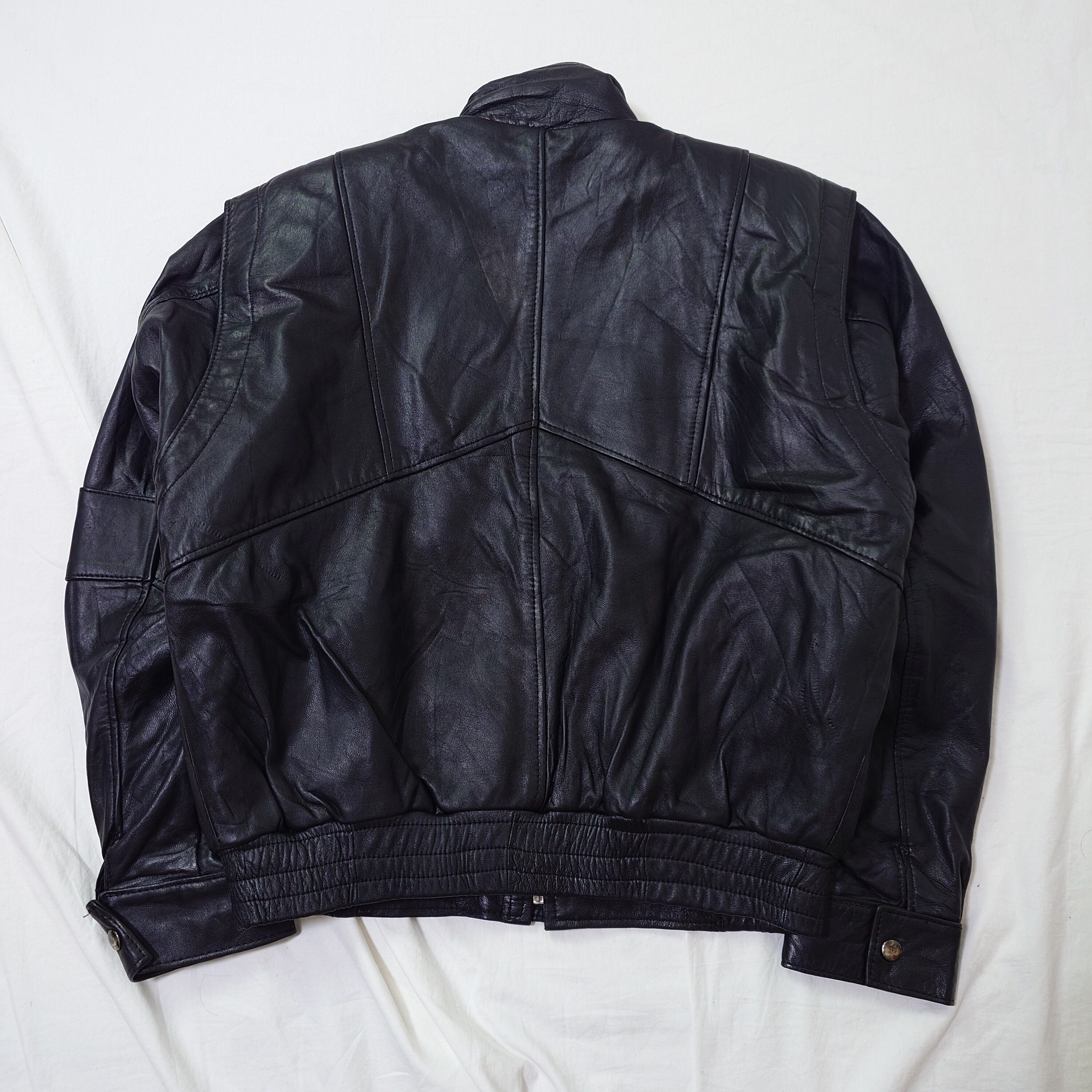 【メキシコ製】レザージャケット ブラック 黒 短丈 ショート丈 ブルゾン ヴィンテージ leather jacket vintage 本革 古着 スタンドカラー