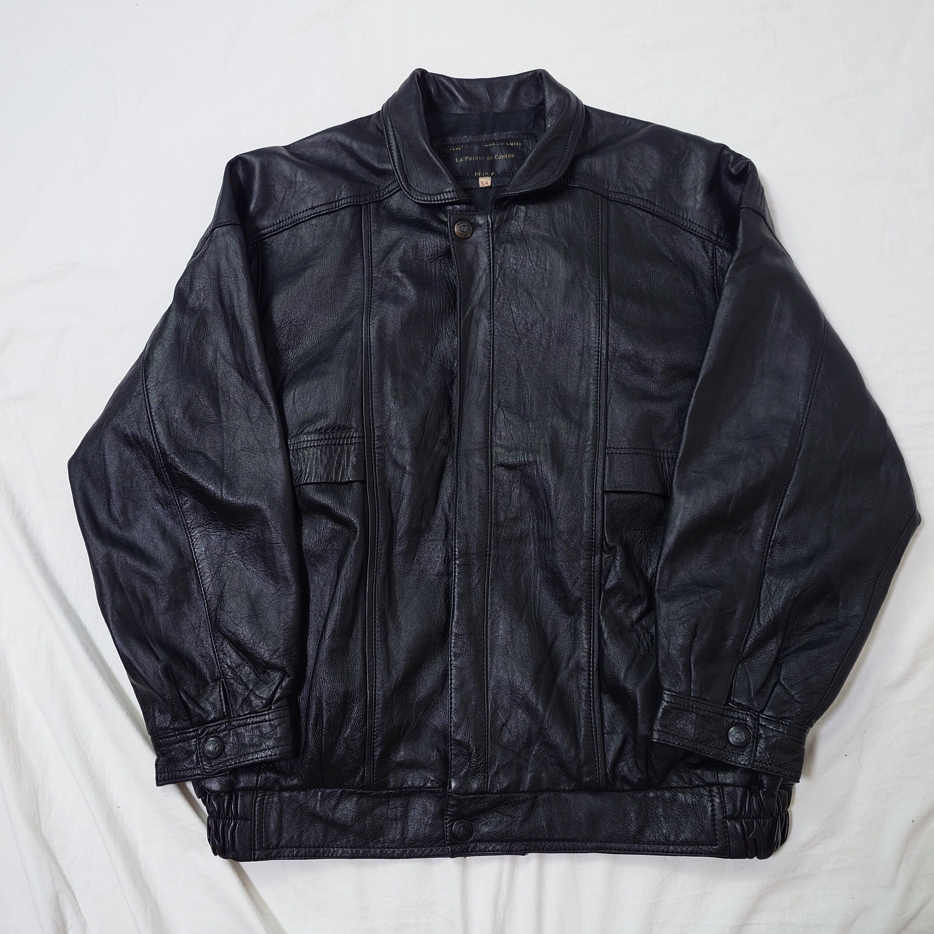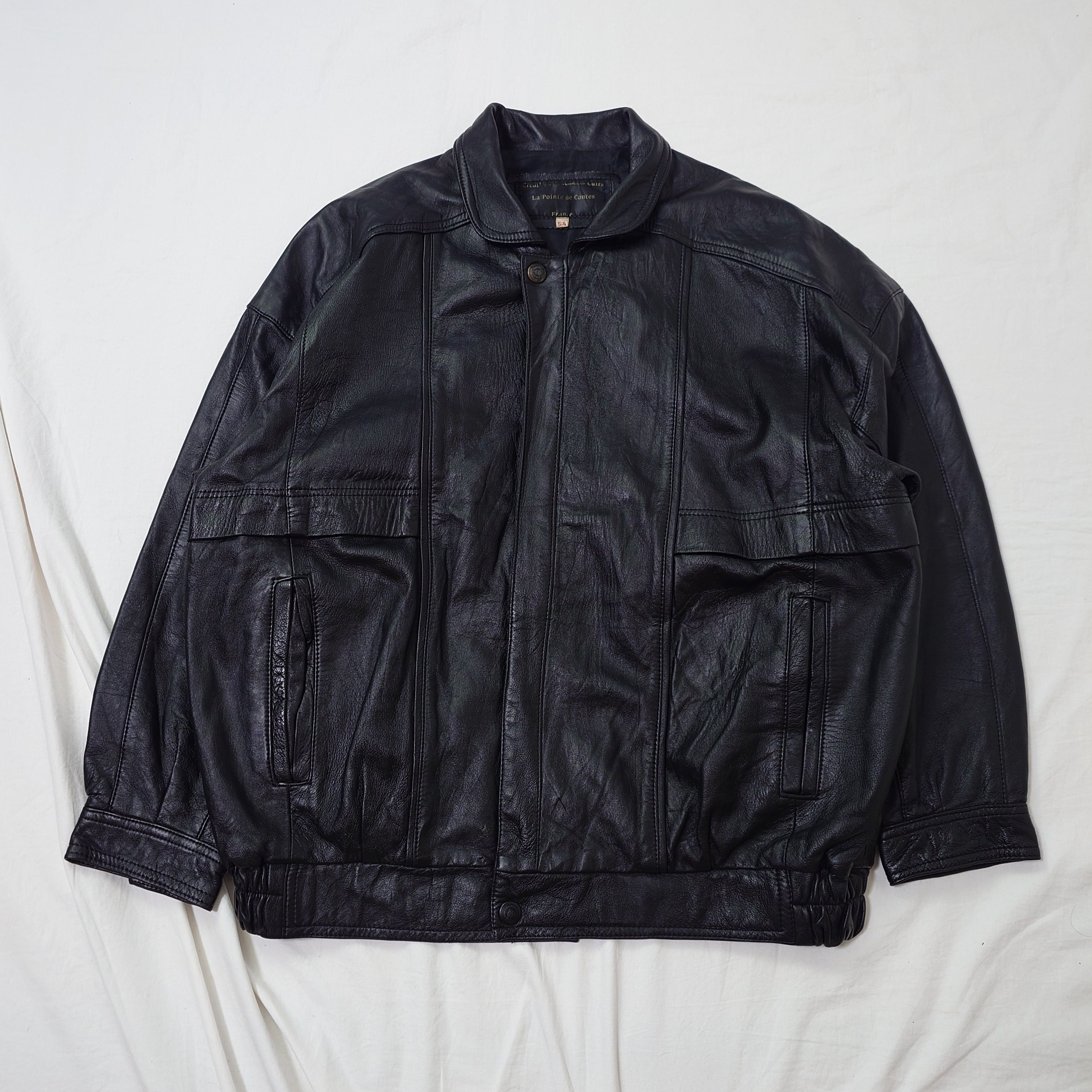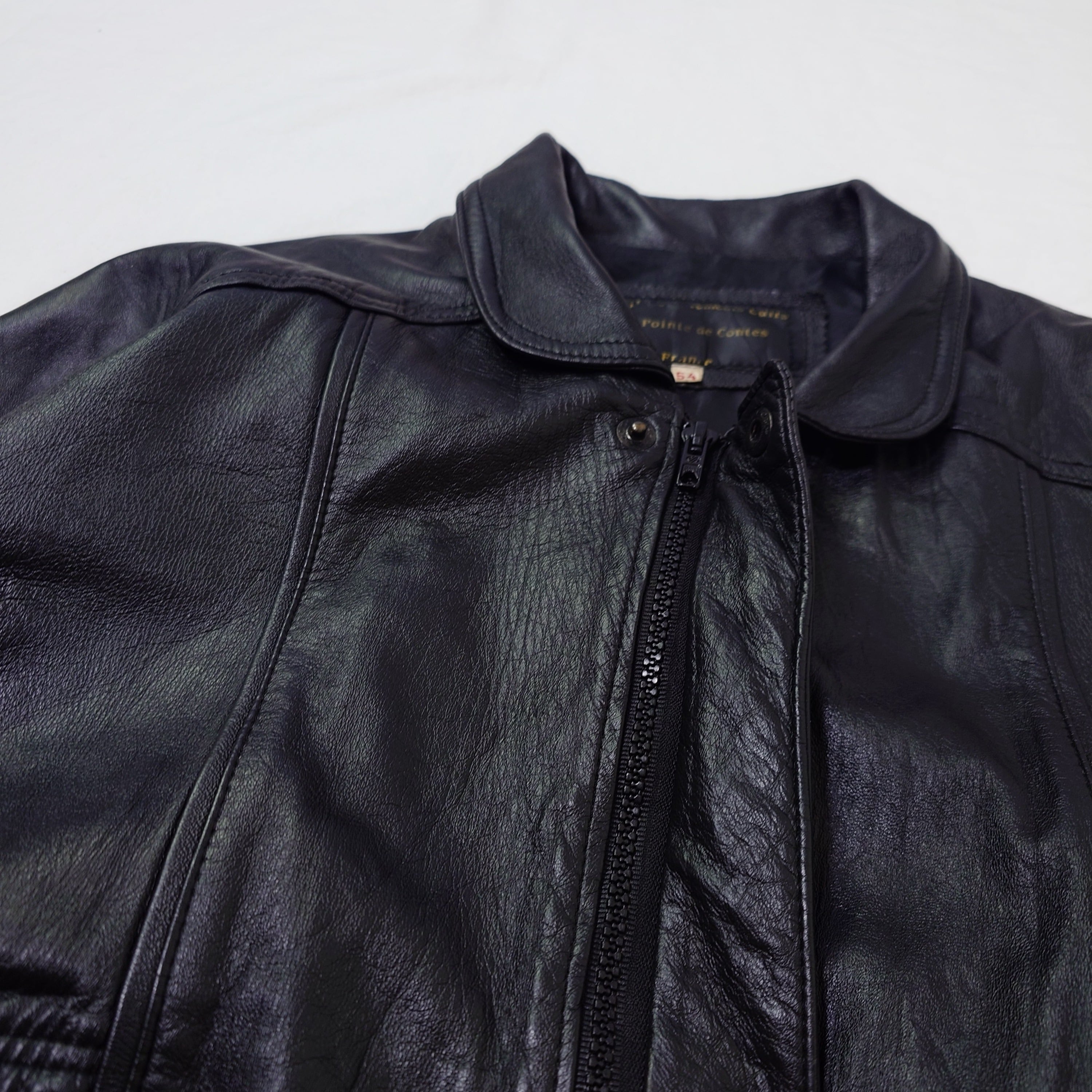 【フランス製】レザージャケット ブラック 黒 短丈 ショート丈 ブルゾン ユーロヴィンテージ leather jacket euro vintage 本革 ヨーロッパ古着 フレンチヴィンテージ French
