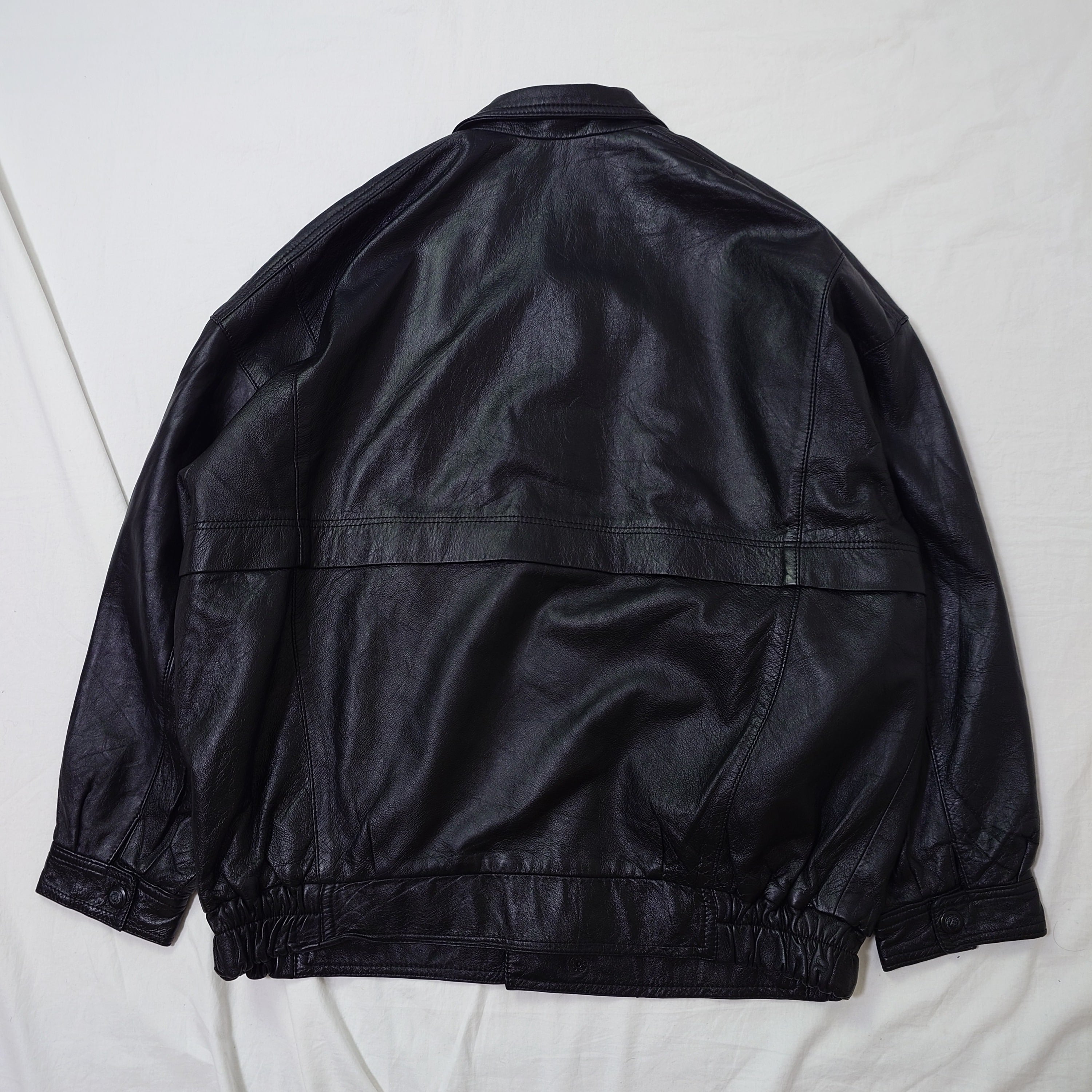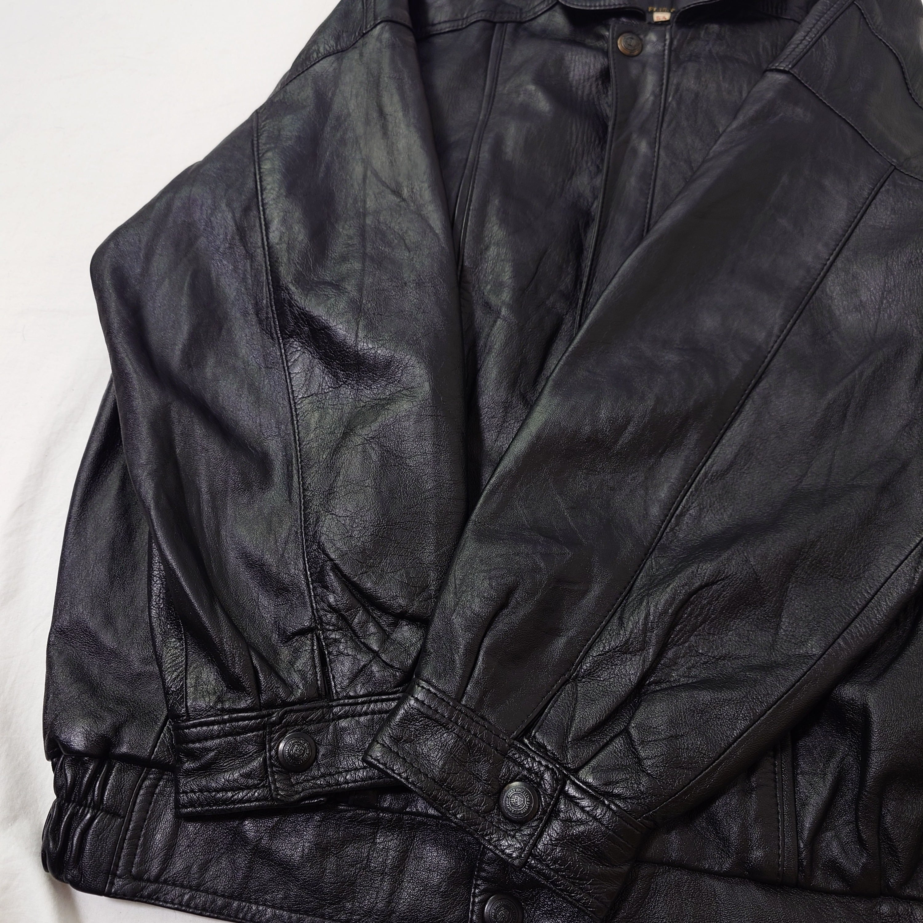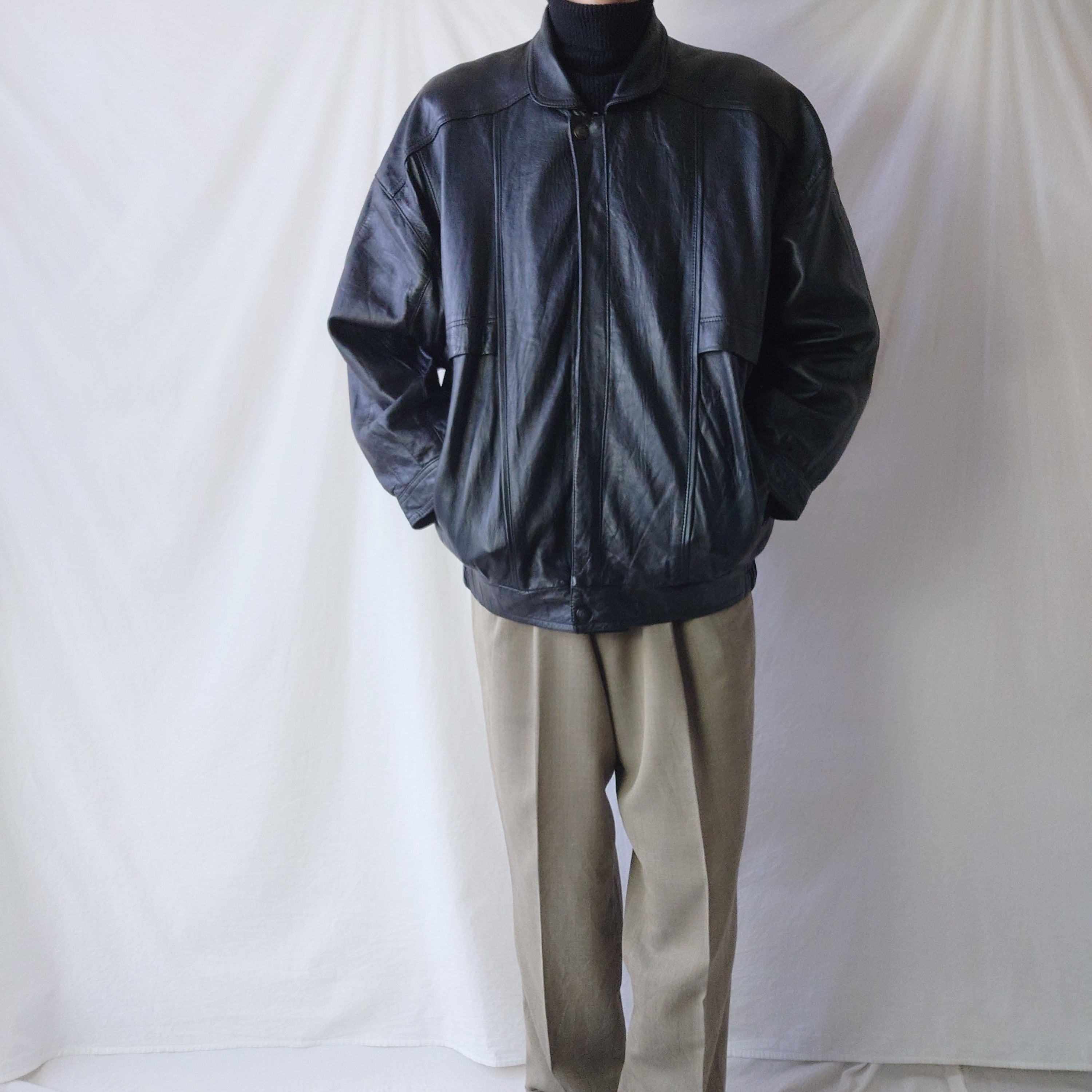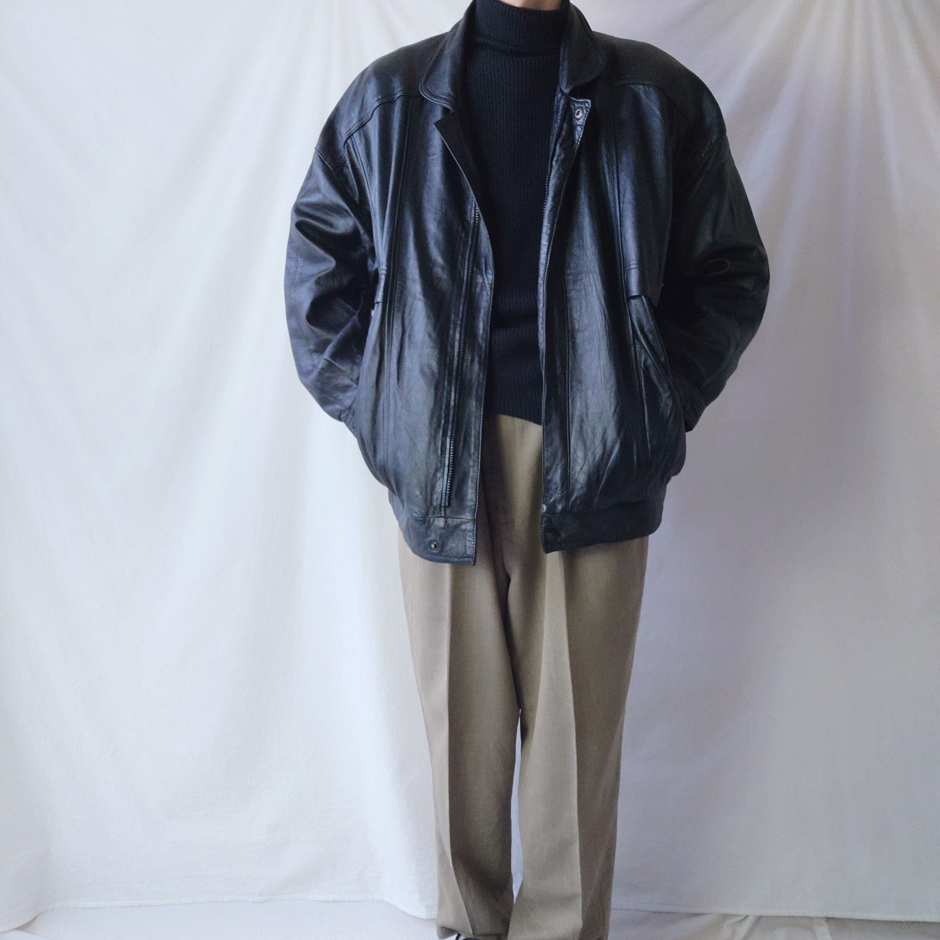 【フランス製】レザージャケット ブラック 黒 短丈 ショート丈 ブルゾン ユーロヴィンテージ leather jacket euro vintage 本革 ヨーロッパ古着 フレンチヴィンテージ French