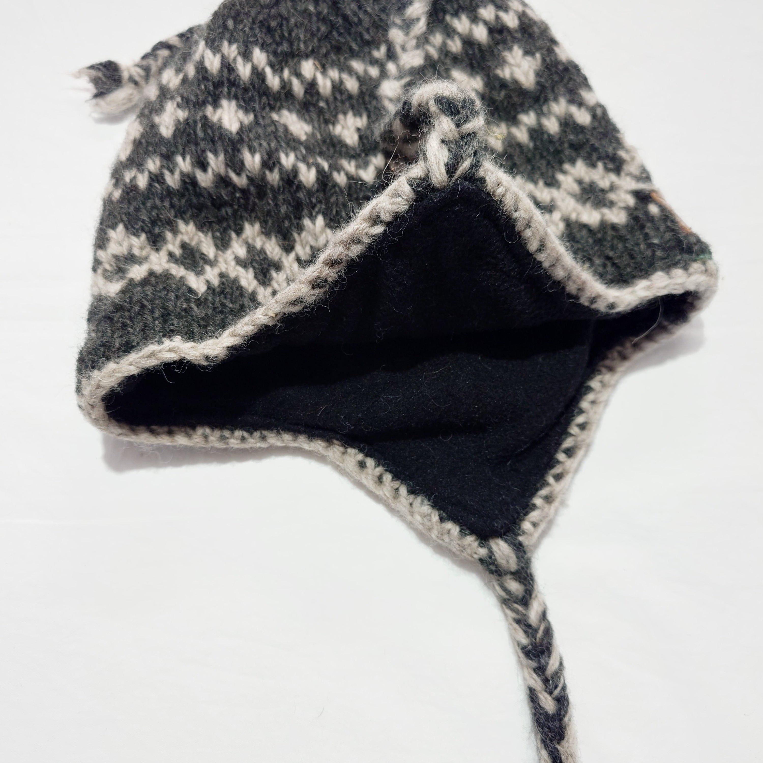 【00s】ネパール製 イヤーマフ 耳当て ニット帽 キャップ ネイティブ ノルディック グレー y2k ヒッピー ストリート 古着 earmaff 2000年代