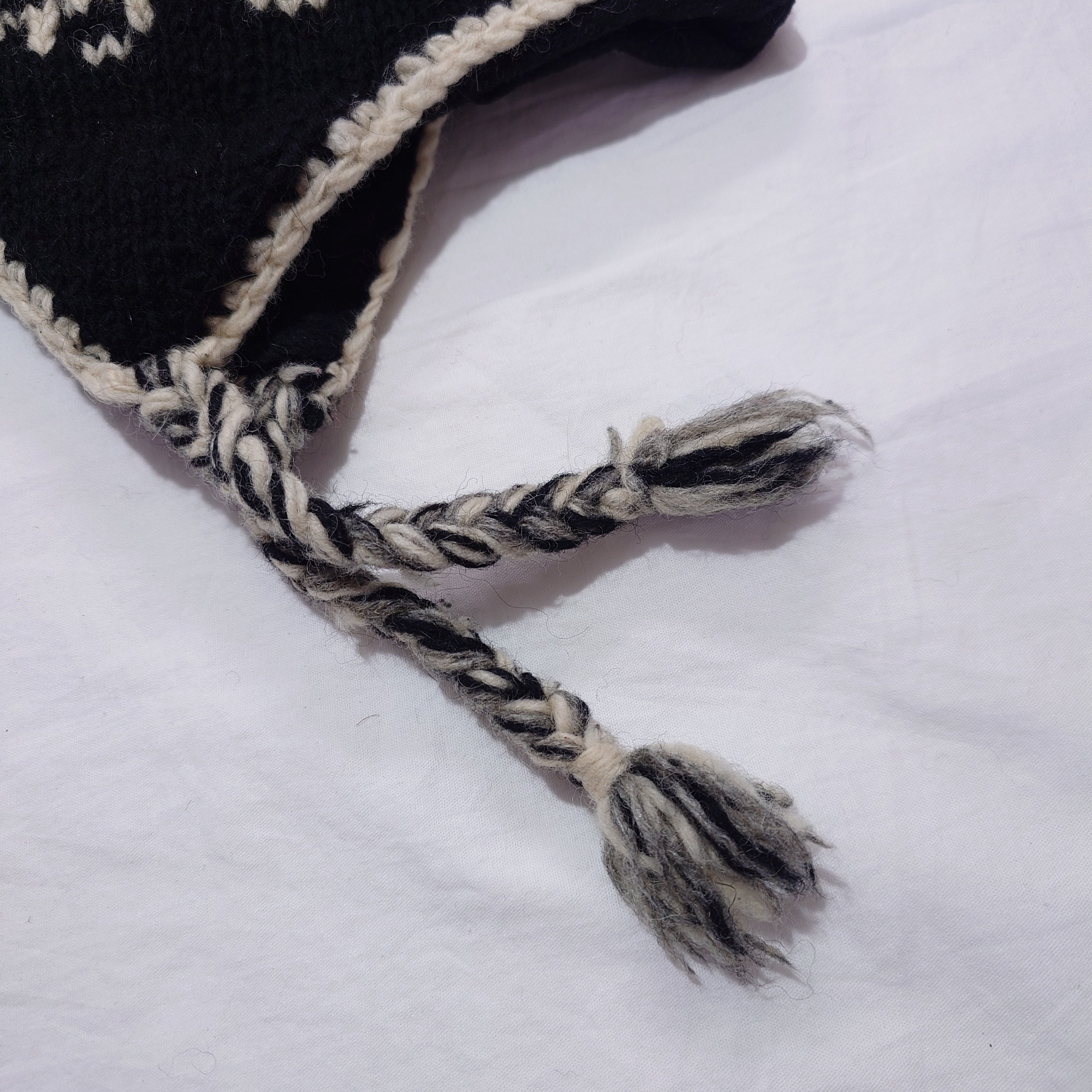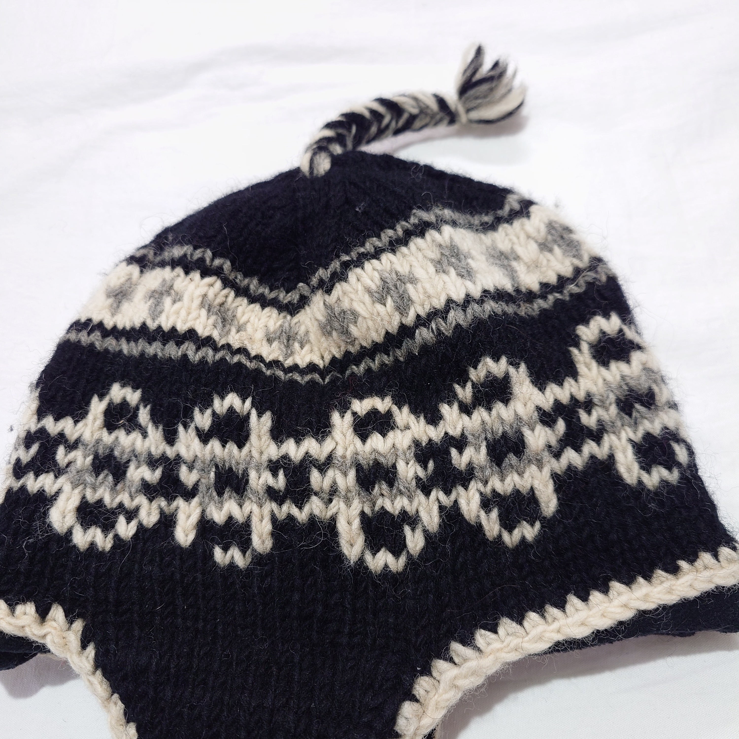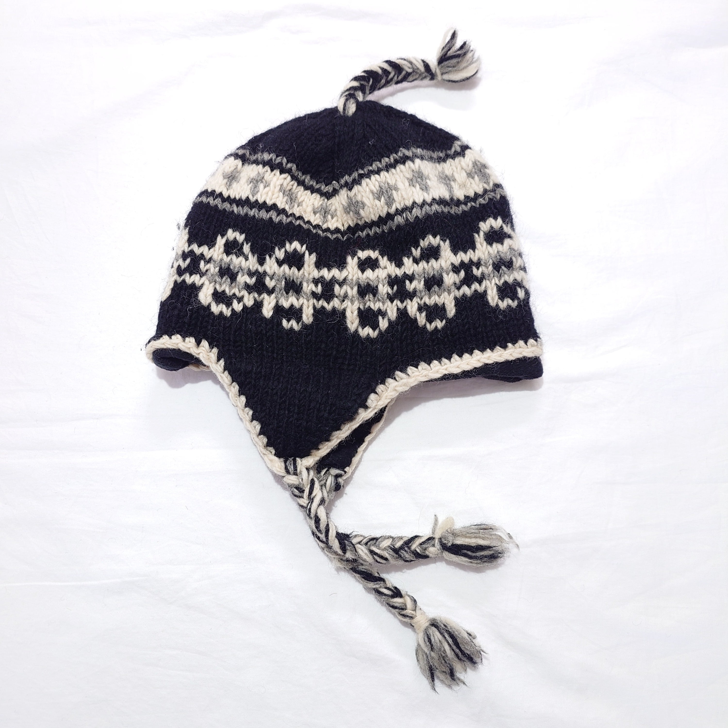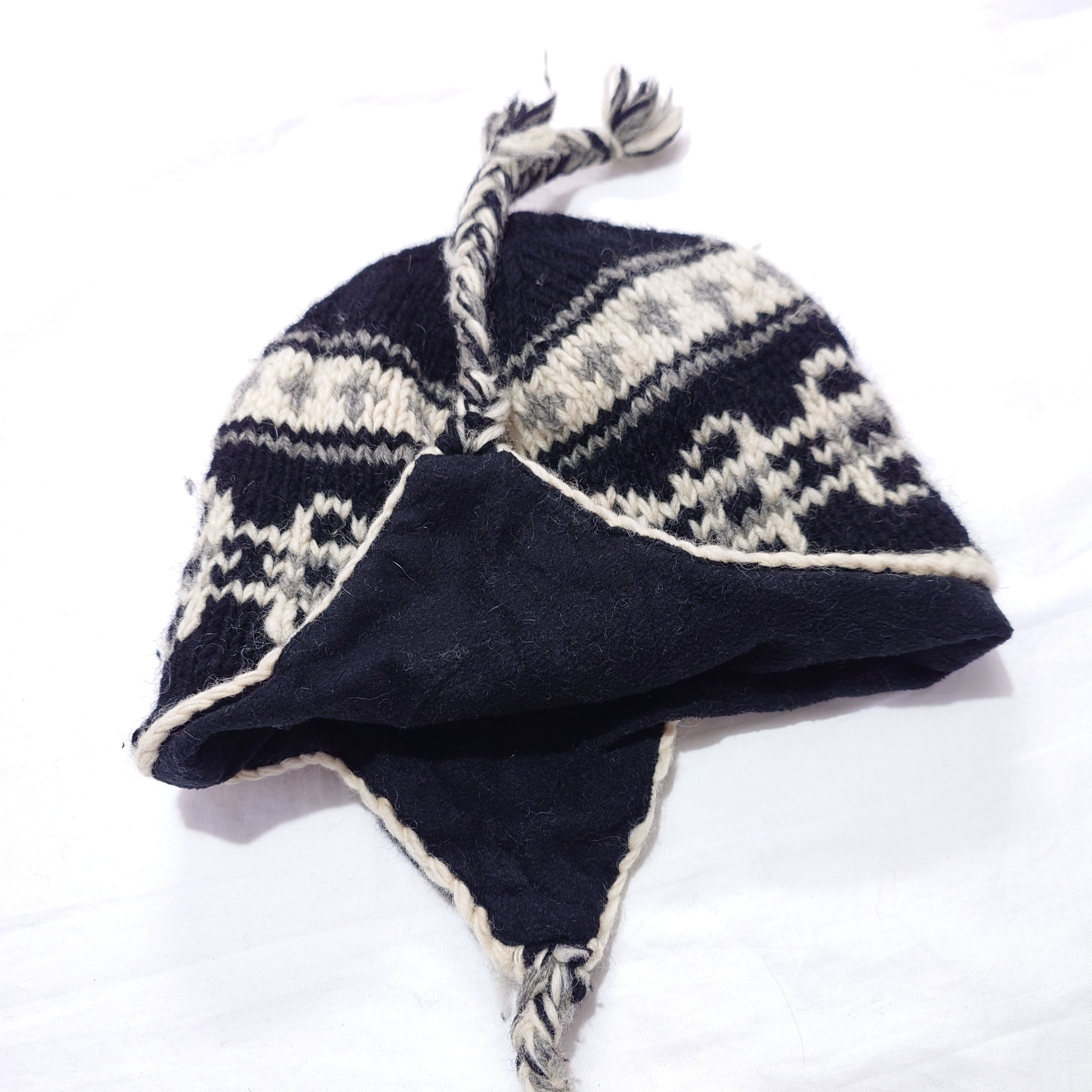 【00s】ネパール製 イヤーマフ 耳当て ニット帽 キャップ ネイティブ ノルディック ブラック y2k ヒッピー ストリート 古着 earmaff 2000年代
