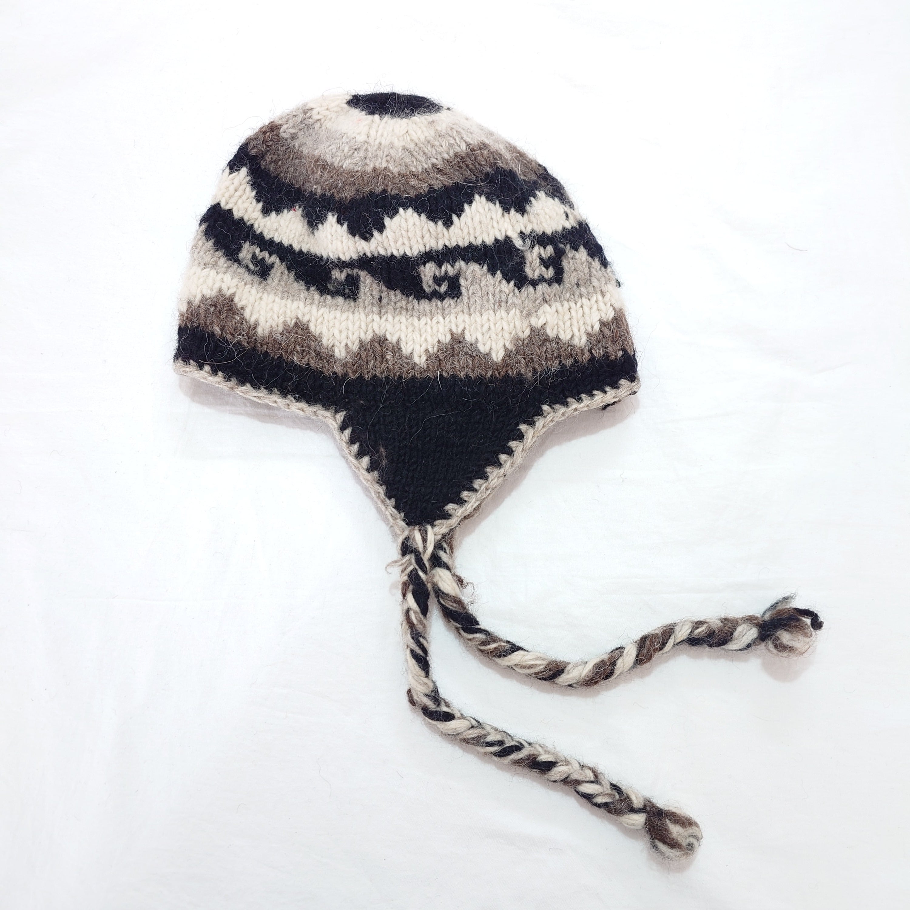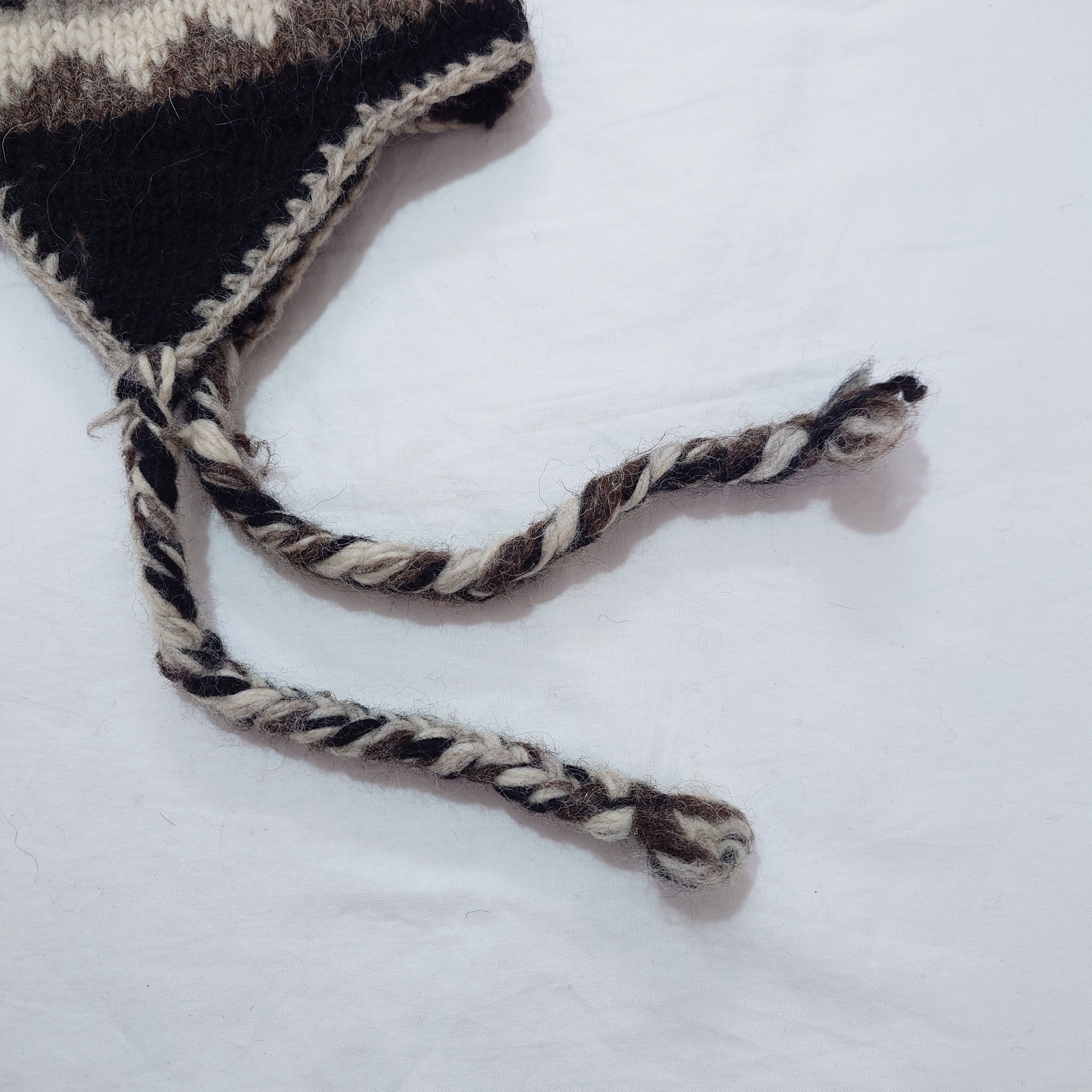 【手編み】イヤーマフ 耳当て ニット帽 キャップ ネイティブ ノルディック ブラウン y2k ヒッピー ストリート 古着 earmaff 2000年代ファッション