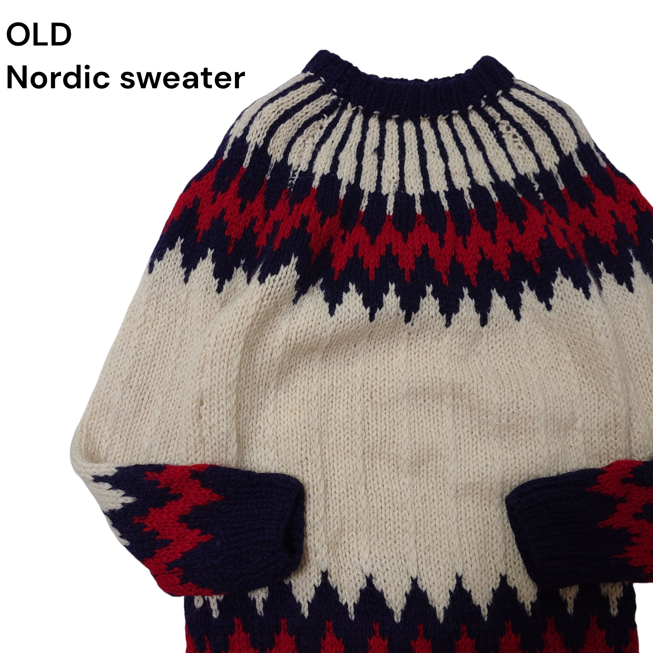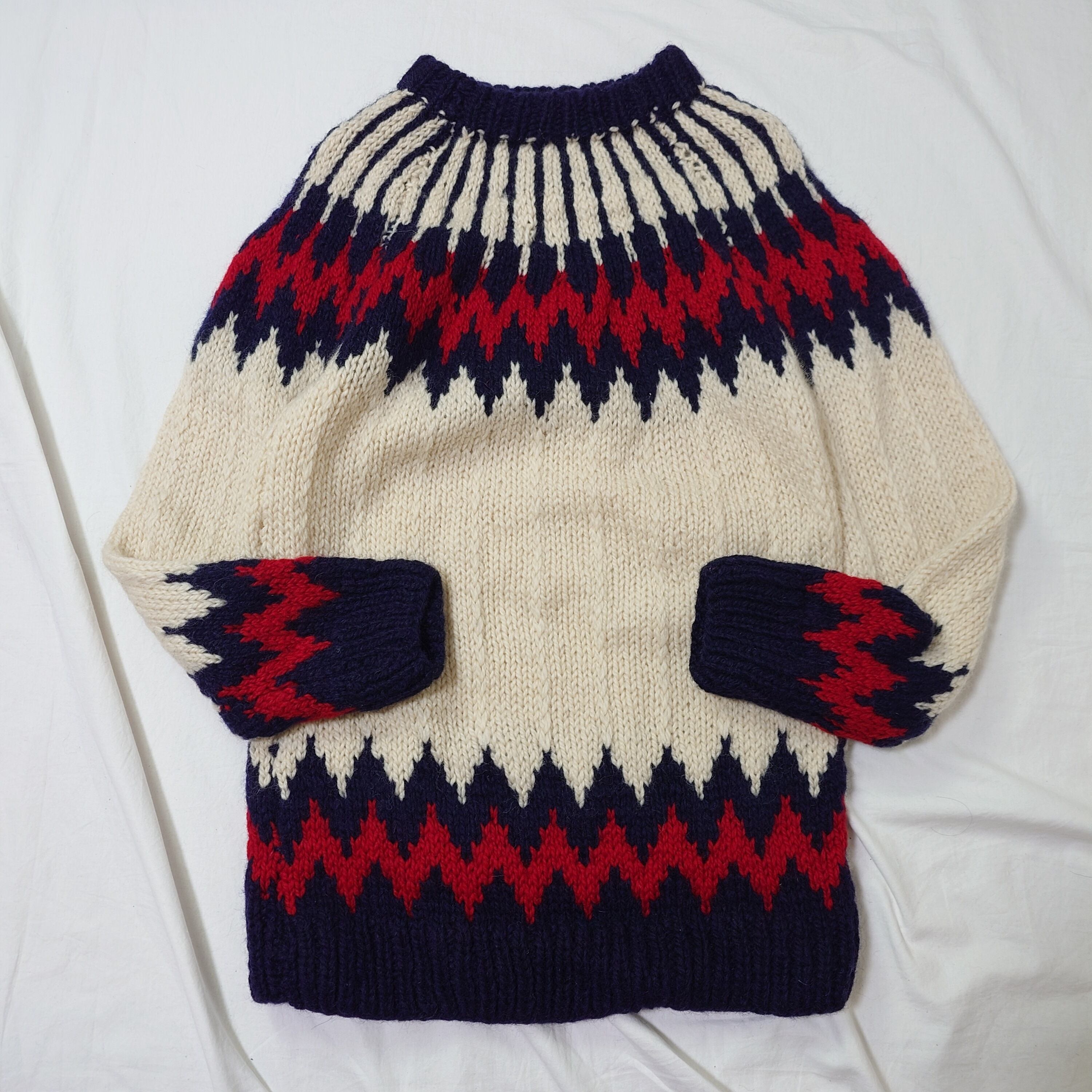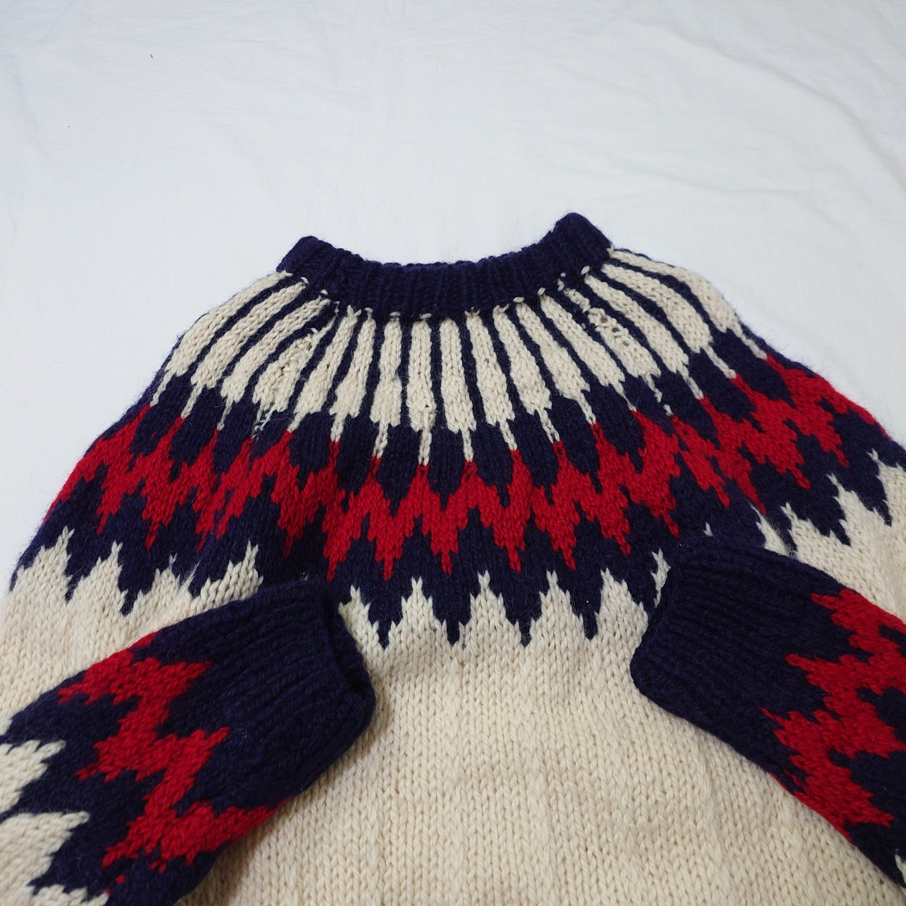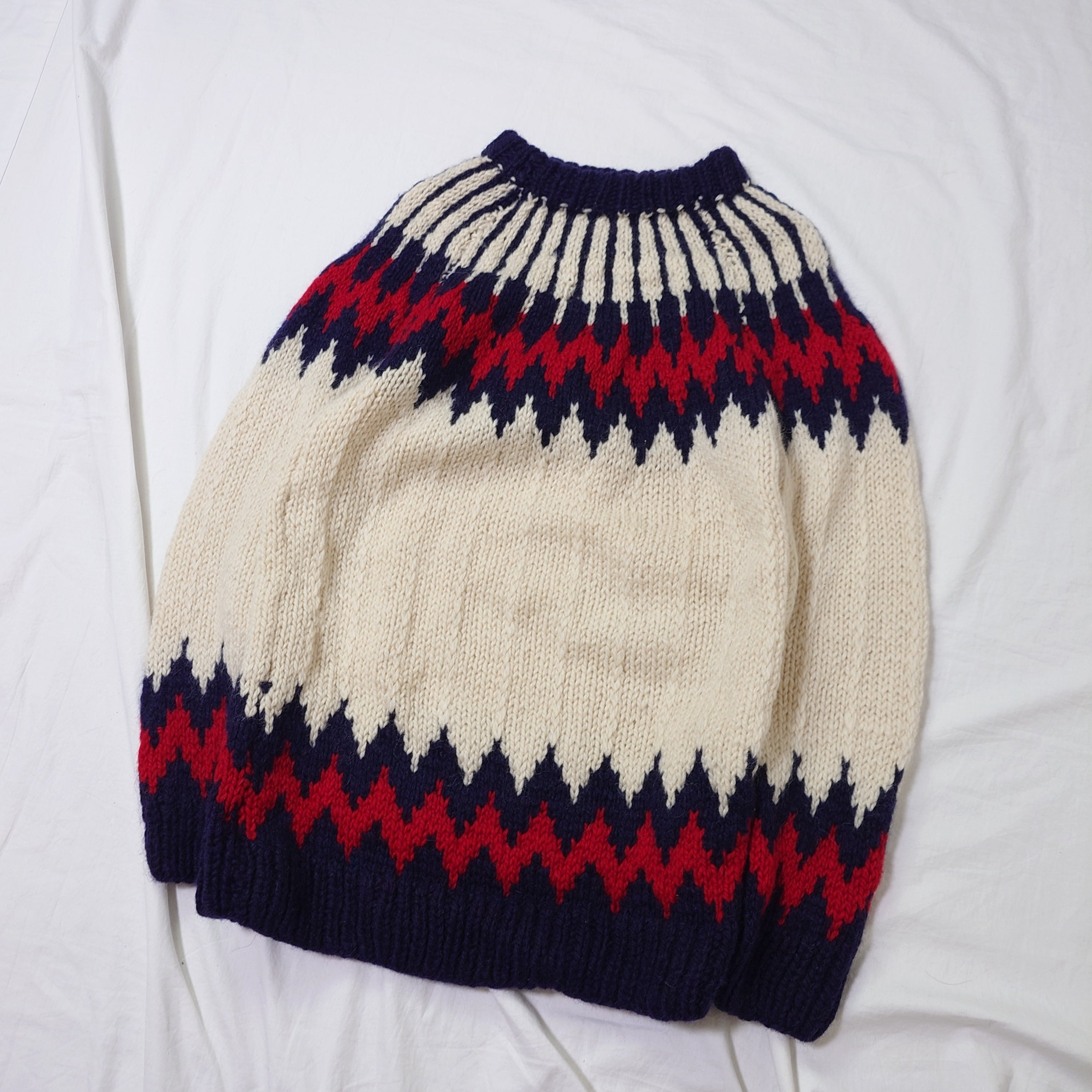 【vintage】古着 ノルディックセーター 手編み Nordic sweater オフホワイト レッド ネイビー ヴィンテージ古着 北欧 ユーロヴィンテージ