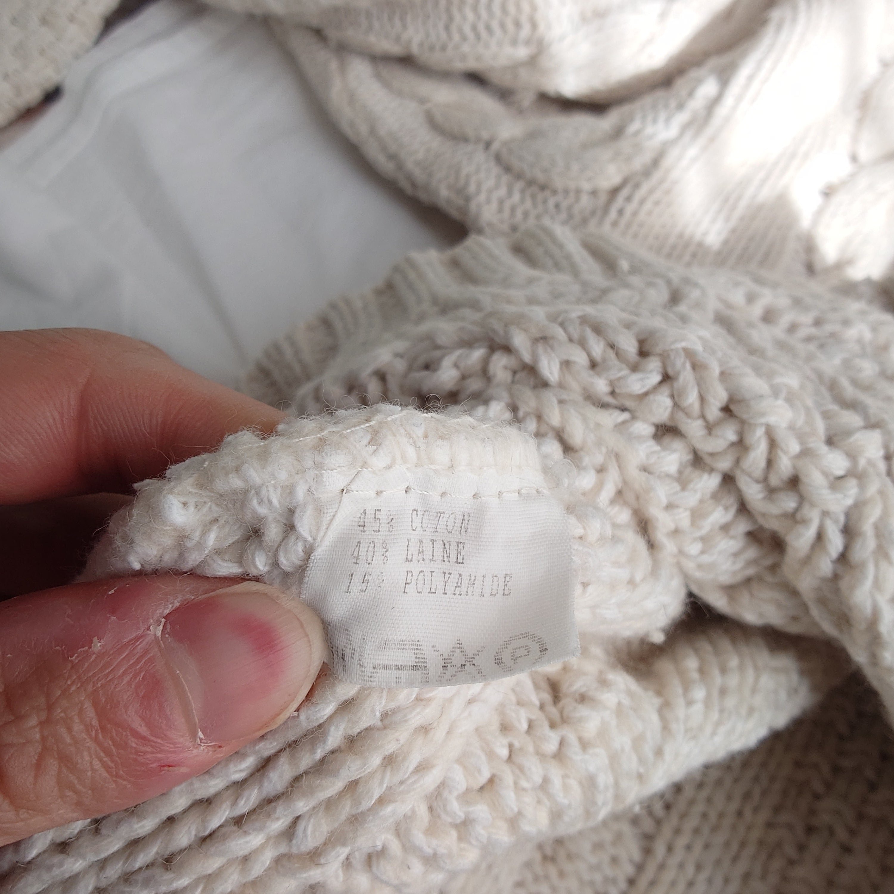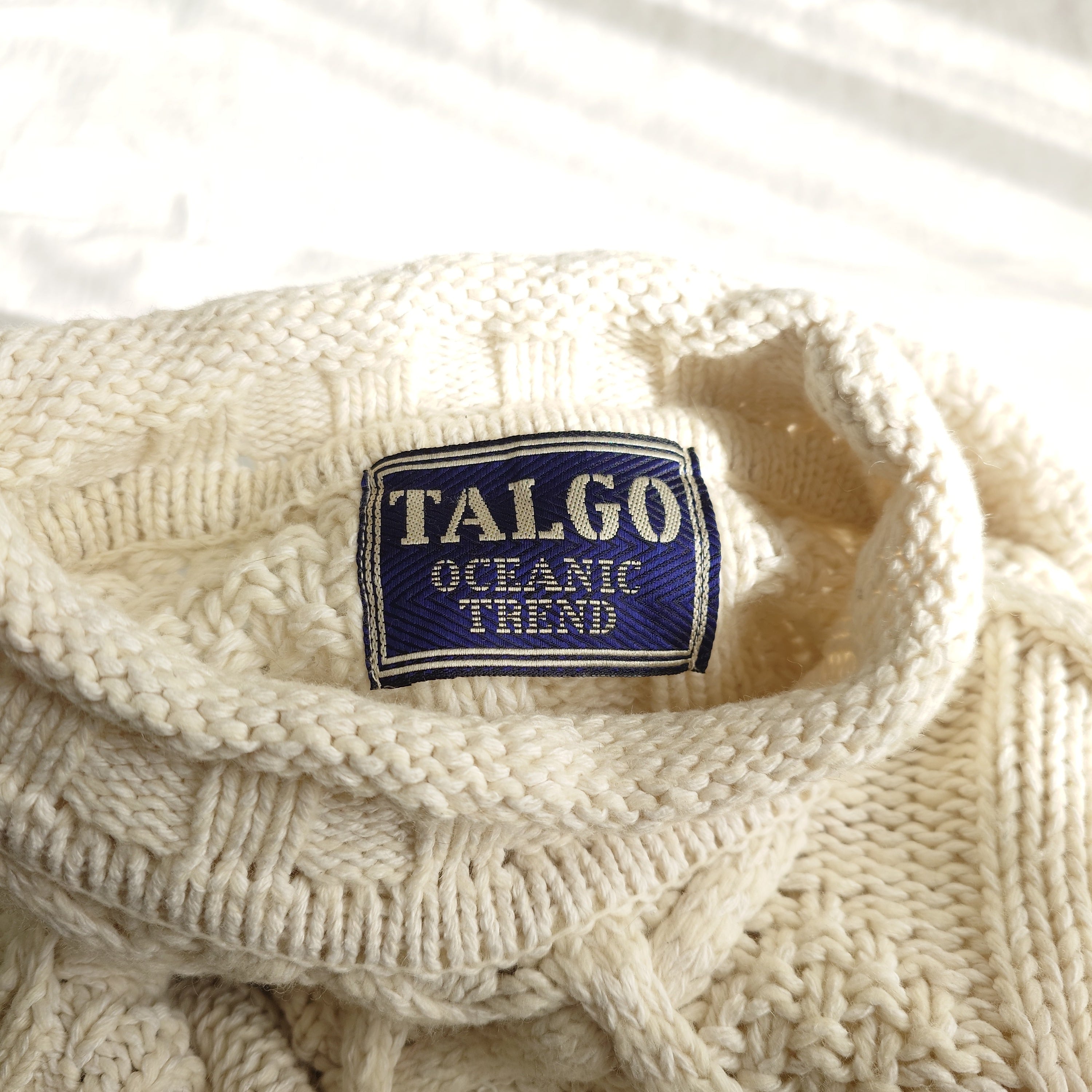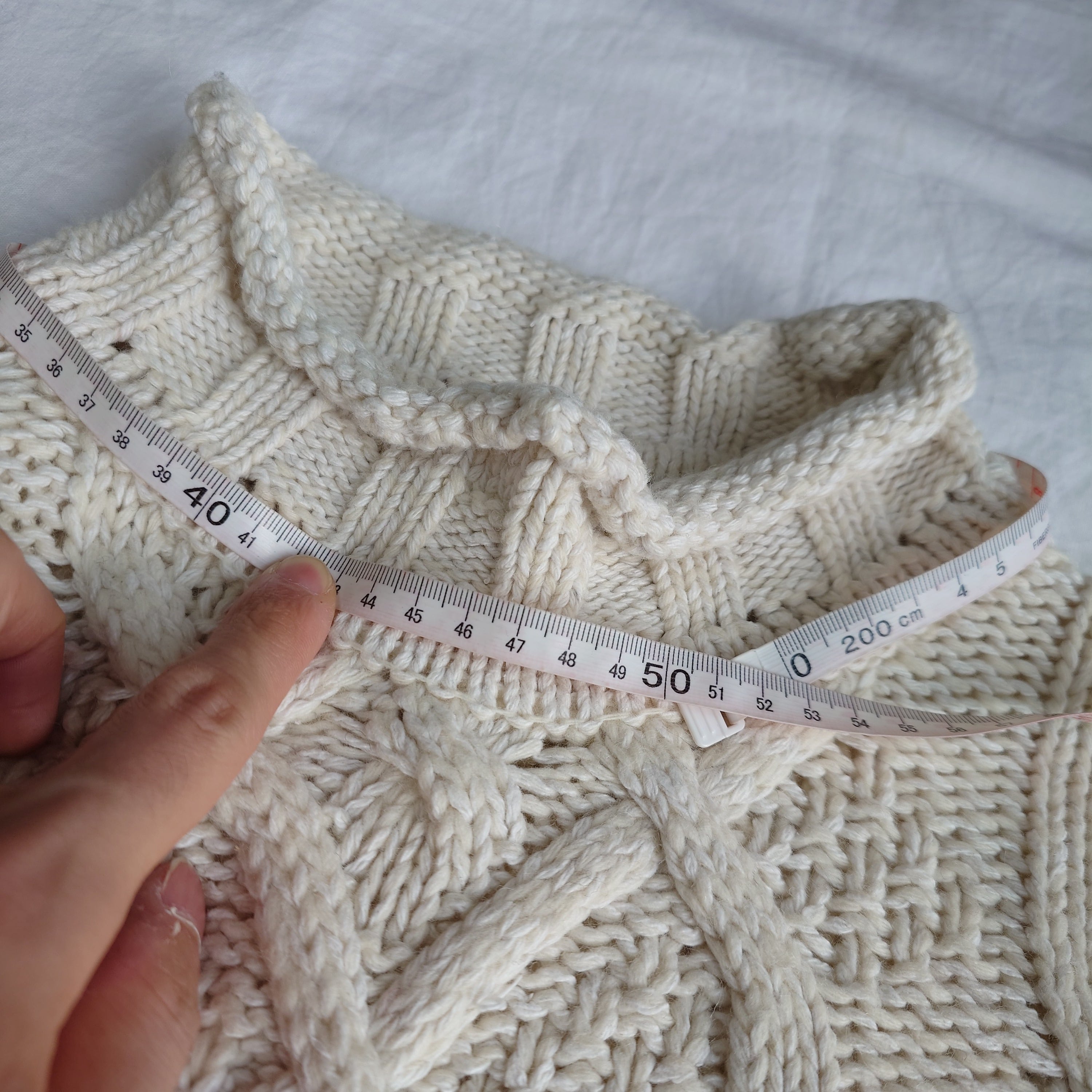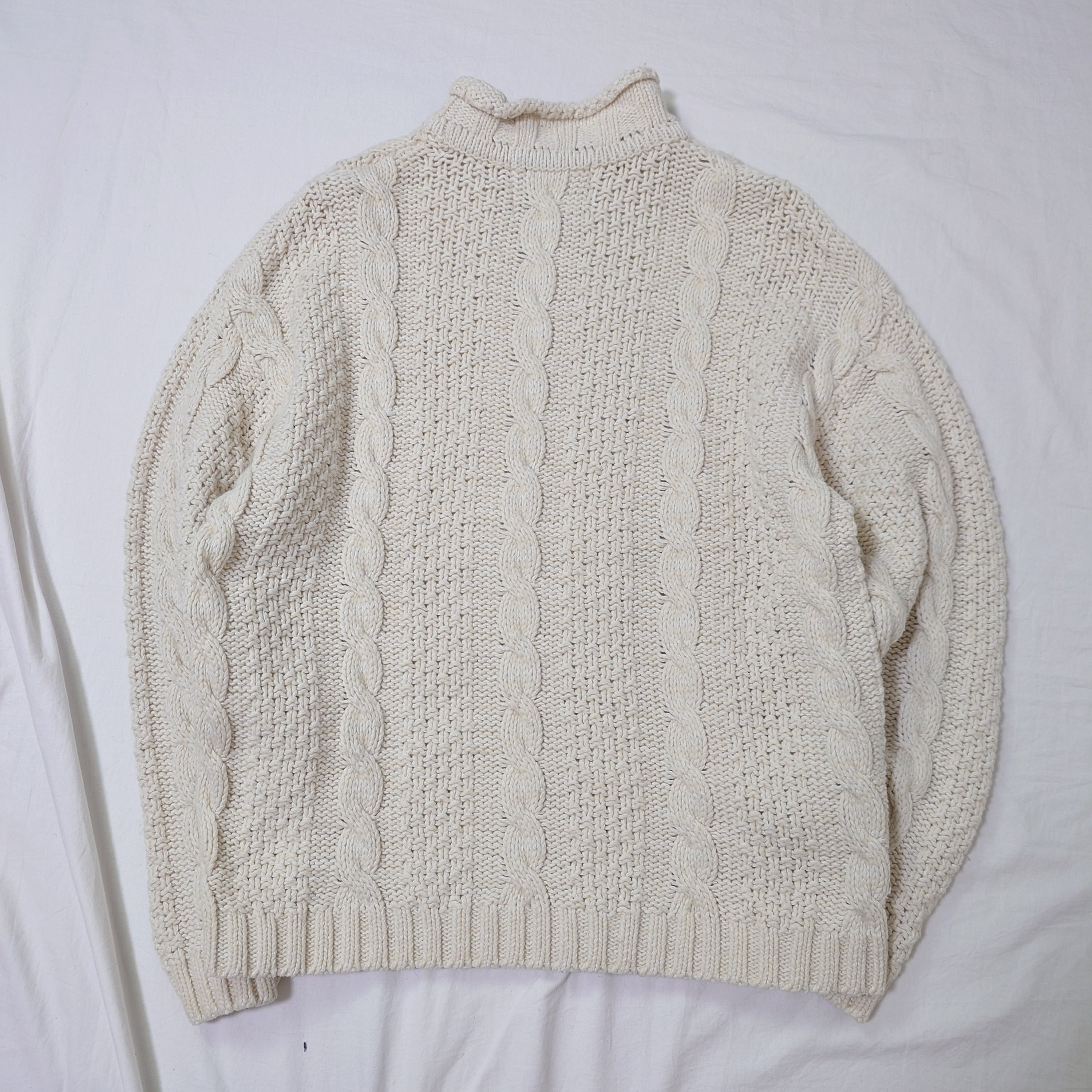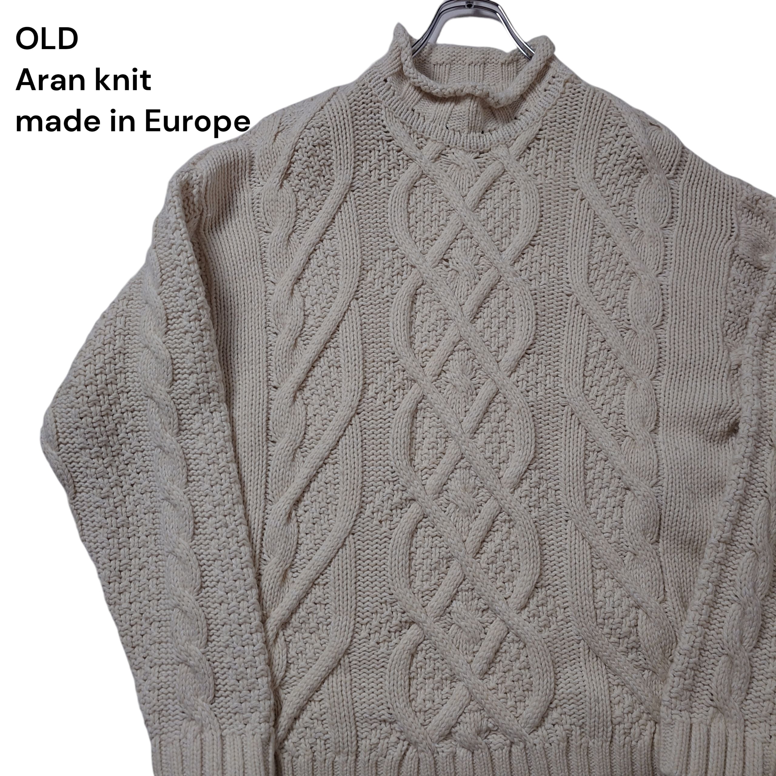 【ヨーロッパ古着】アランニット フィッシャーマンセーター 古着 ロールネック モックネック ホワイト ケーブル編み ユーロ古着 ユーロヴィンテージ euro vintage ウールコットン