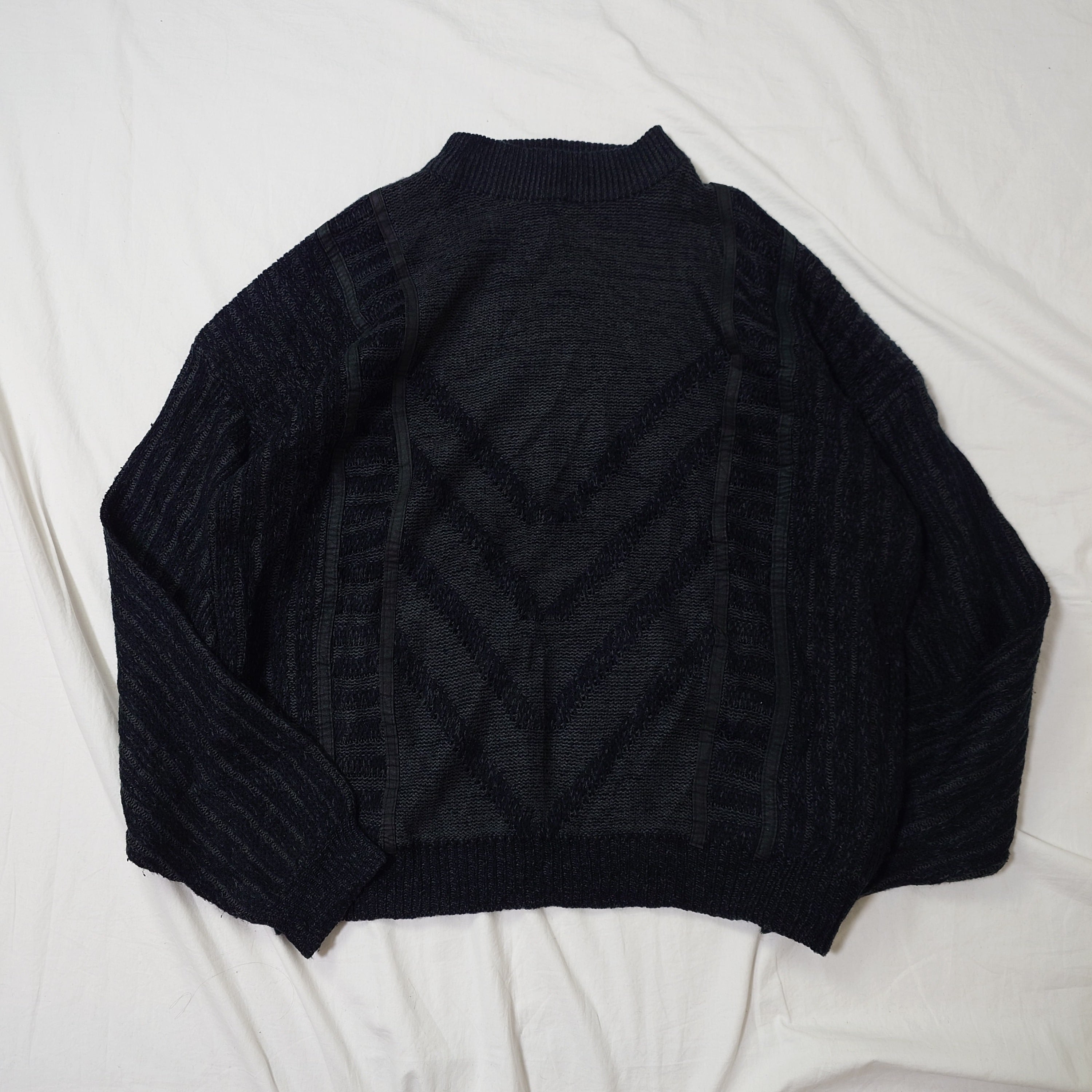 【80s】Bugle boy ビューグルボーイ アクリルニット デザイン古着 モード ブラック グレー レトロ ヴィンテージ 80年代 モックネック アクリルセーター