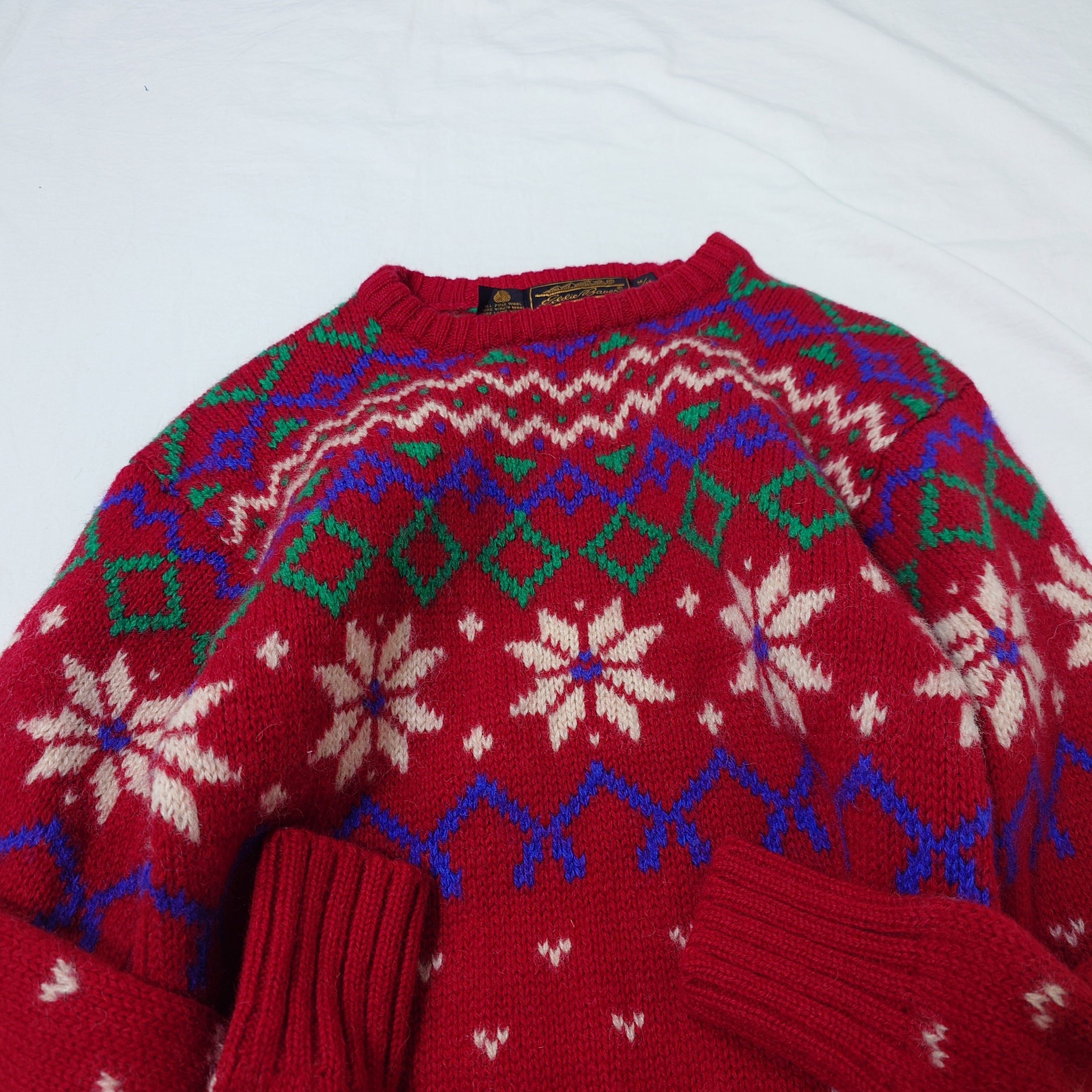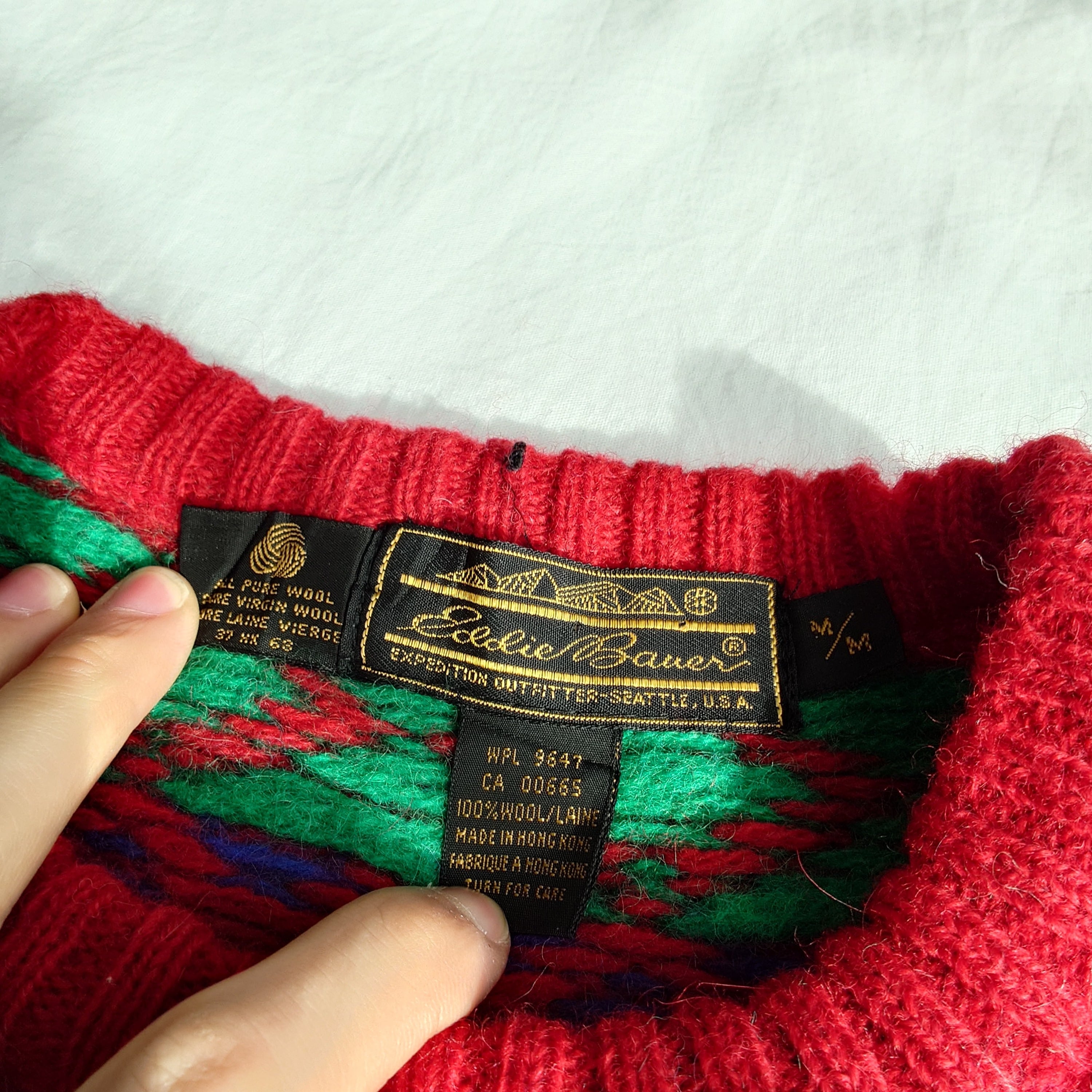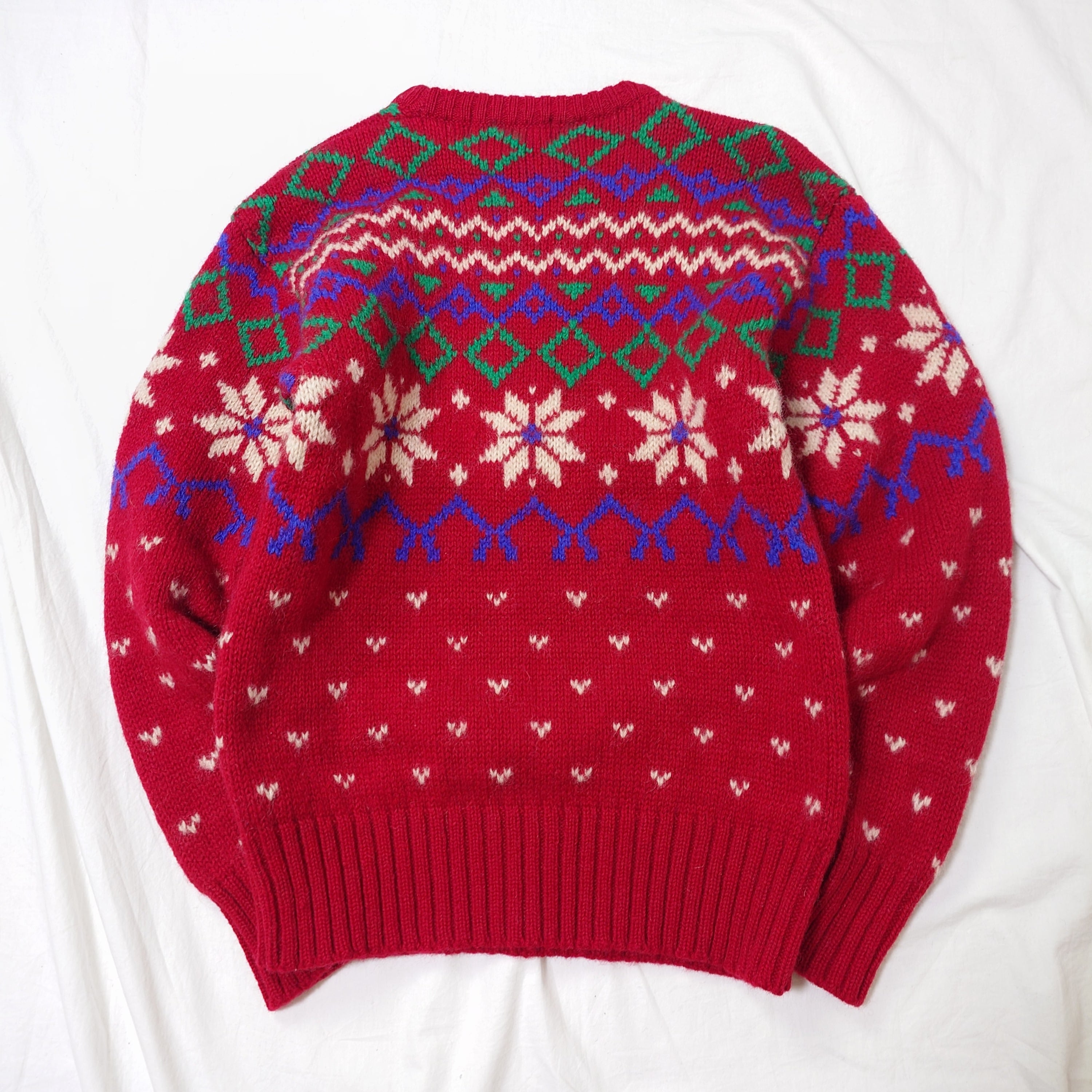 【80s】Eddie Bauer エディーバウアー ノルディックセーター レッド 赤 ウール 黒タグ レディース古着 ヴィンテージ セーター アメカジ 80年代