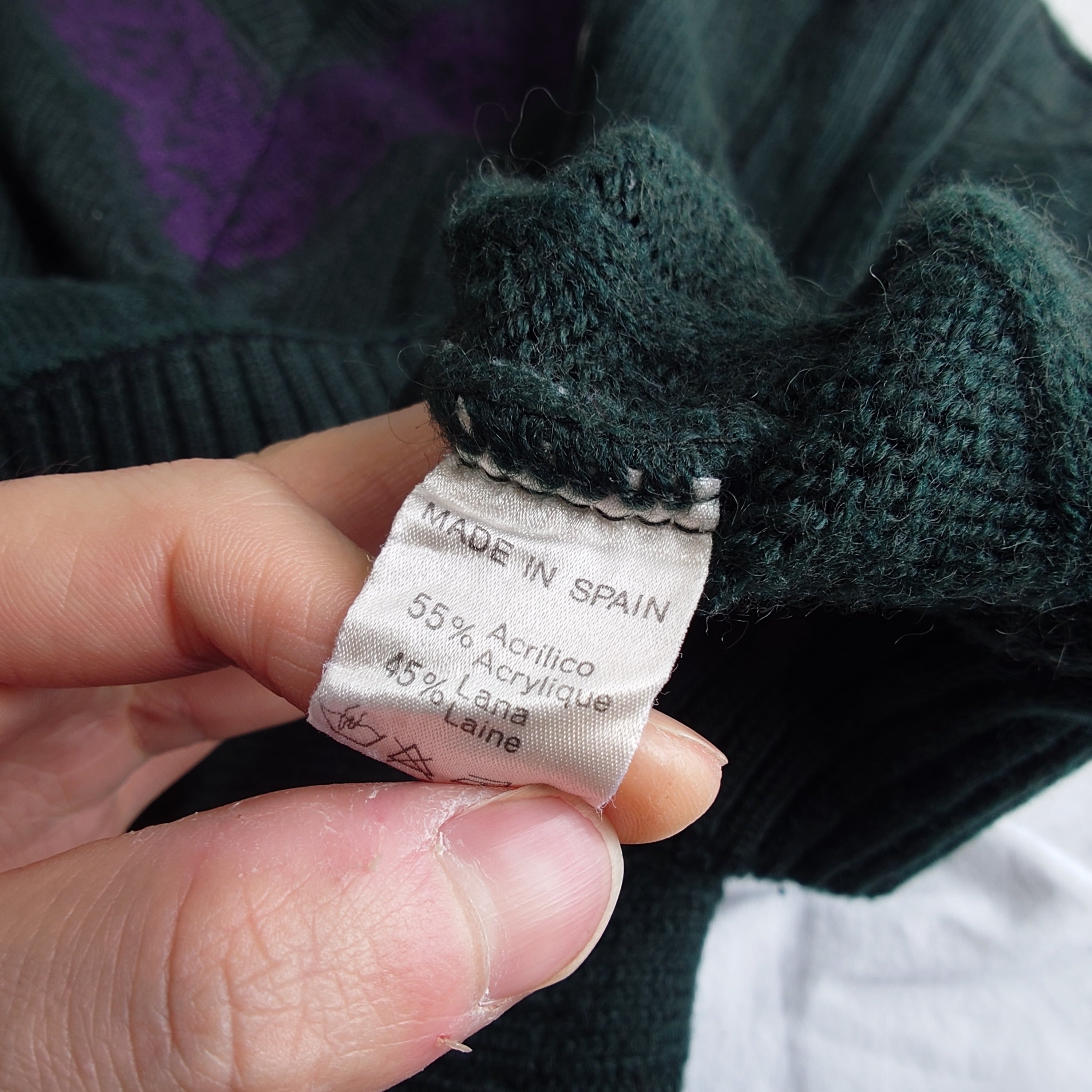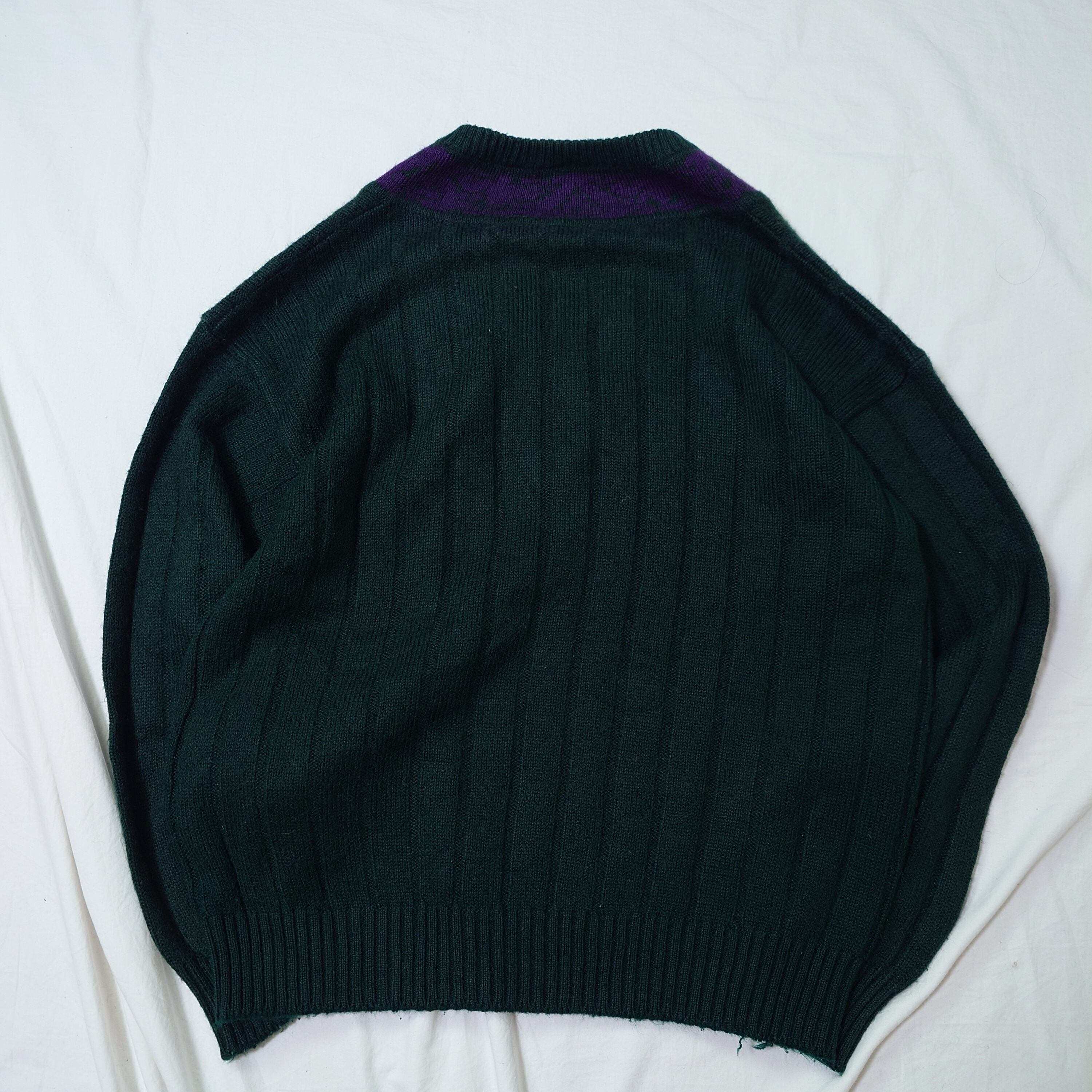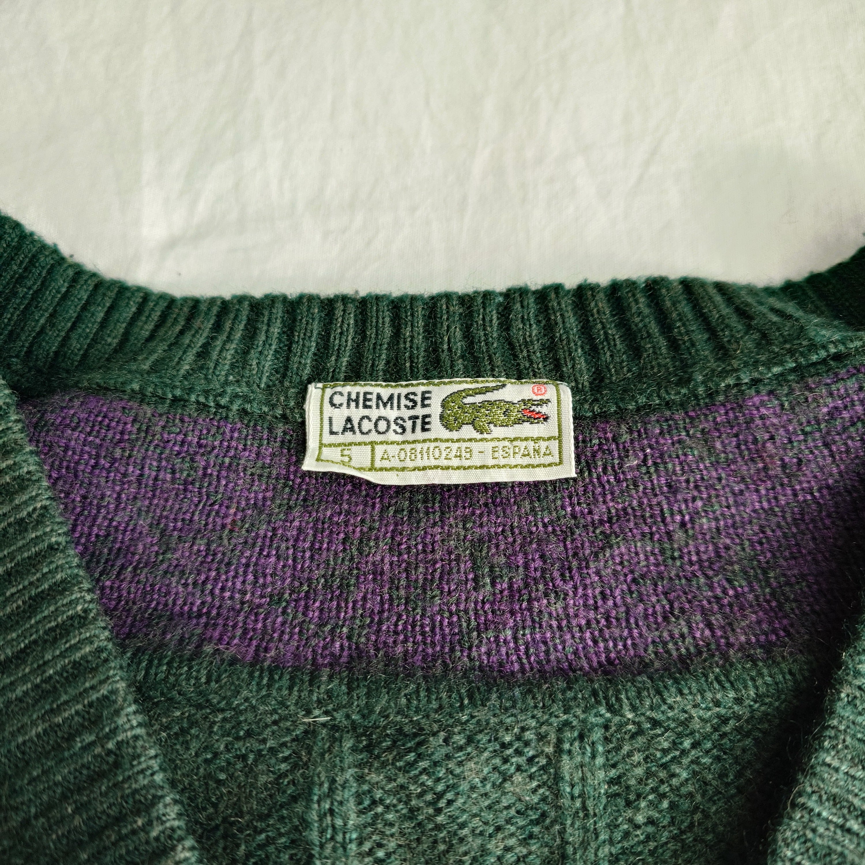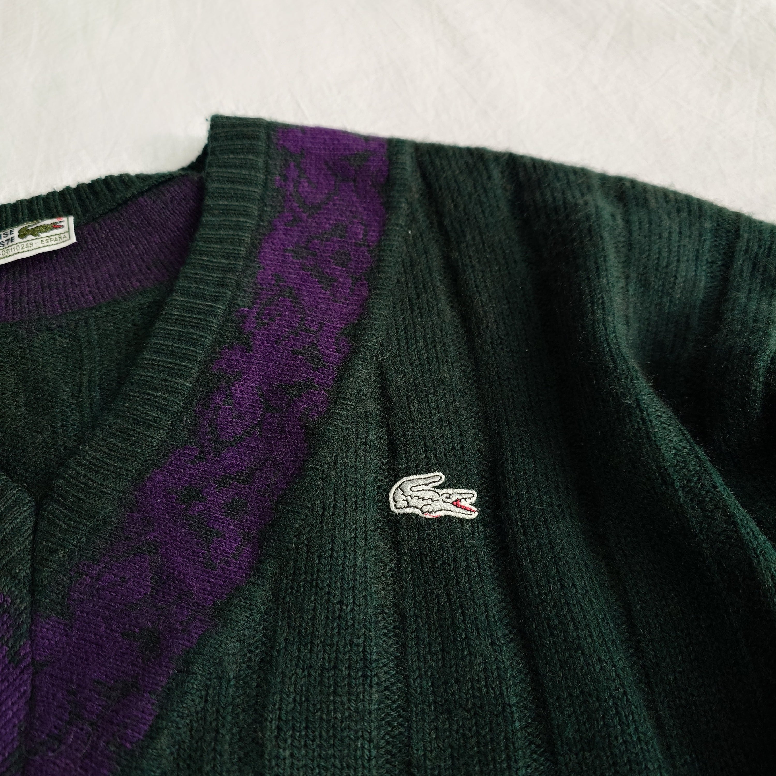 【80s】CHEMISE LACOSTE ラコステ チルデンニット グリーン スペイン製 ヨーロッパ古着 白ワニ パープル 80年代
