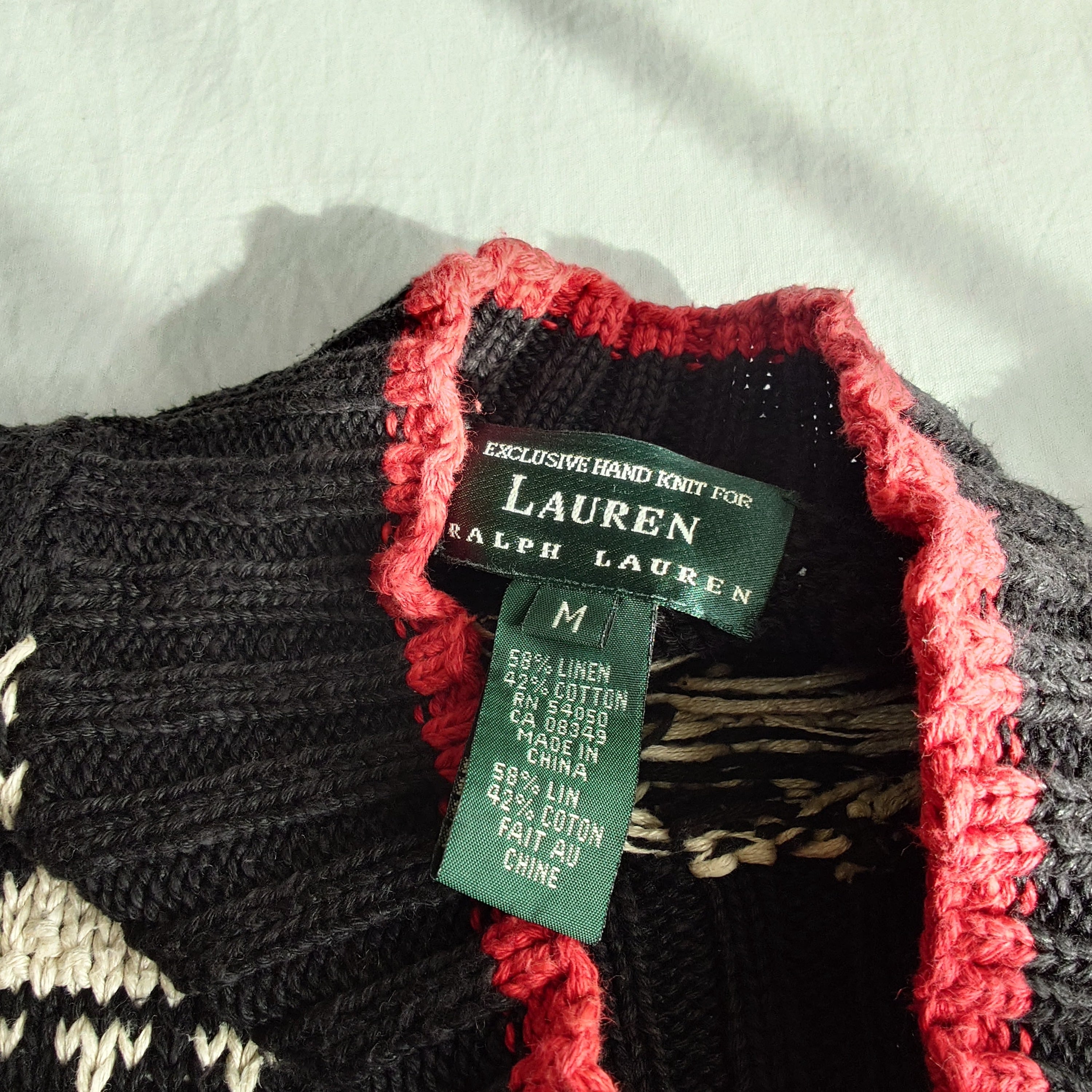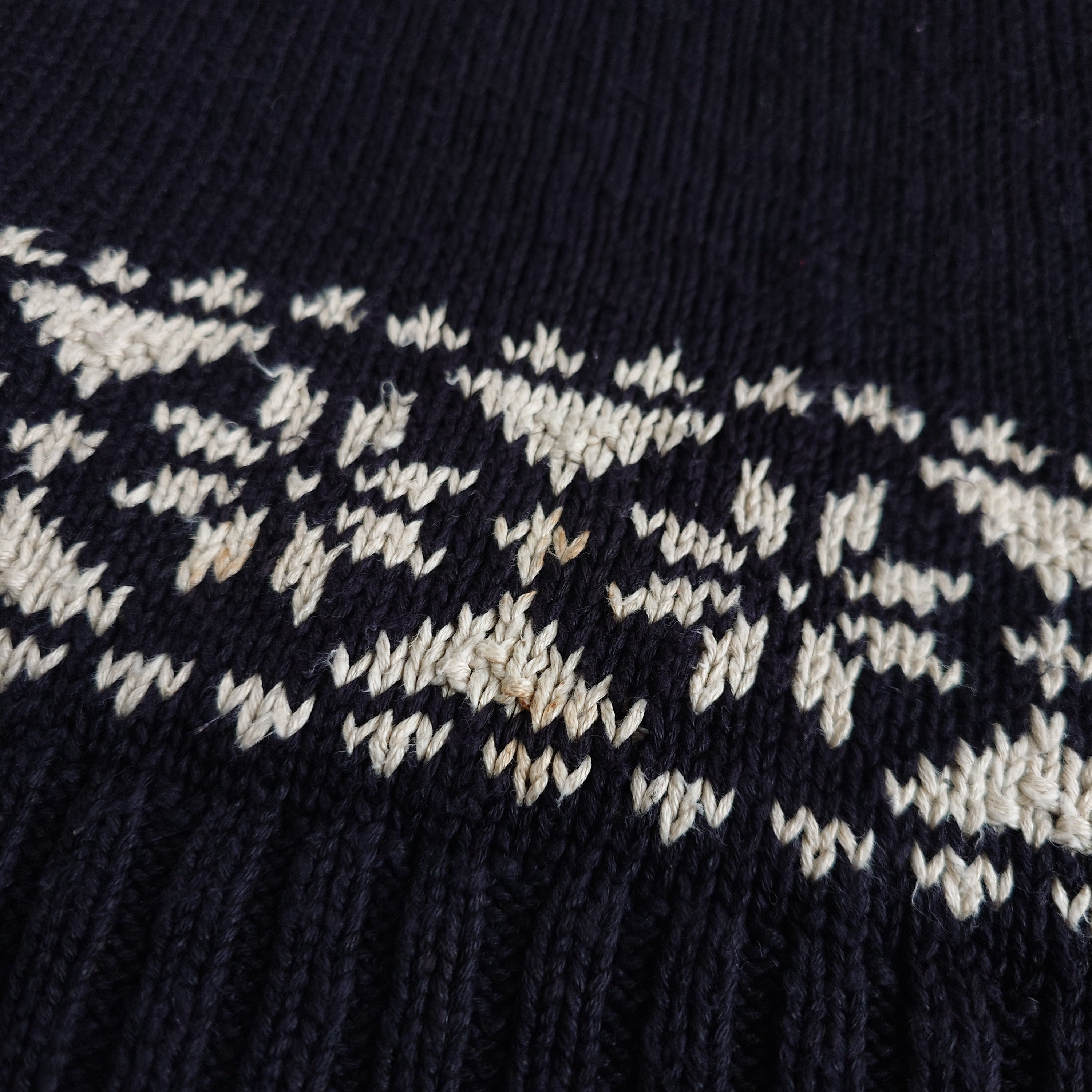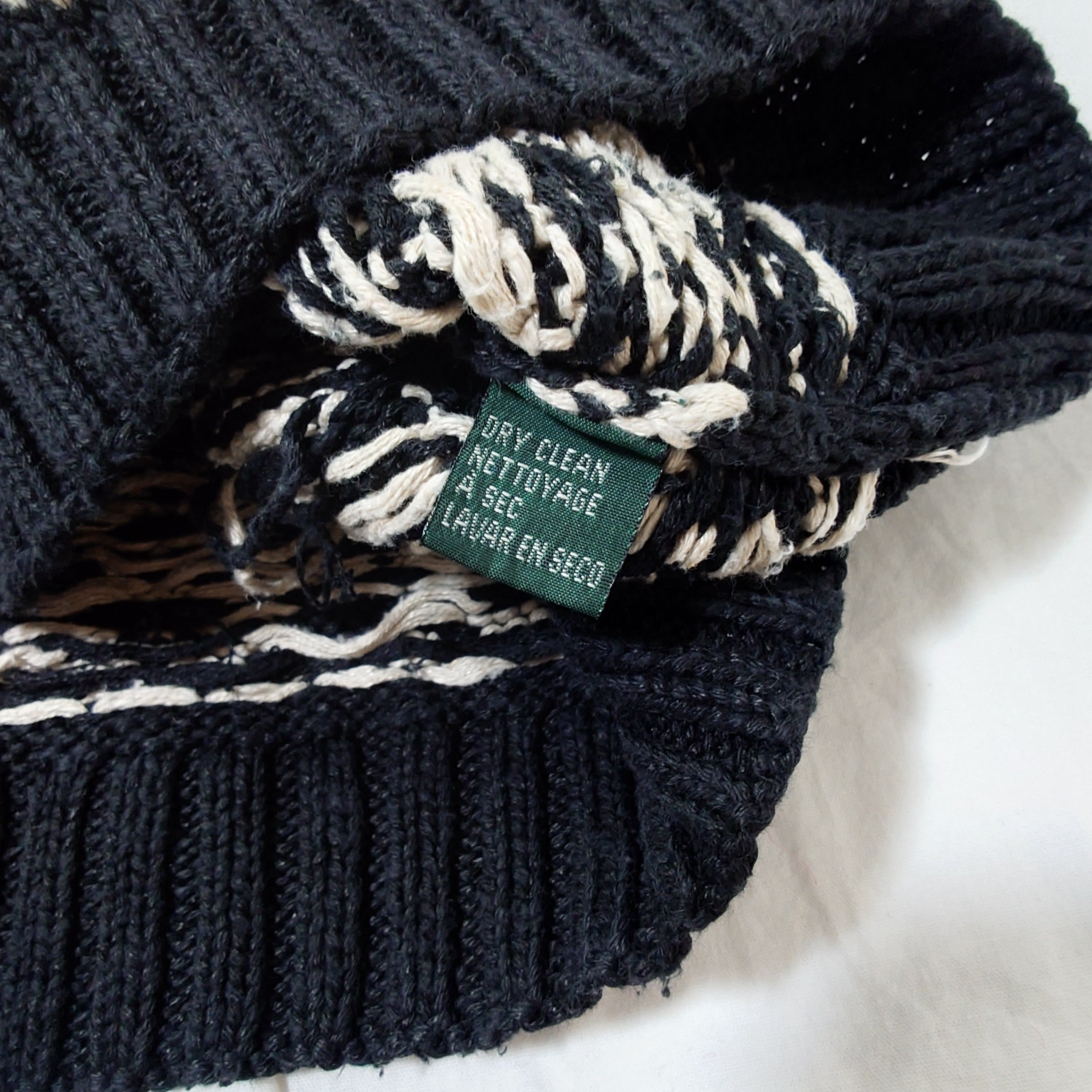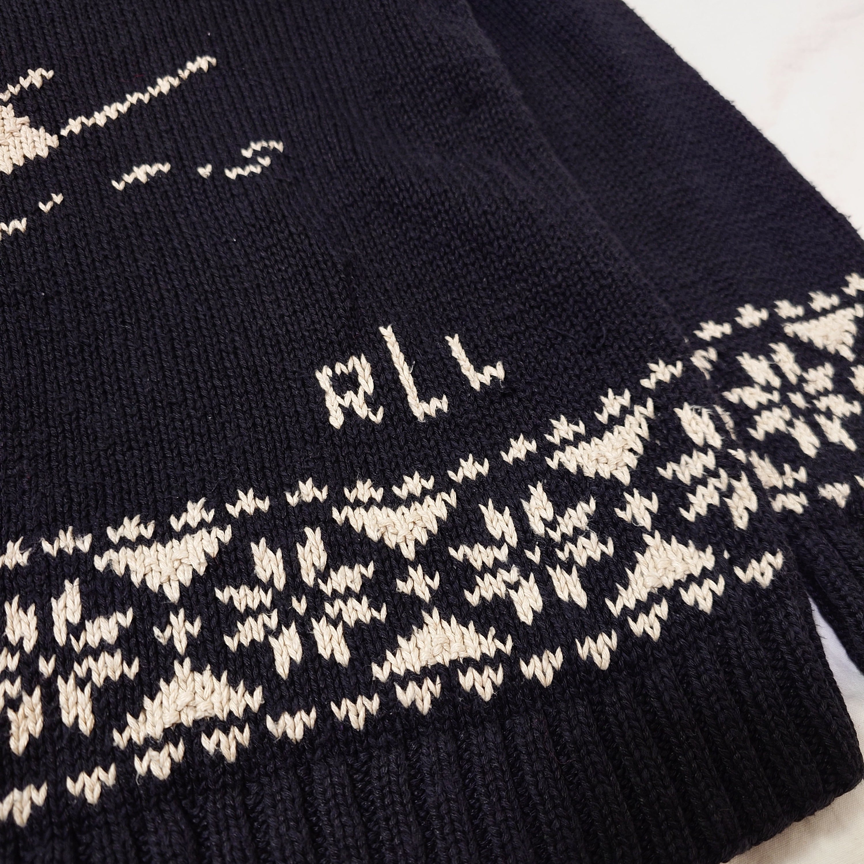【80s】Ralph Lauren ラルフローレン スキー柄 コットンニット ブラック モックネック ノルディック ヴィンテージ リネン 古着