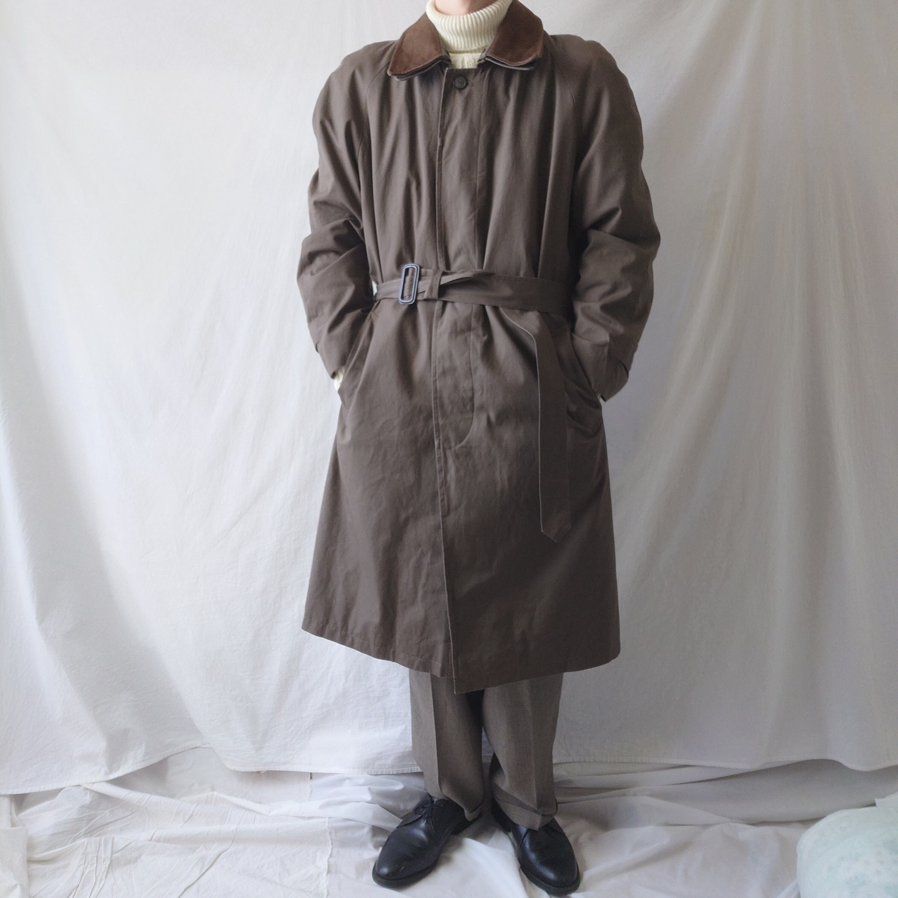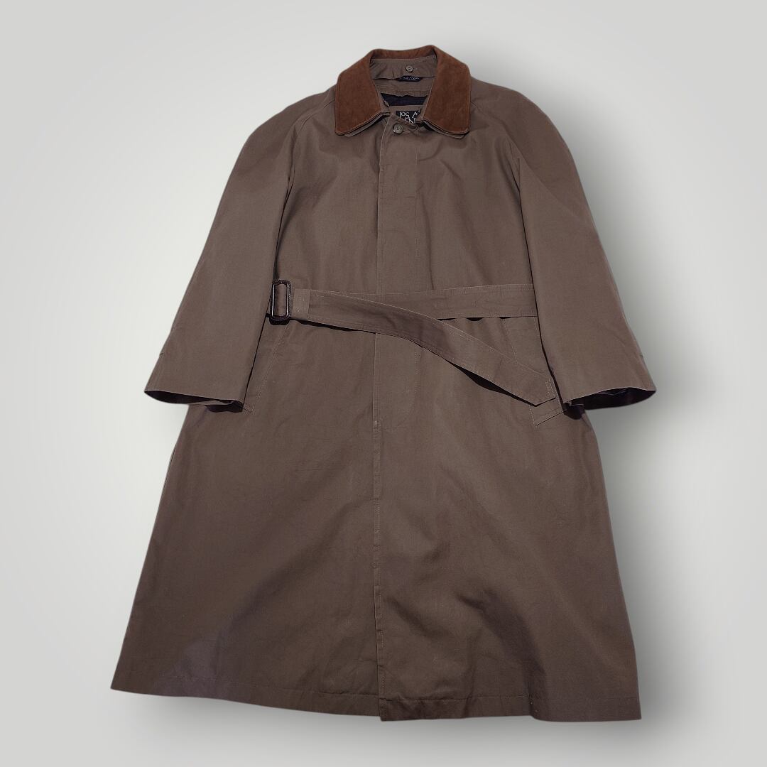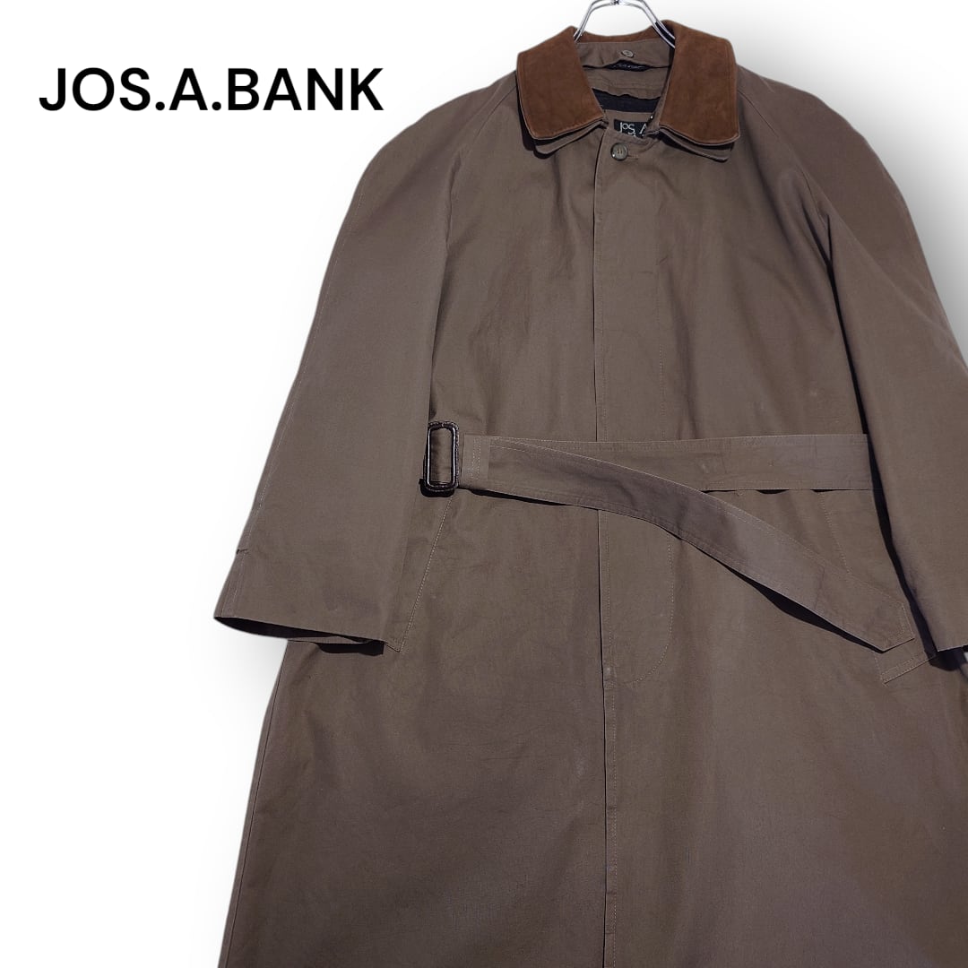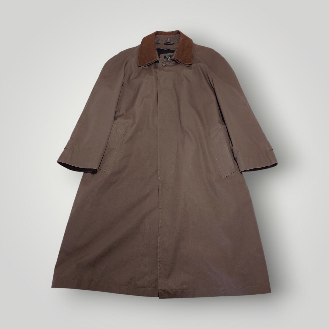 【90s】JOS.A.BANK バルマカーンコート レザー襟 ライナー ベルト付き 90年代 古着 ラグランスリーブ 切り替え コットン100