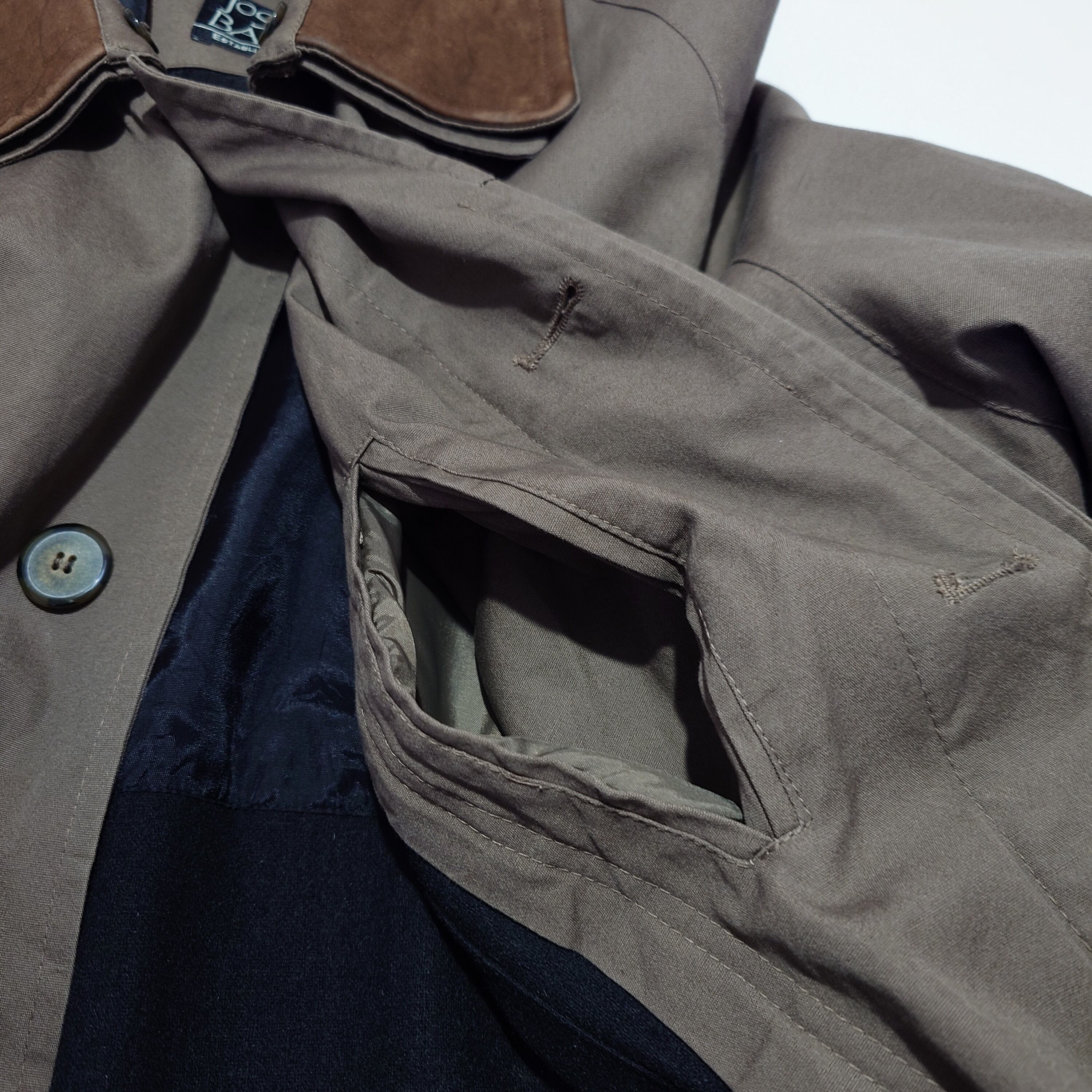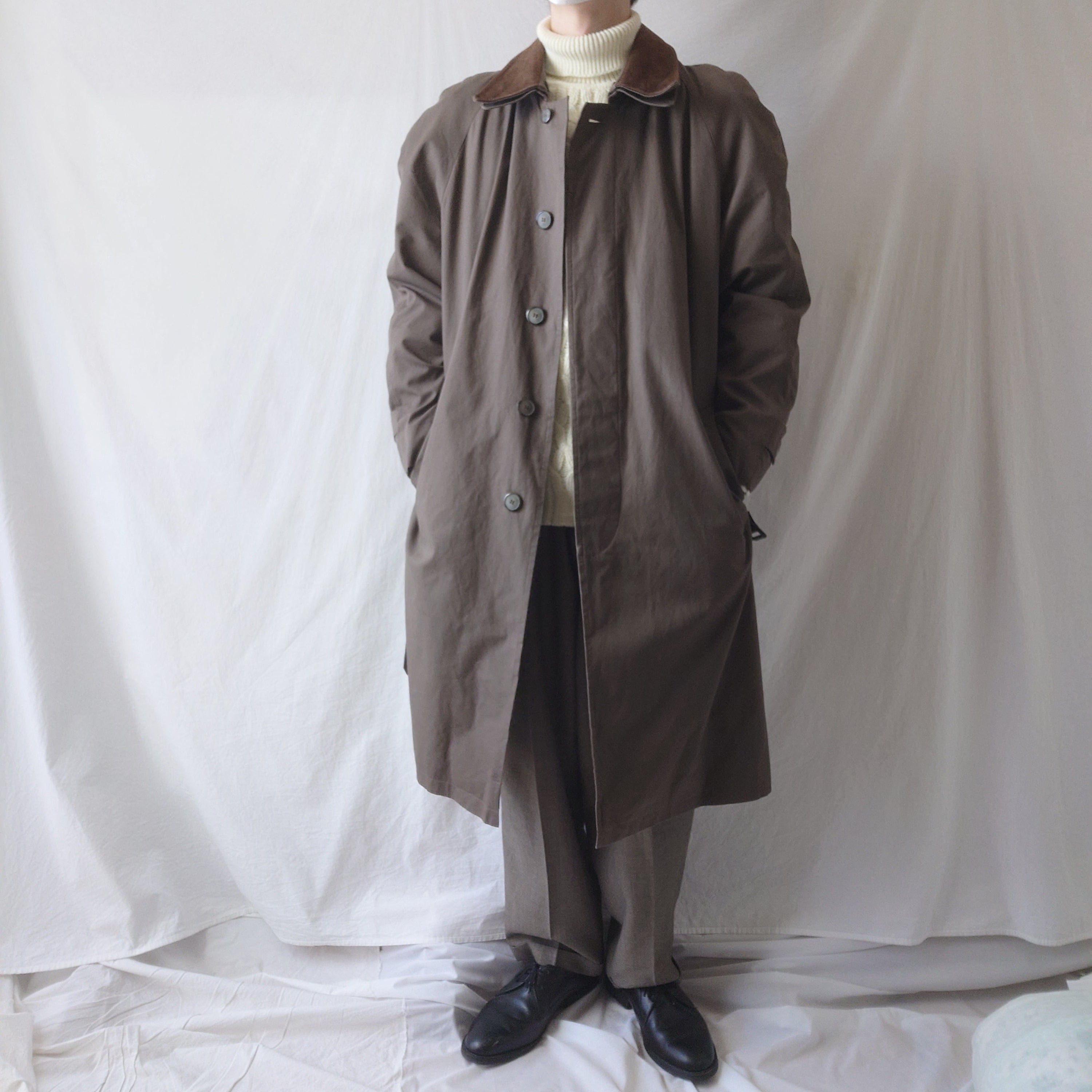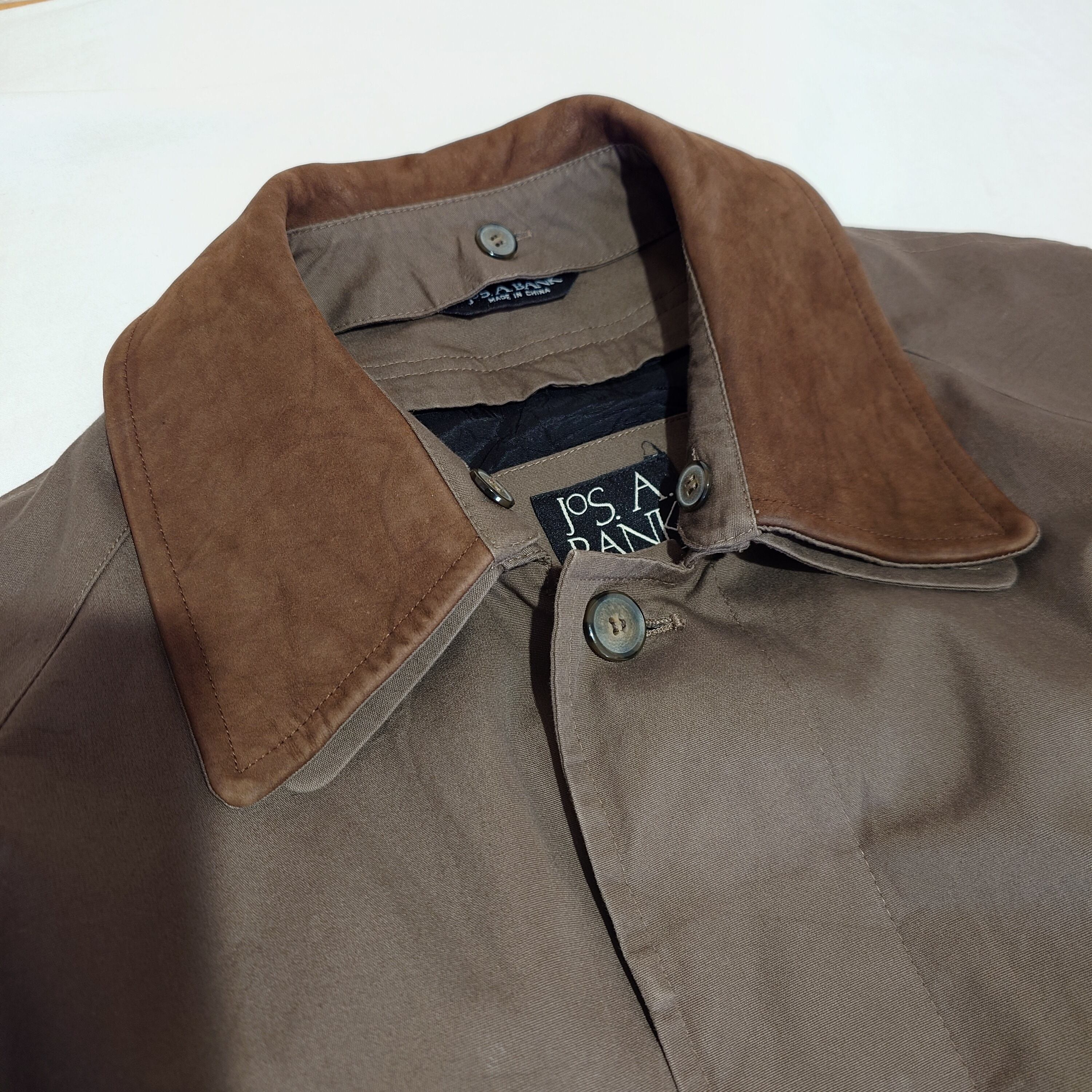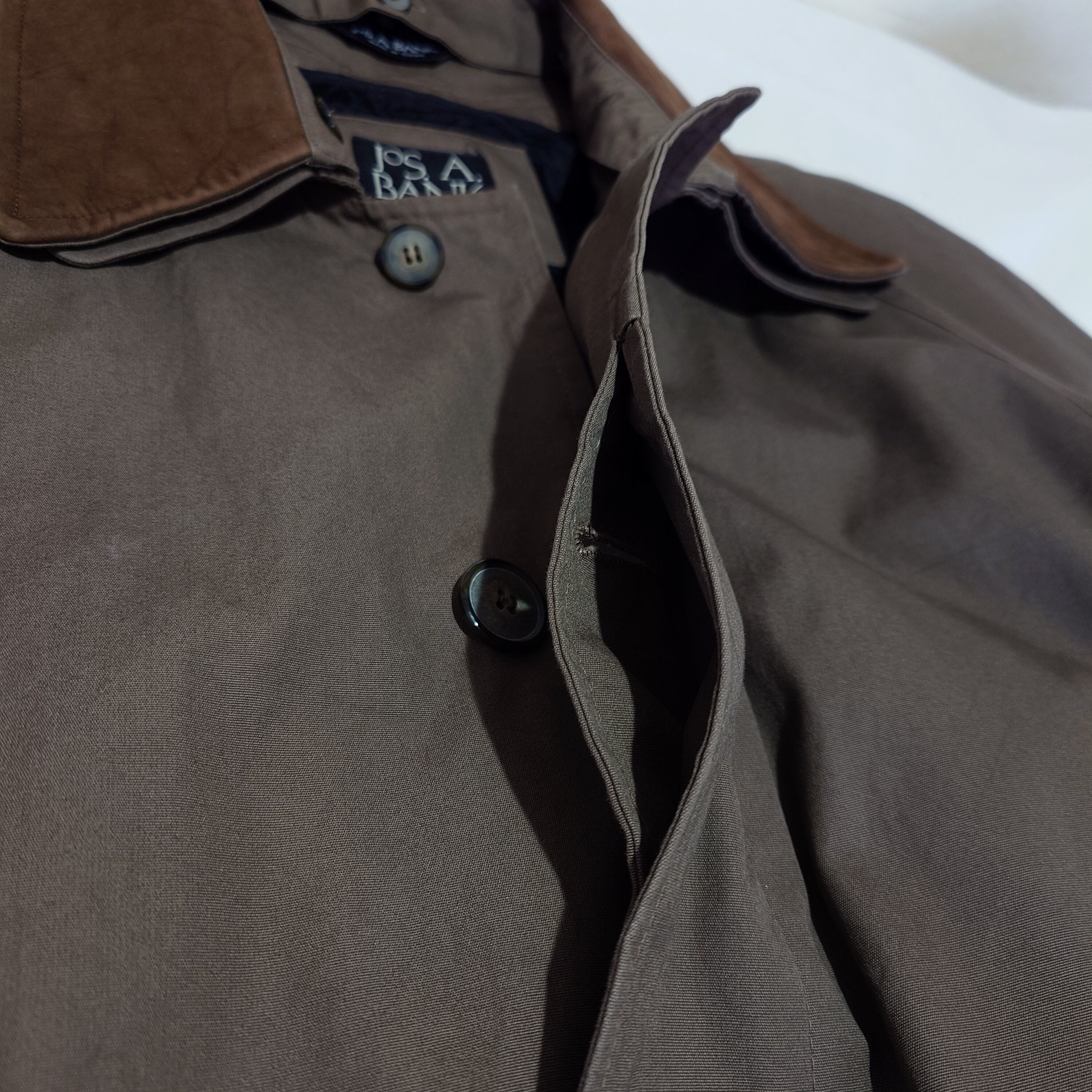 【90s】JOS.A.BANK バルマカーンコート レザー襟 ライナー ベルト付き 90年代 古着 ラグランスリーブ 切り替え コットン100