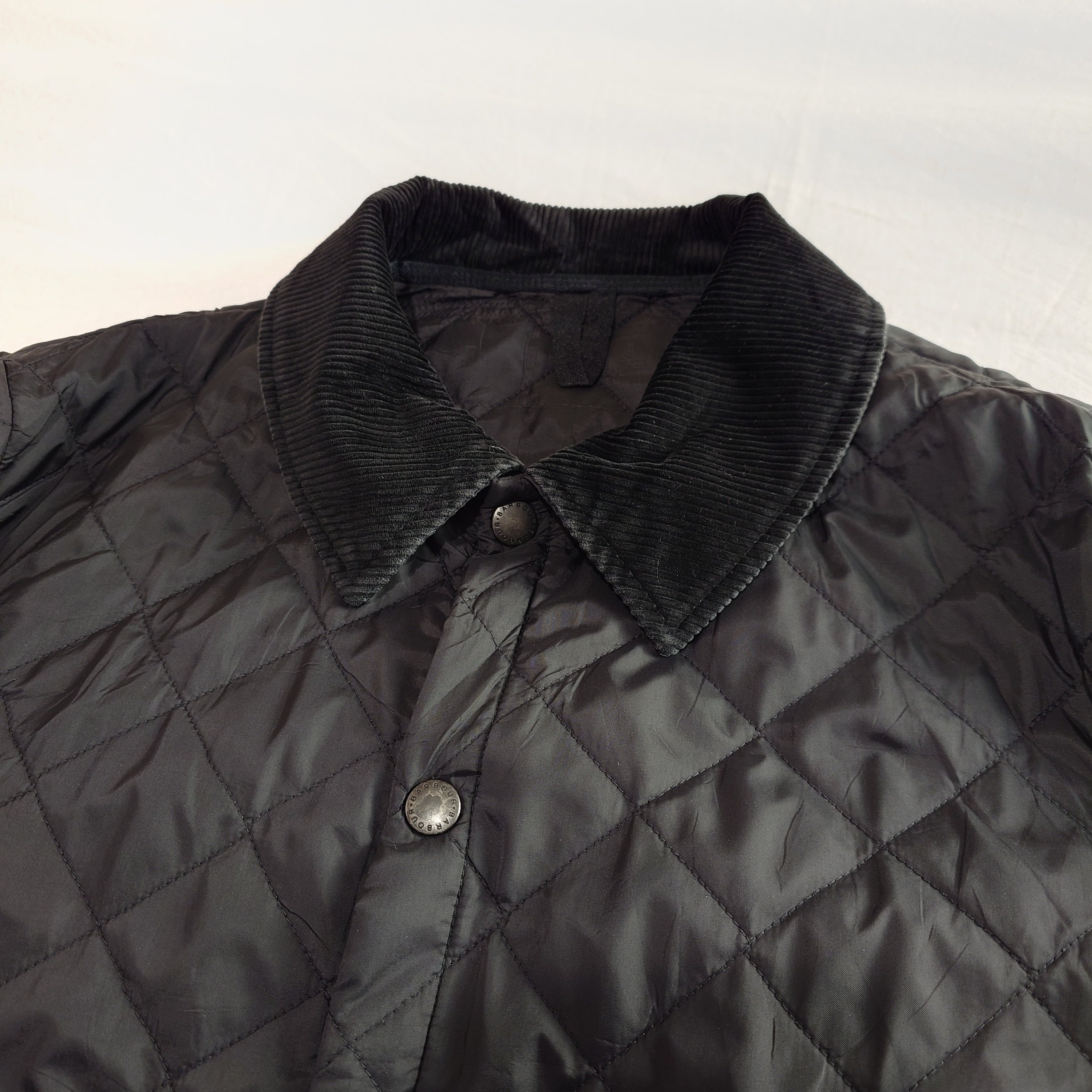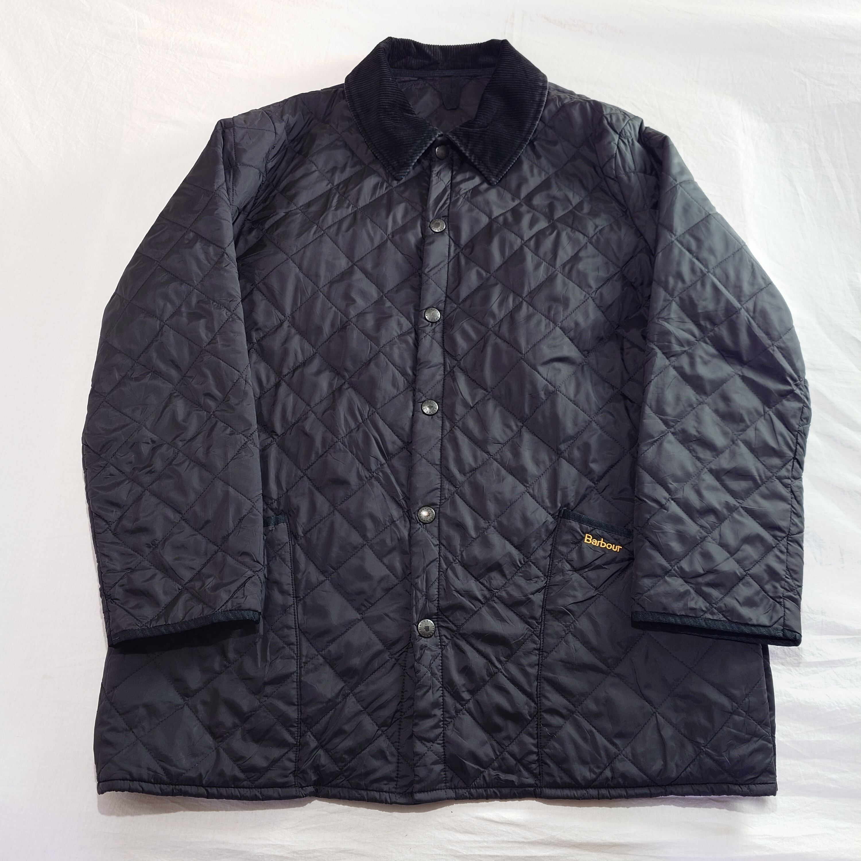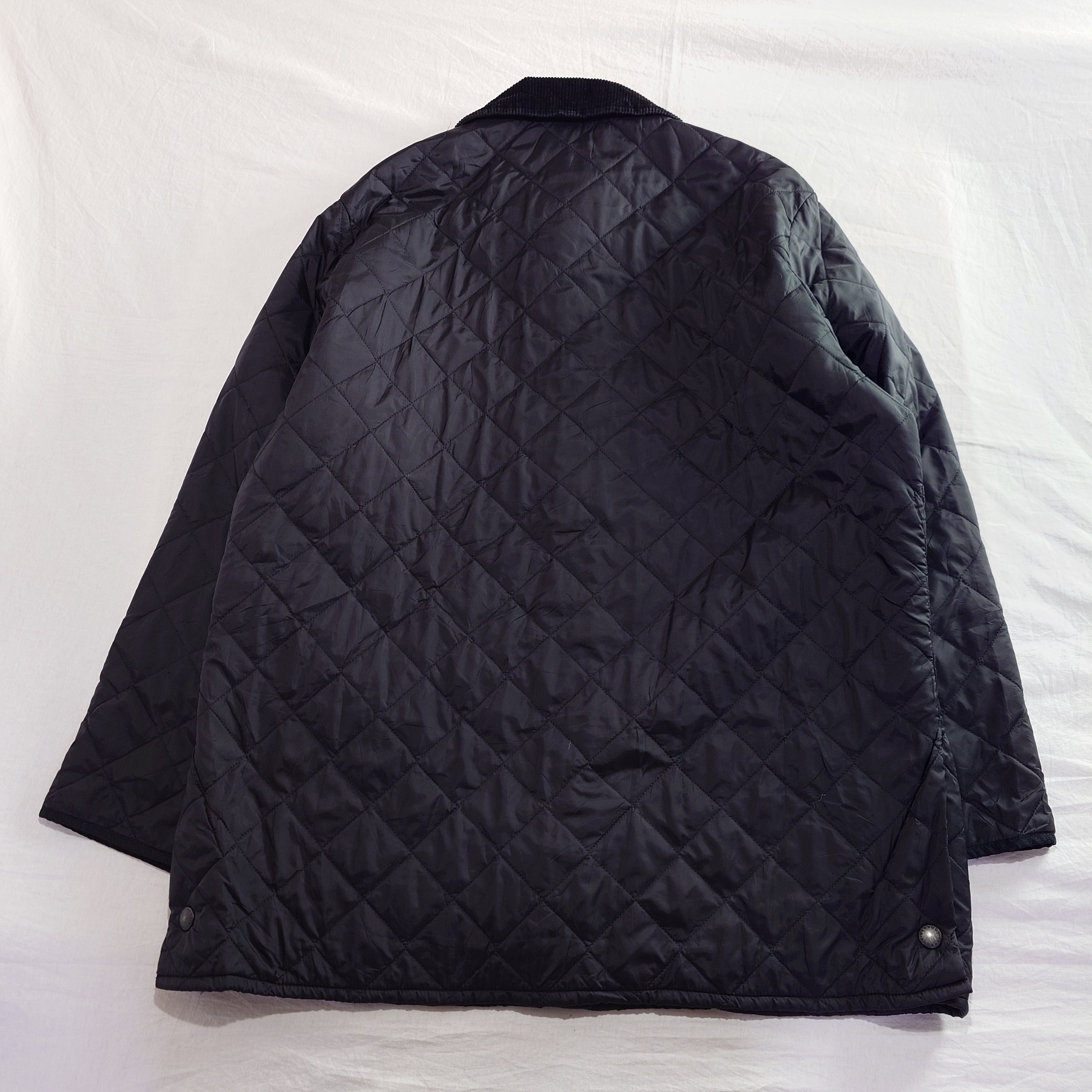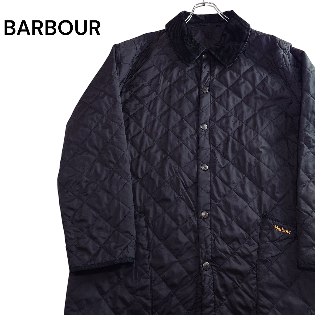 【UK古着】BARBOUR バブアー キルティングジャケット コーデュロイ襟 刺繍ロゴ スナップボタン ナイロン ブラック 黒 ユーロ古着 ヨーロッパ古着