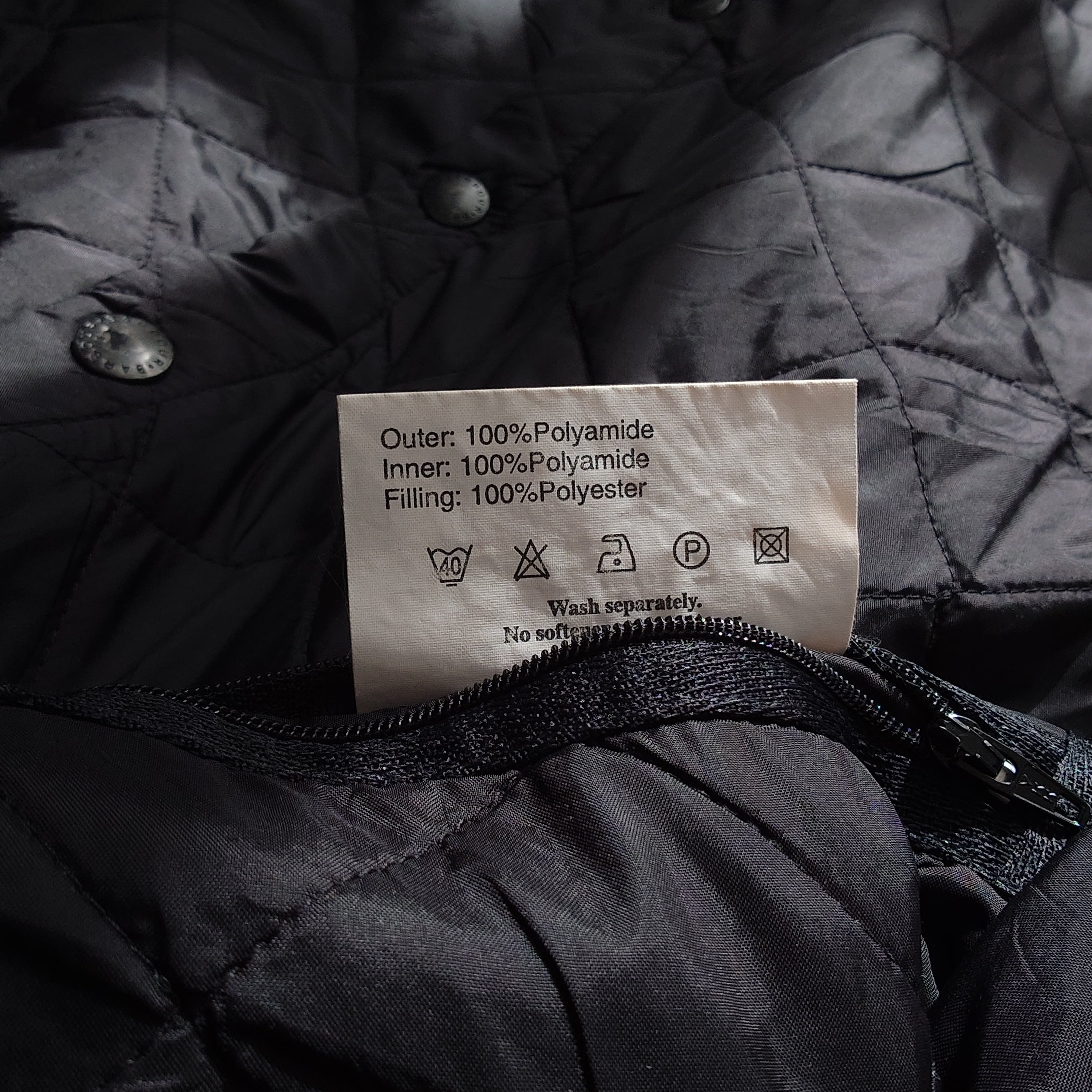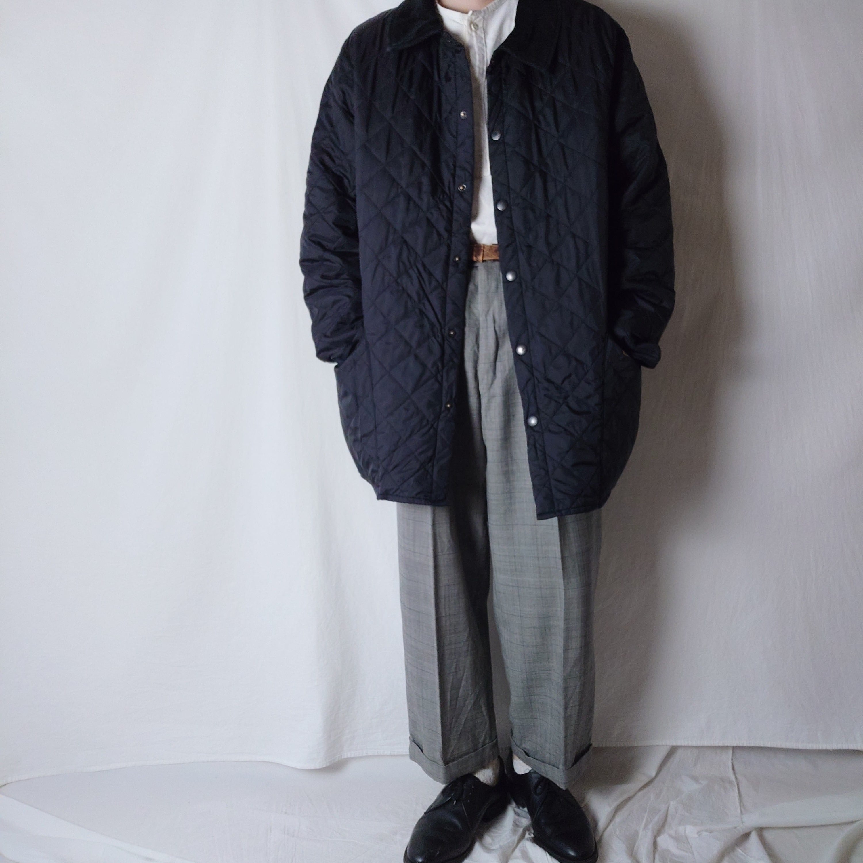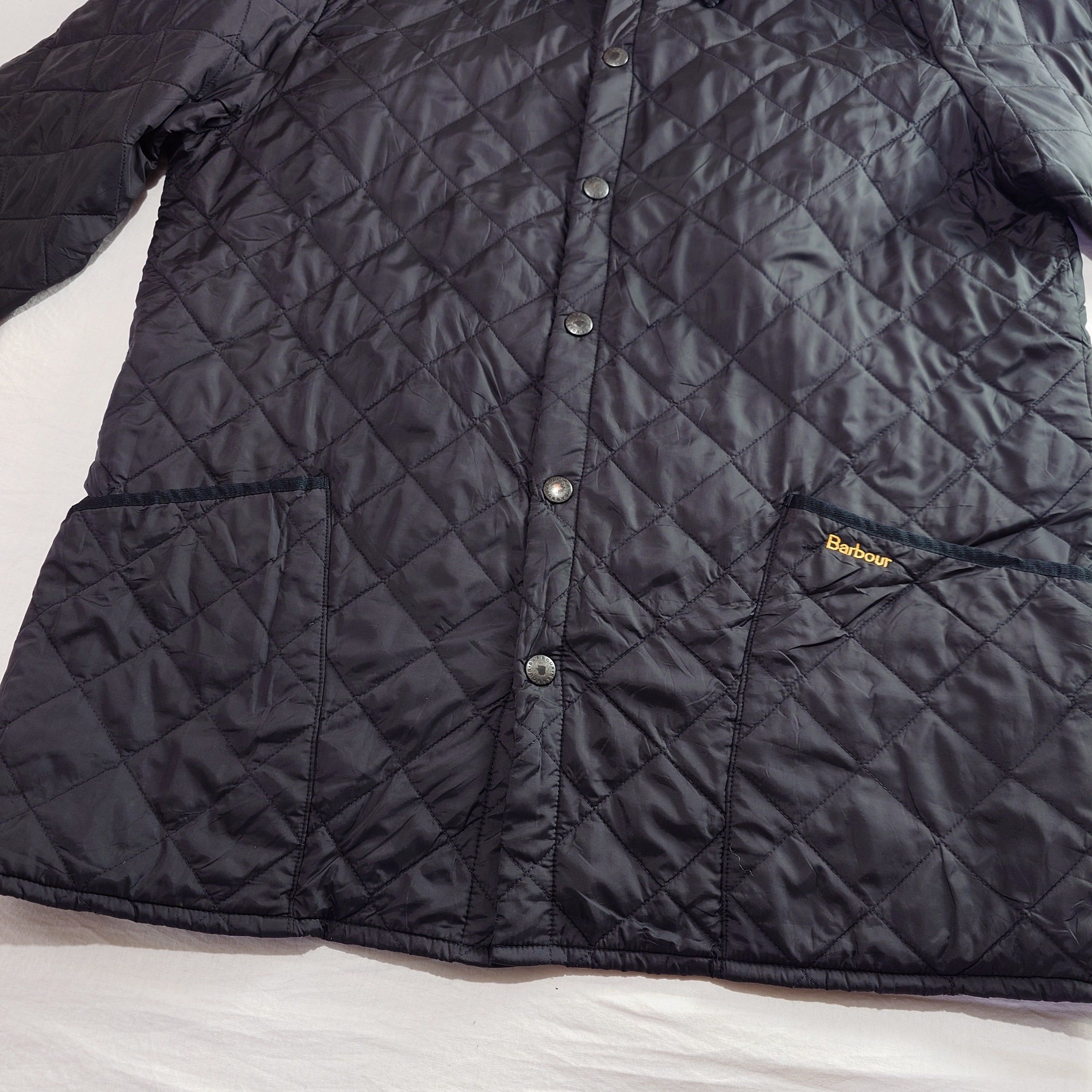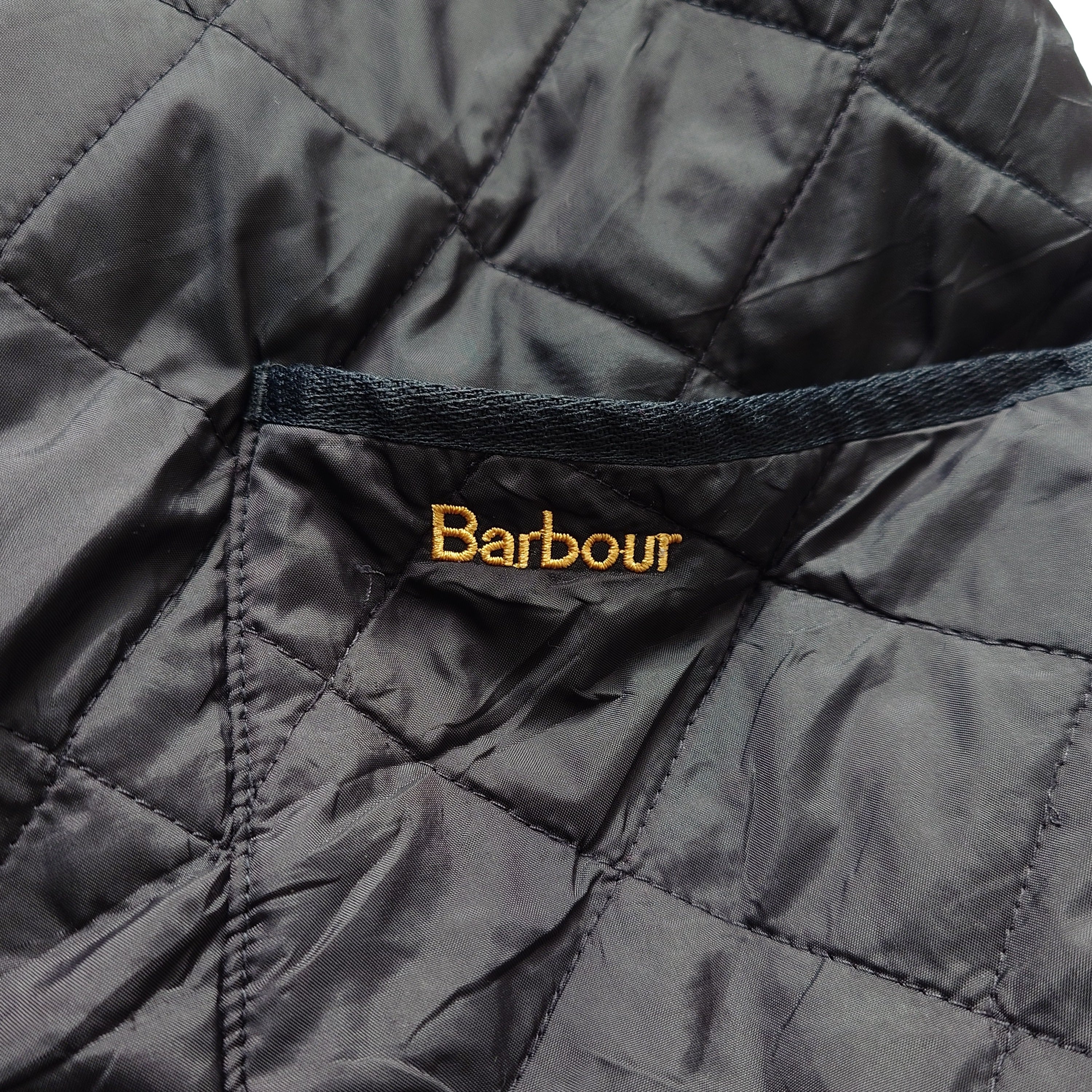 【UK古着】BARBOUR バブアー キルティングジャケット コーデュロイ襟 刺繍ロゴ スナップボタン ナイロン ブラック 黒 ユーロ古着 ヨーロッパ古着