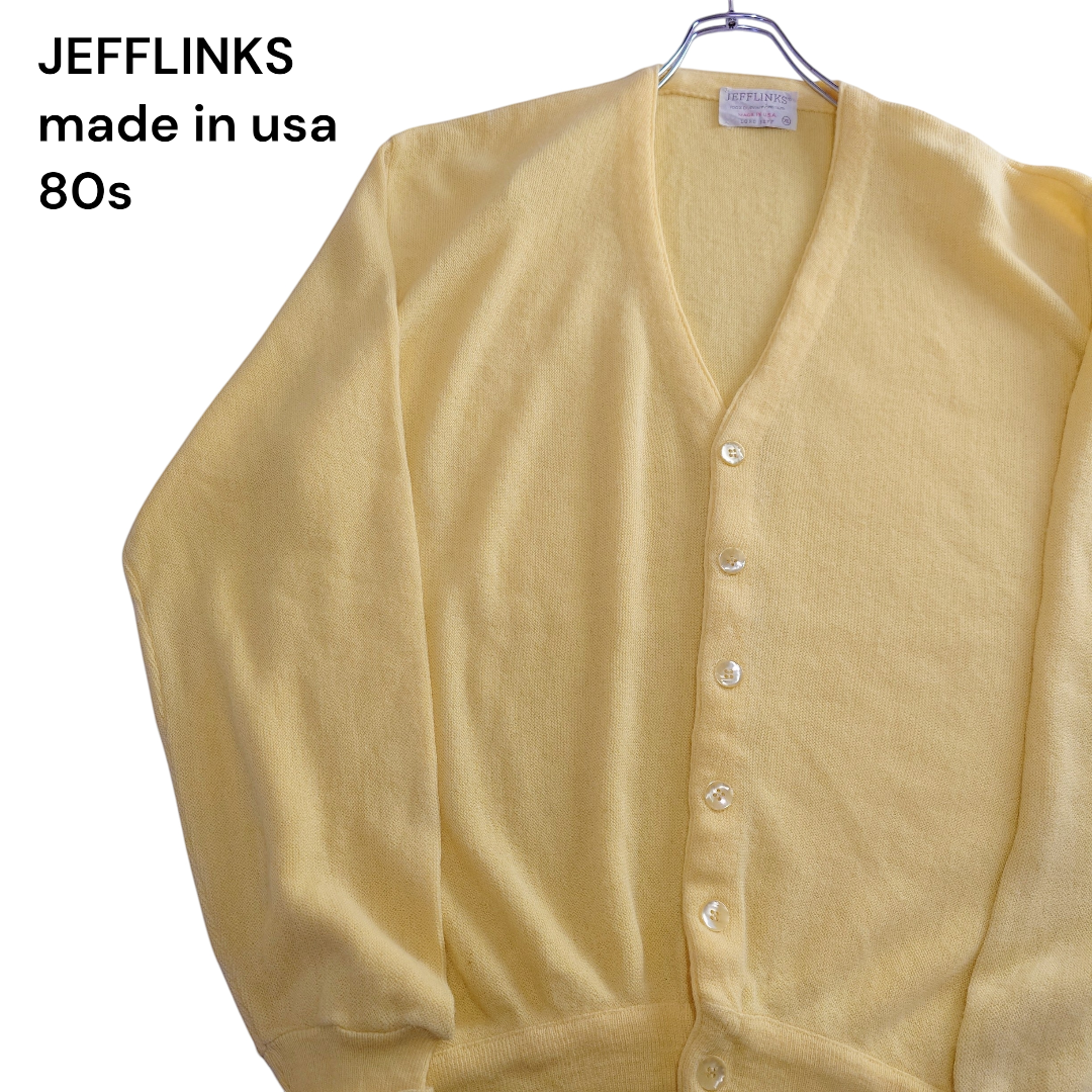 【80s】JEFFLINKS アクリルカーディガン ヴィンテージ usa製 アメリカ古着 Vintage イエロー 黄色