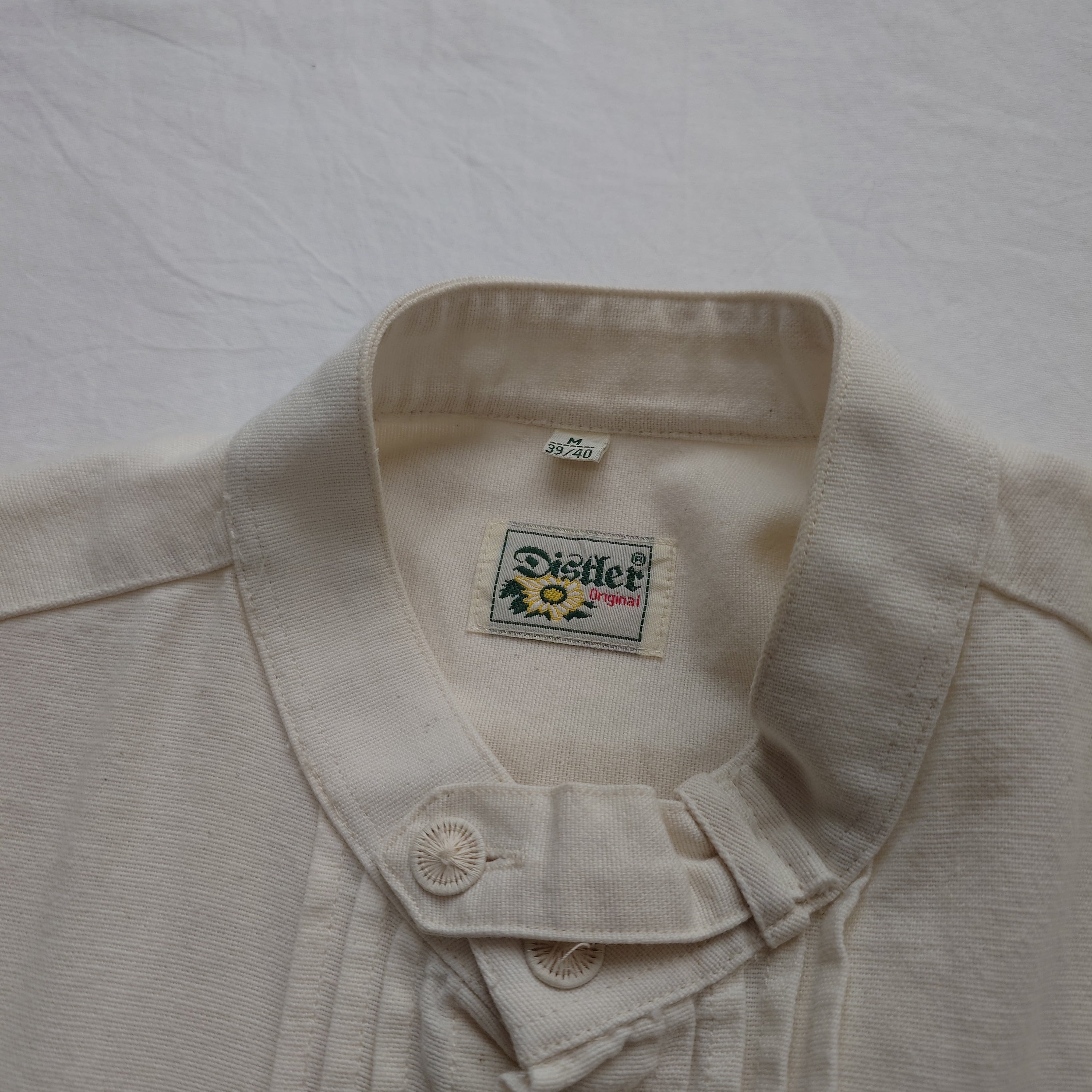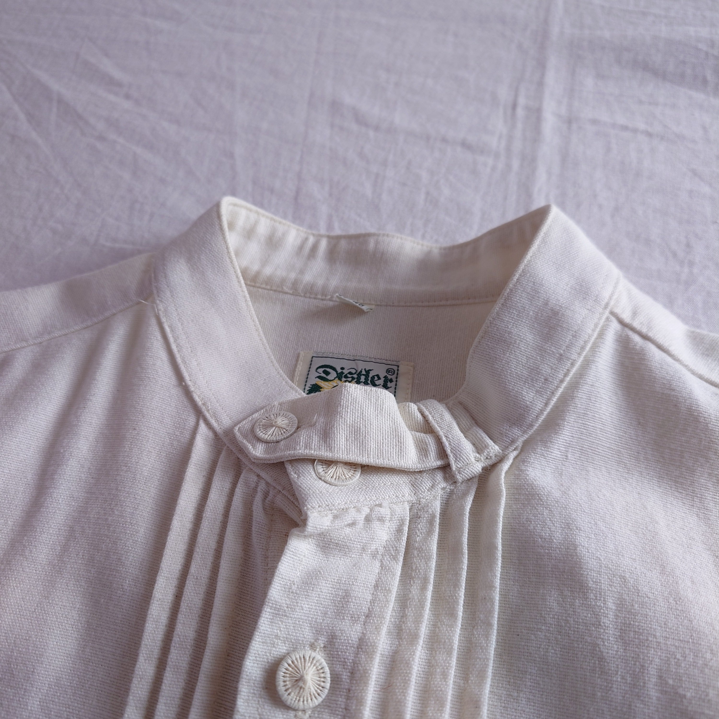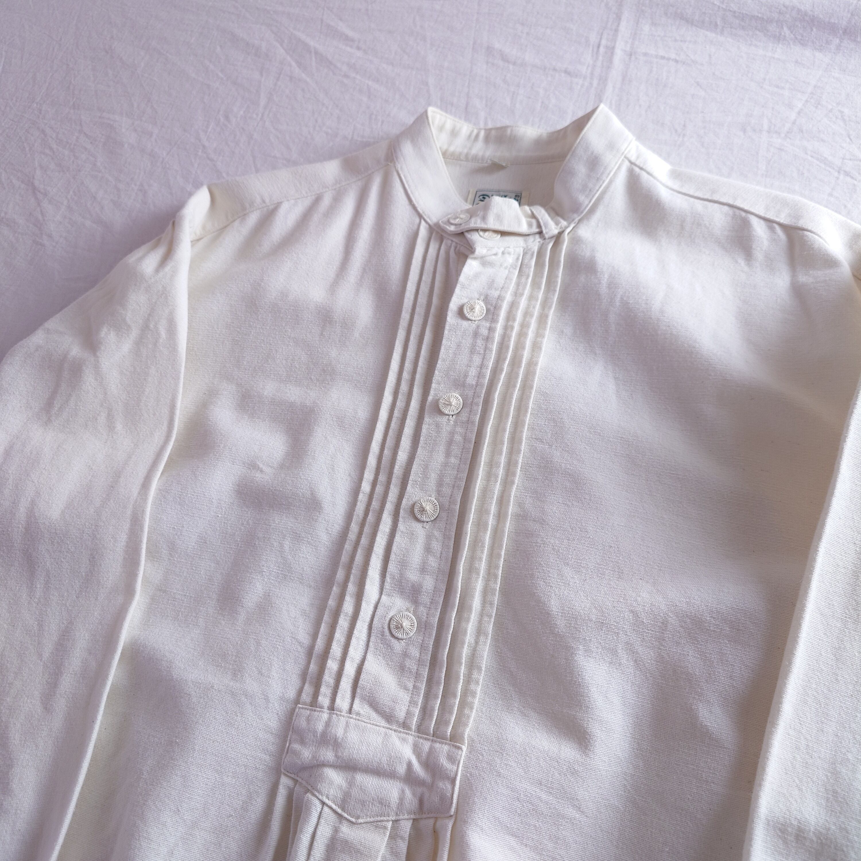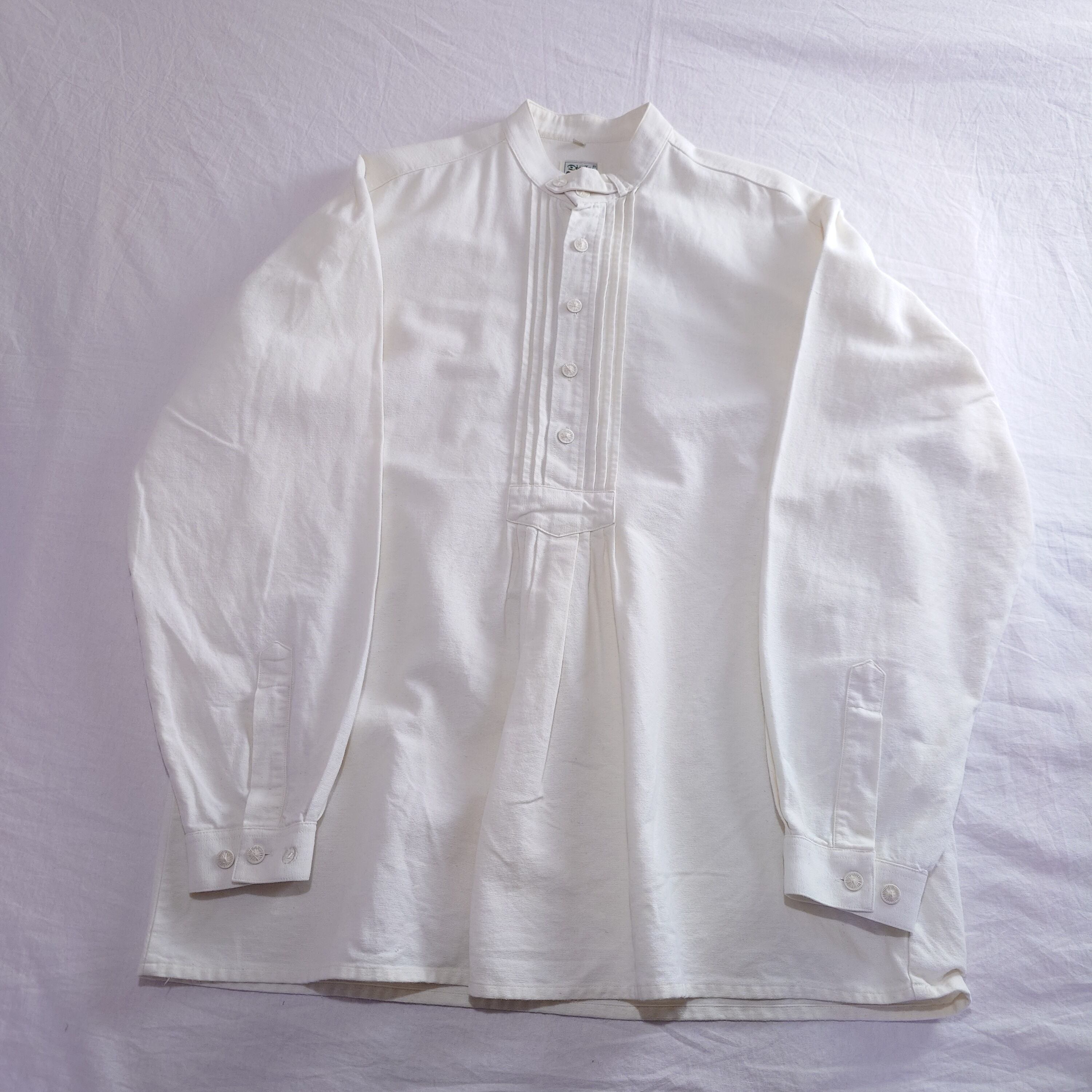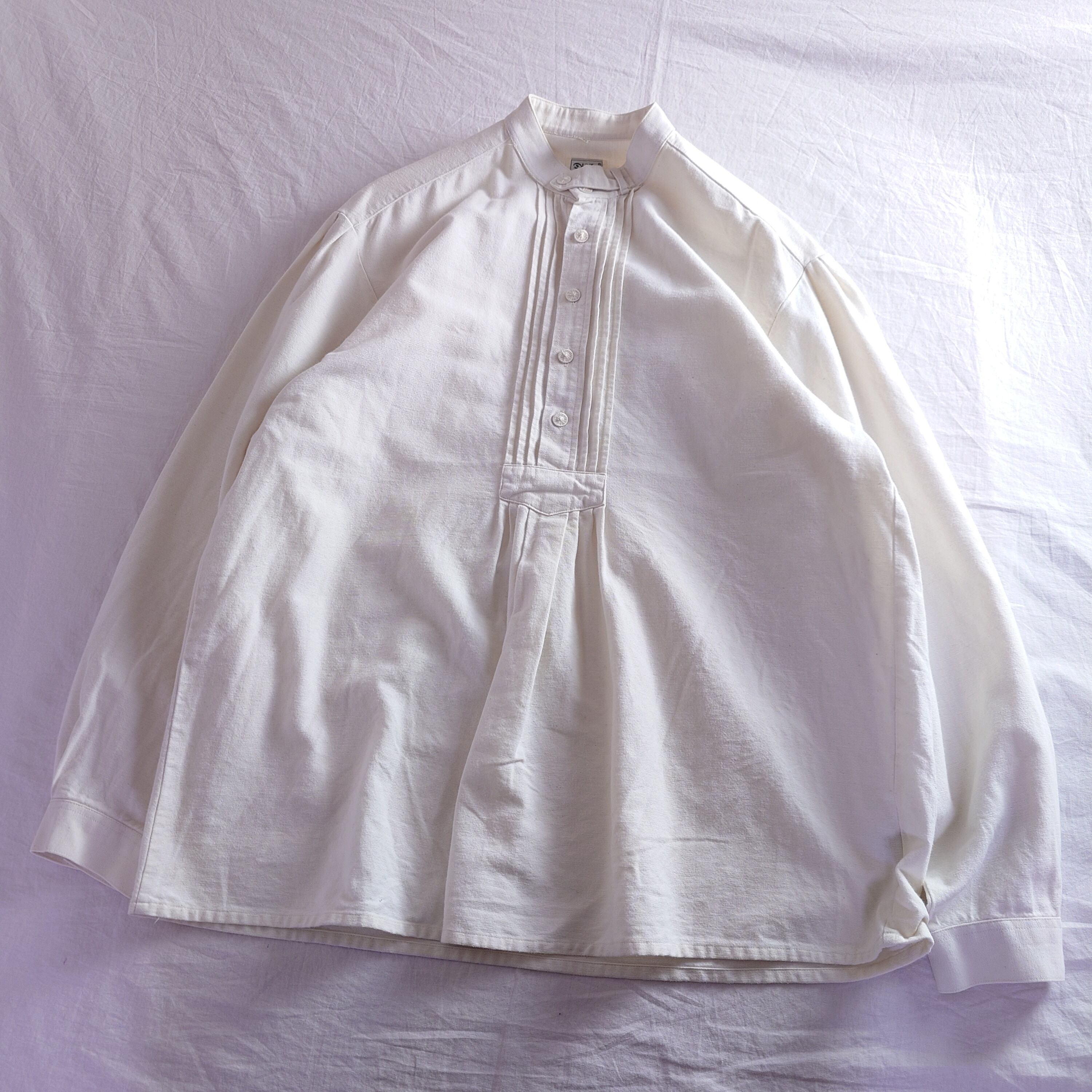 【プルオーバー】チロリアンシャツ 白 ホワイト 長袖シャツ ユーロ古着 ヨーロッパ古着 プリーツ レトロ
