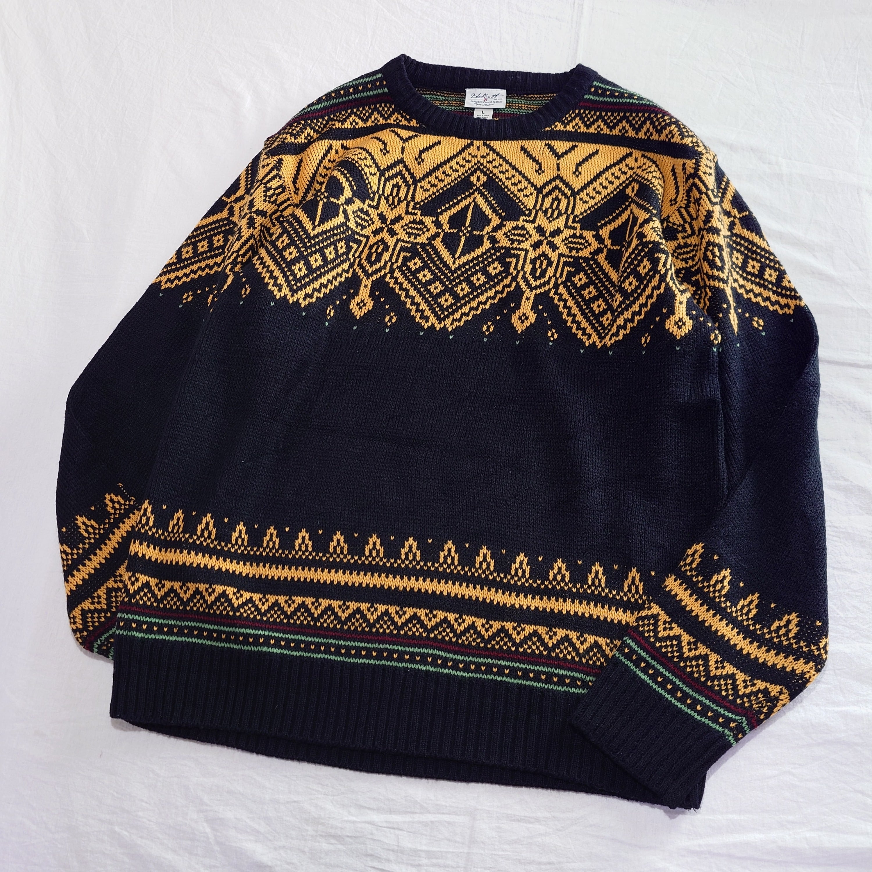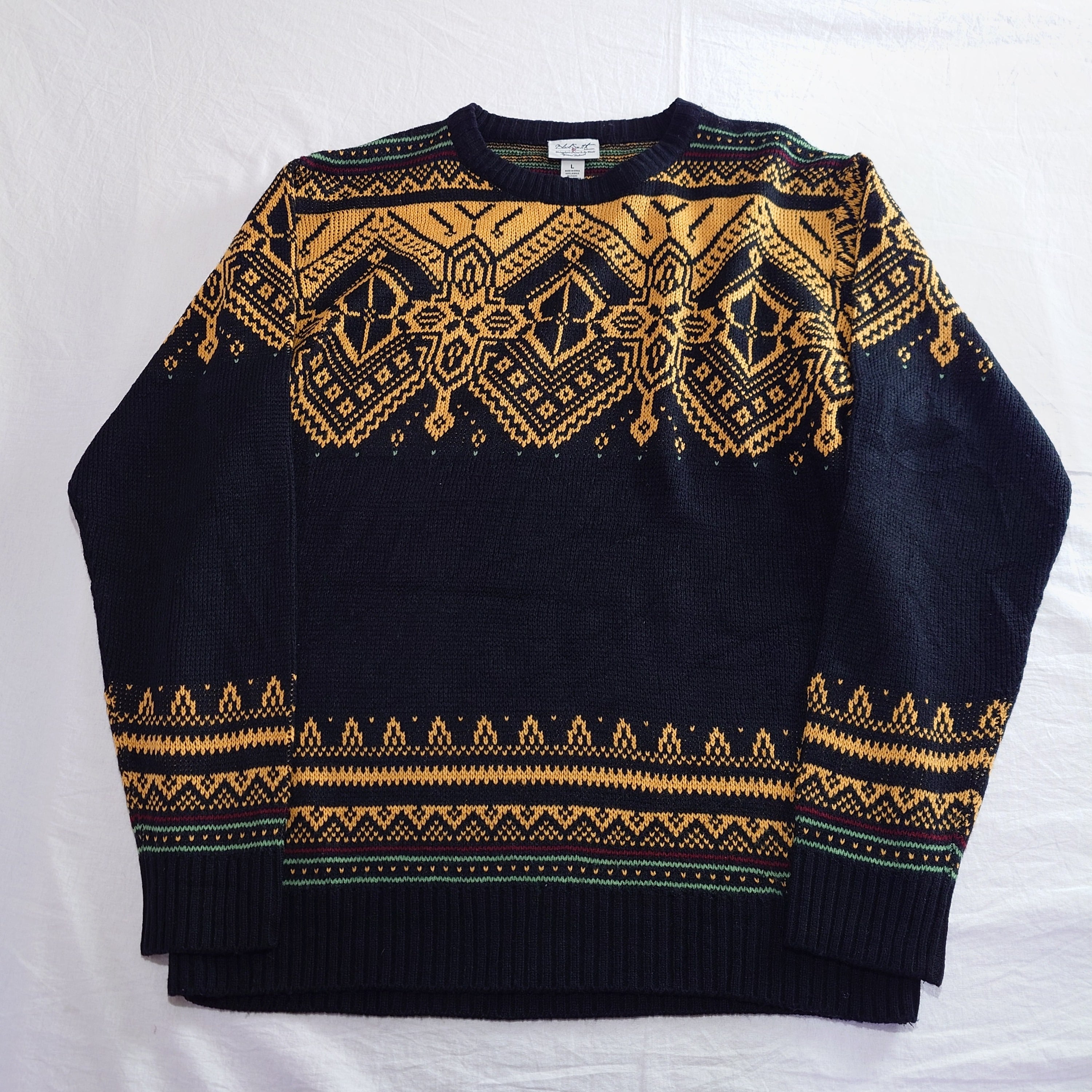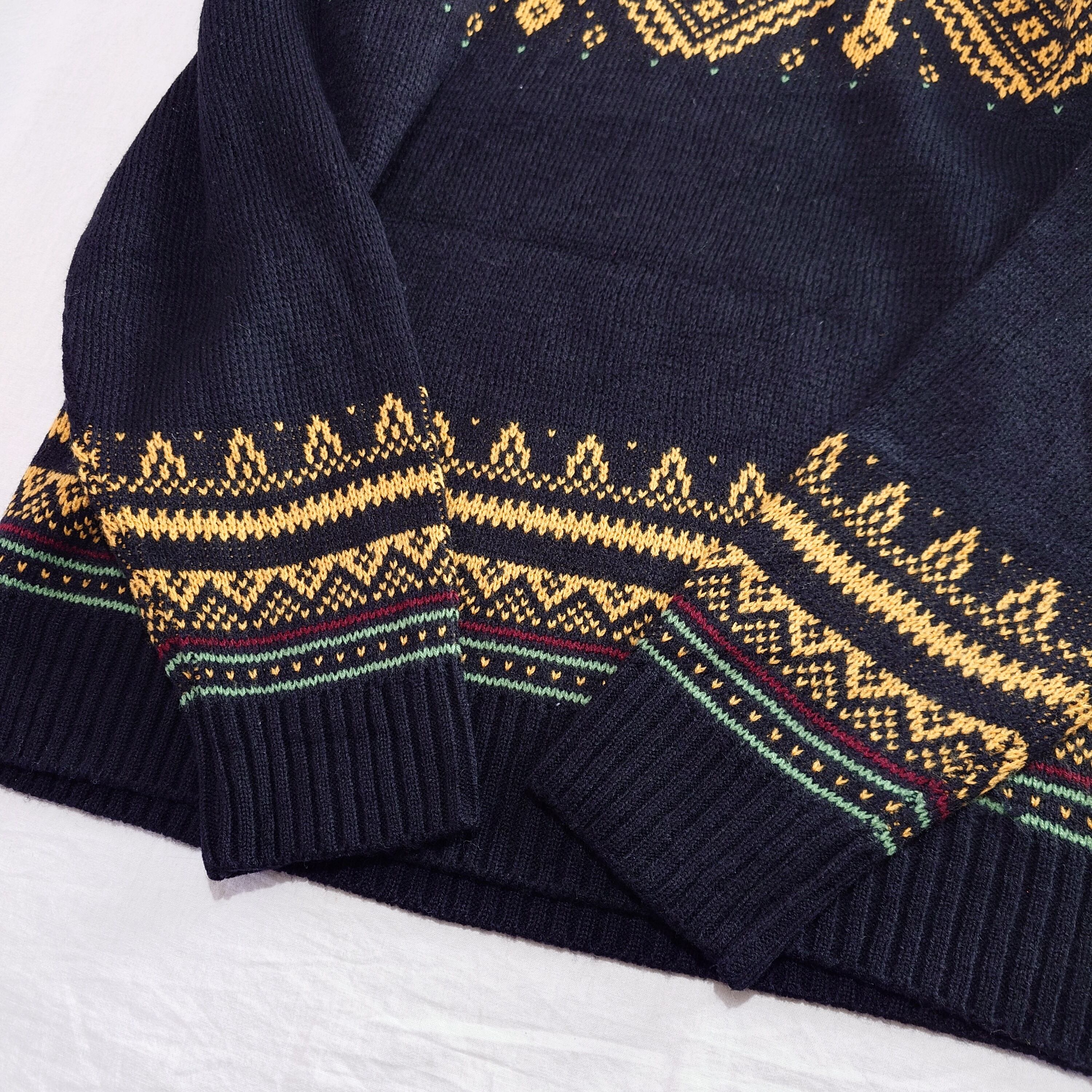 【00s】古着 ノルディックセーター アクリル ブラック 黒 イエロー 黄色 デザイン古着 ニット