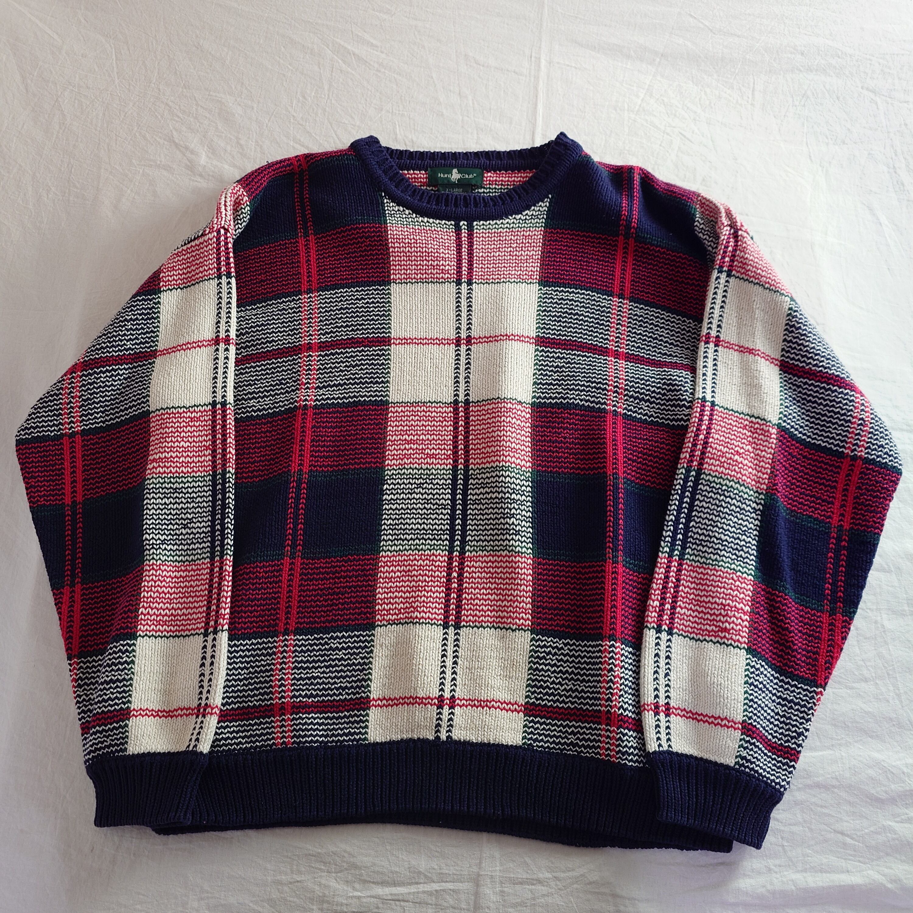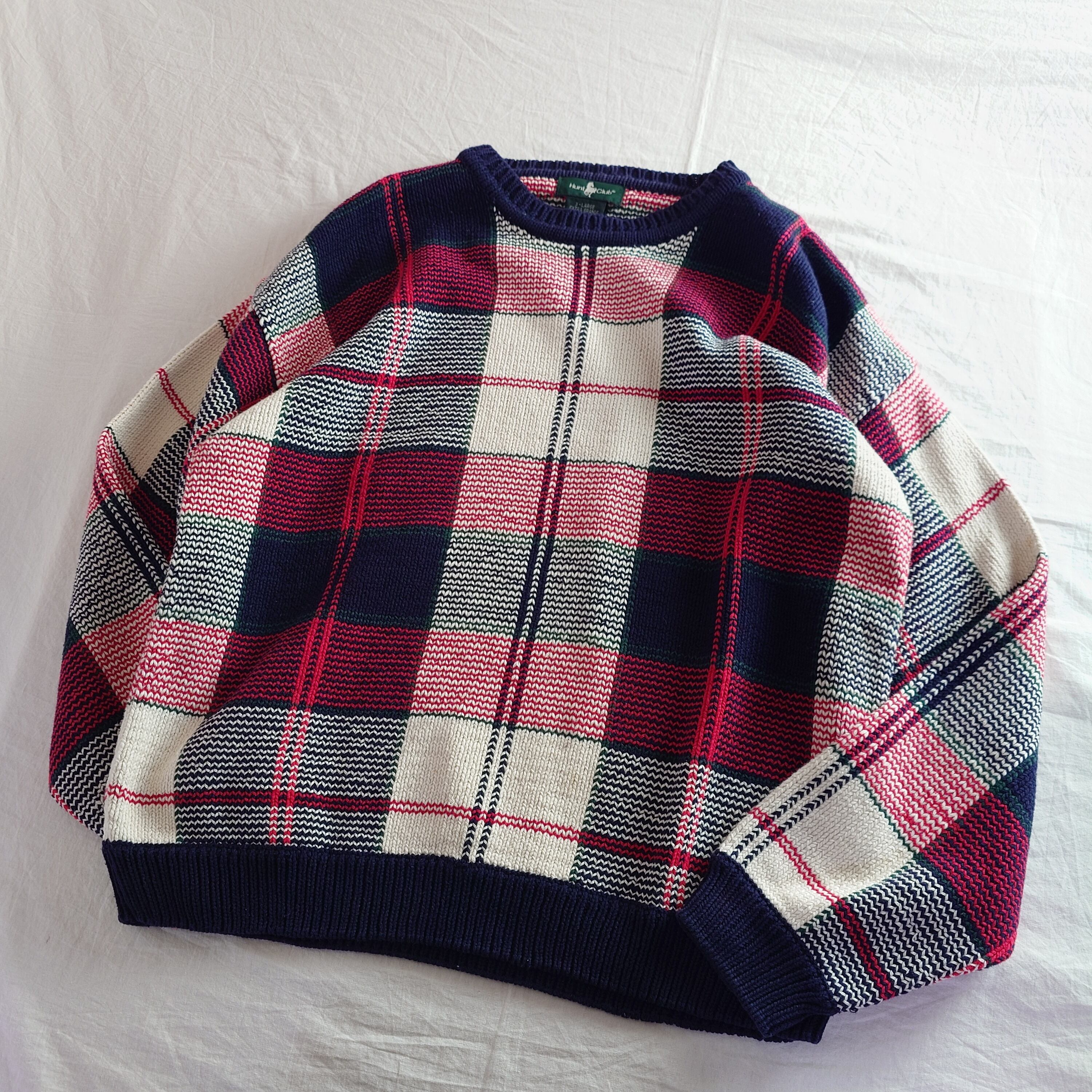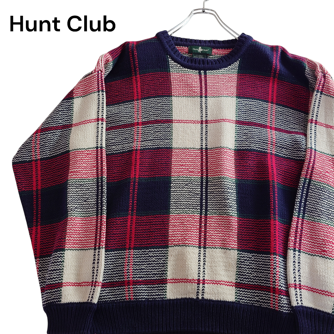 【80~90s】Hunt Club ハントクラブ タータンチェック コットンニット 80年代 90年代 レトロ デザイン古着