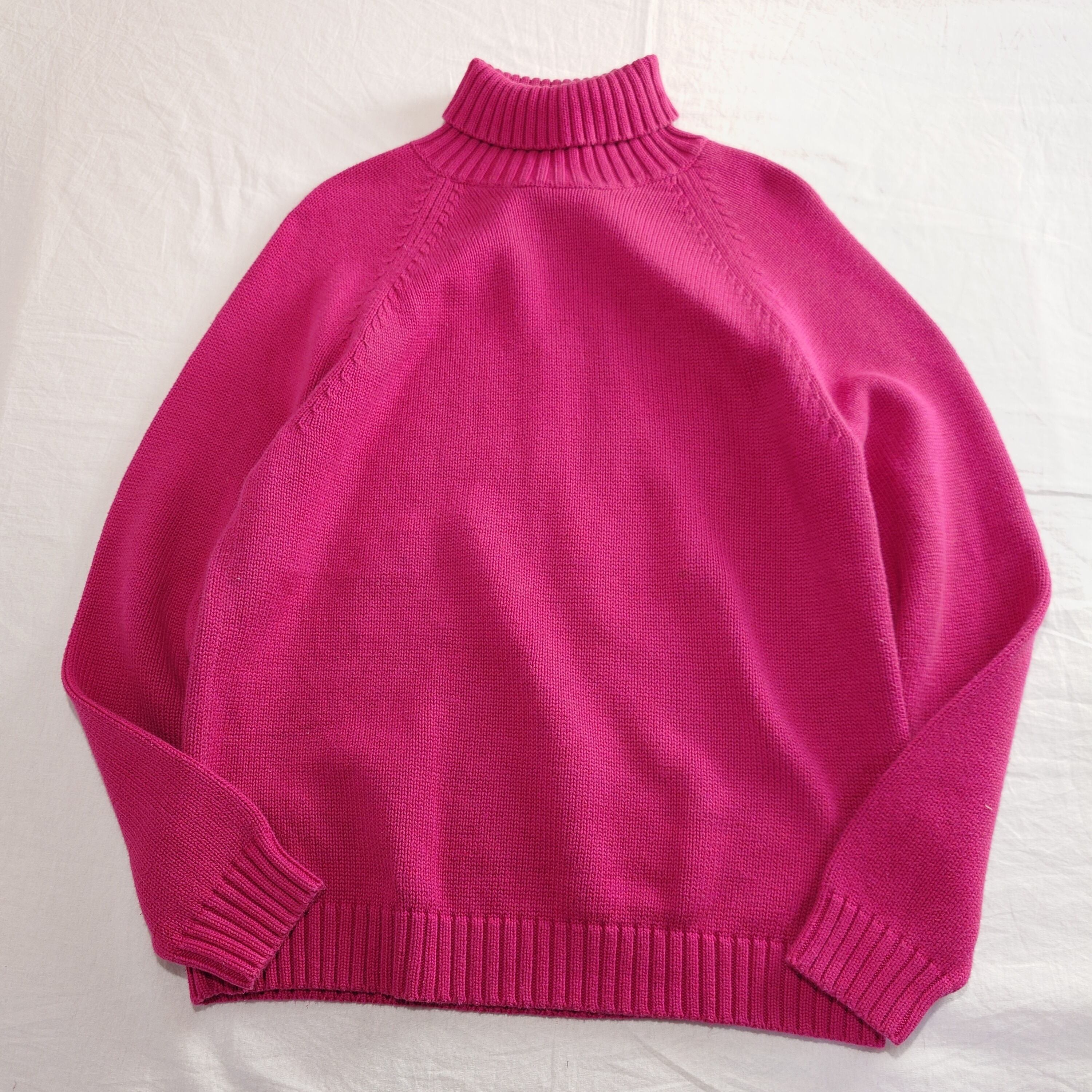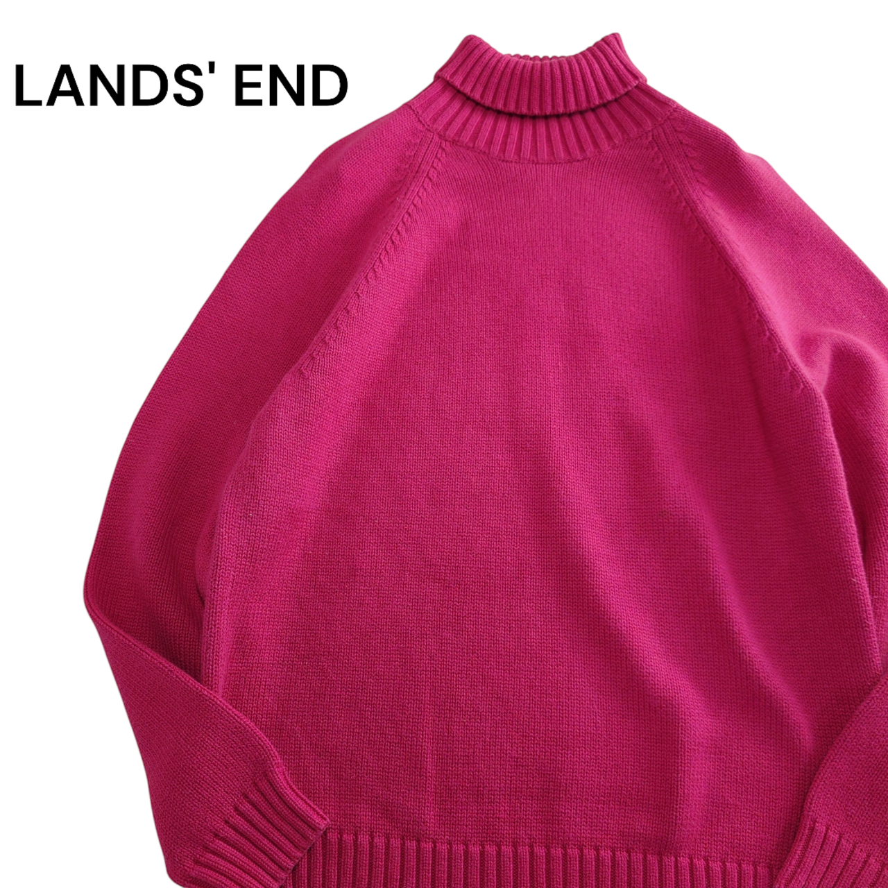 【90~00s】LANDS' END ランズエンド コットンニット タートルネック ラグランスリーブ ピンク系 レディース古着