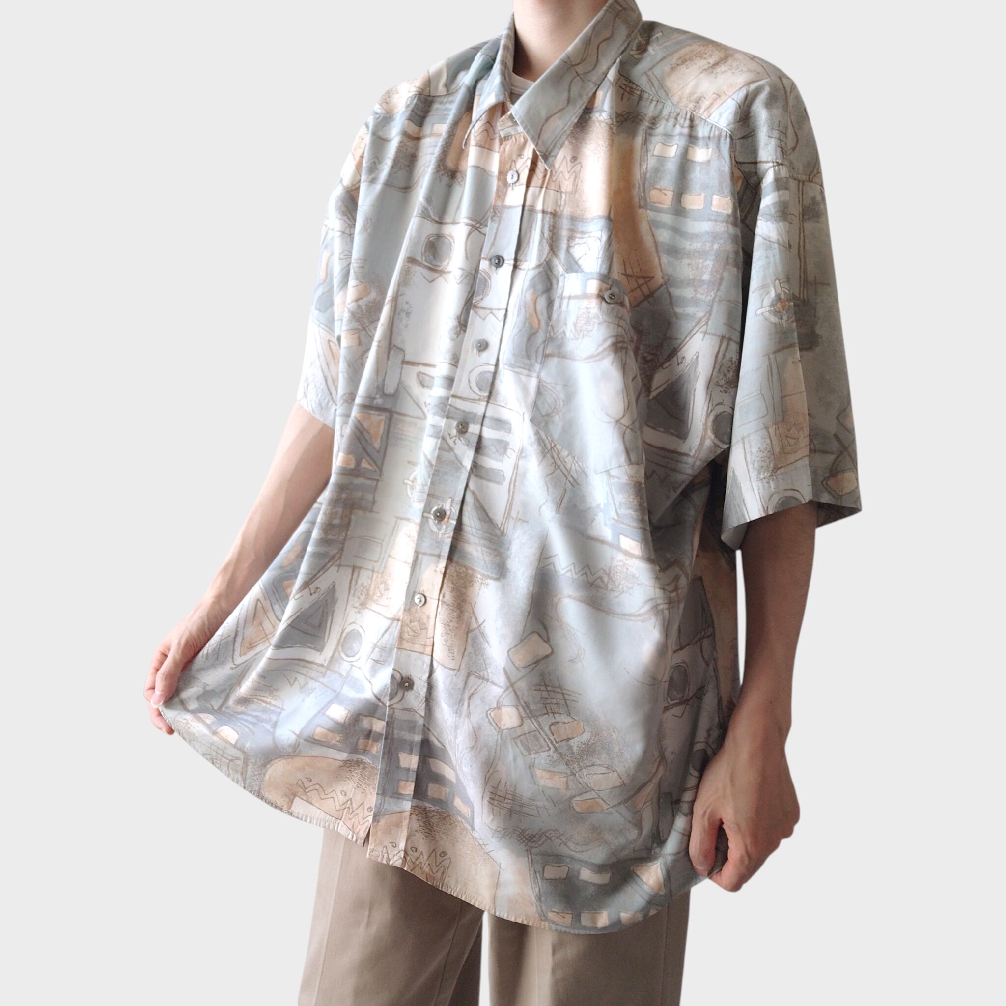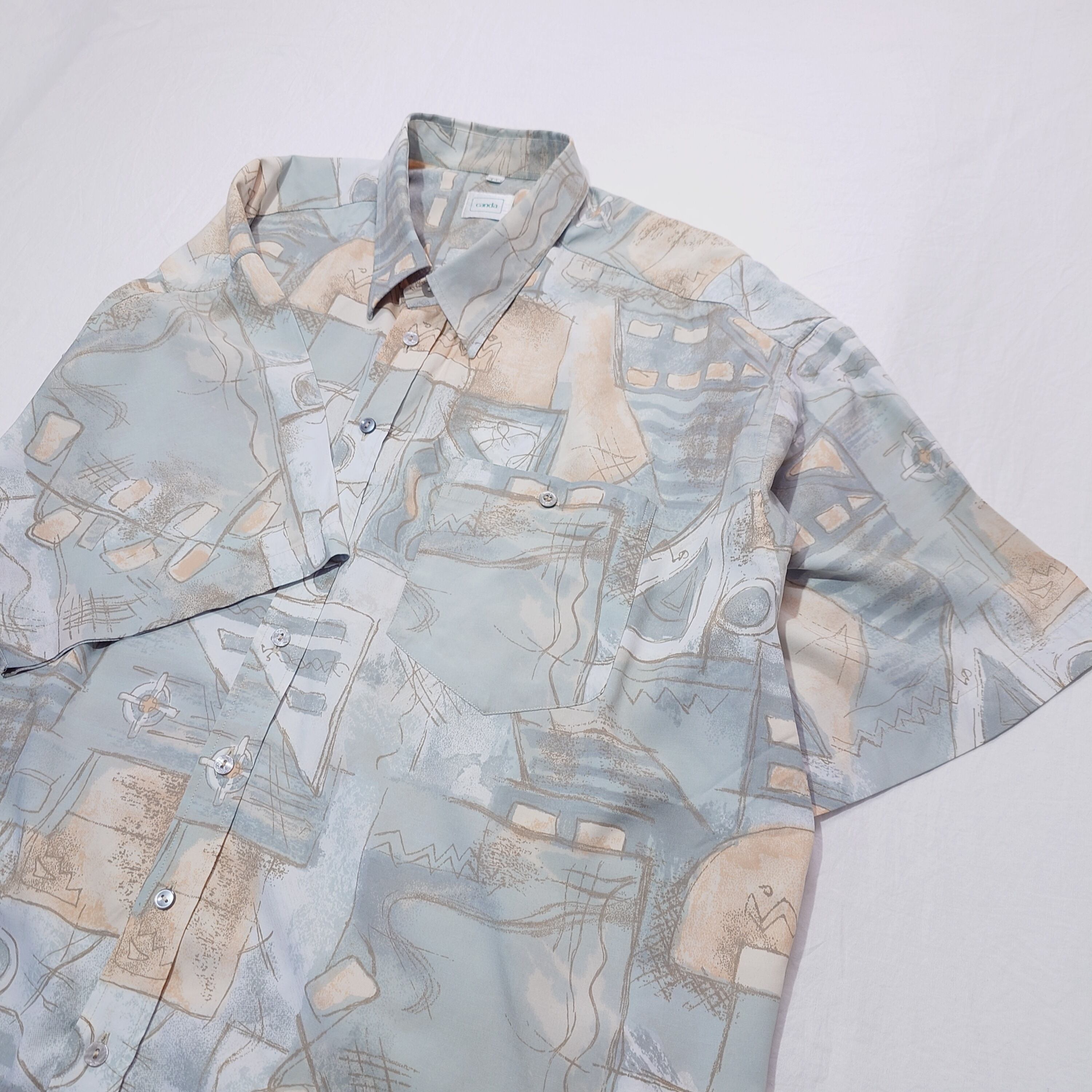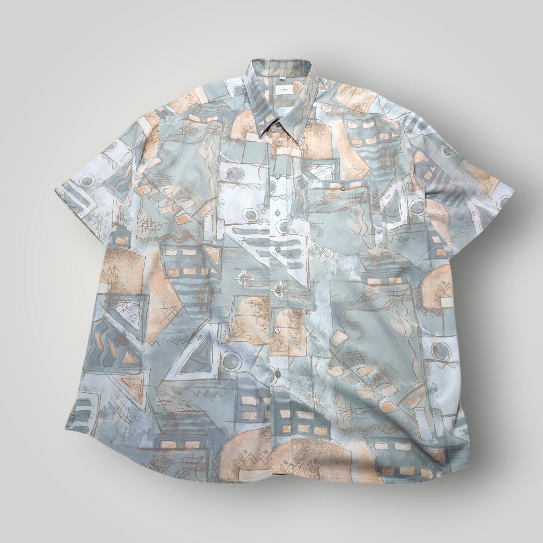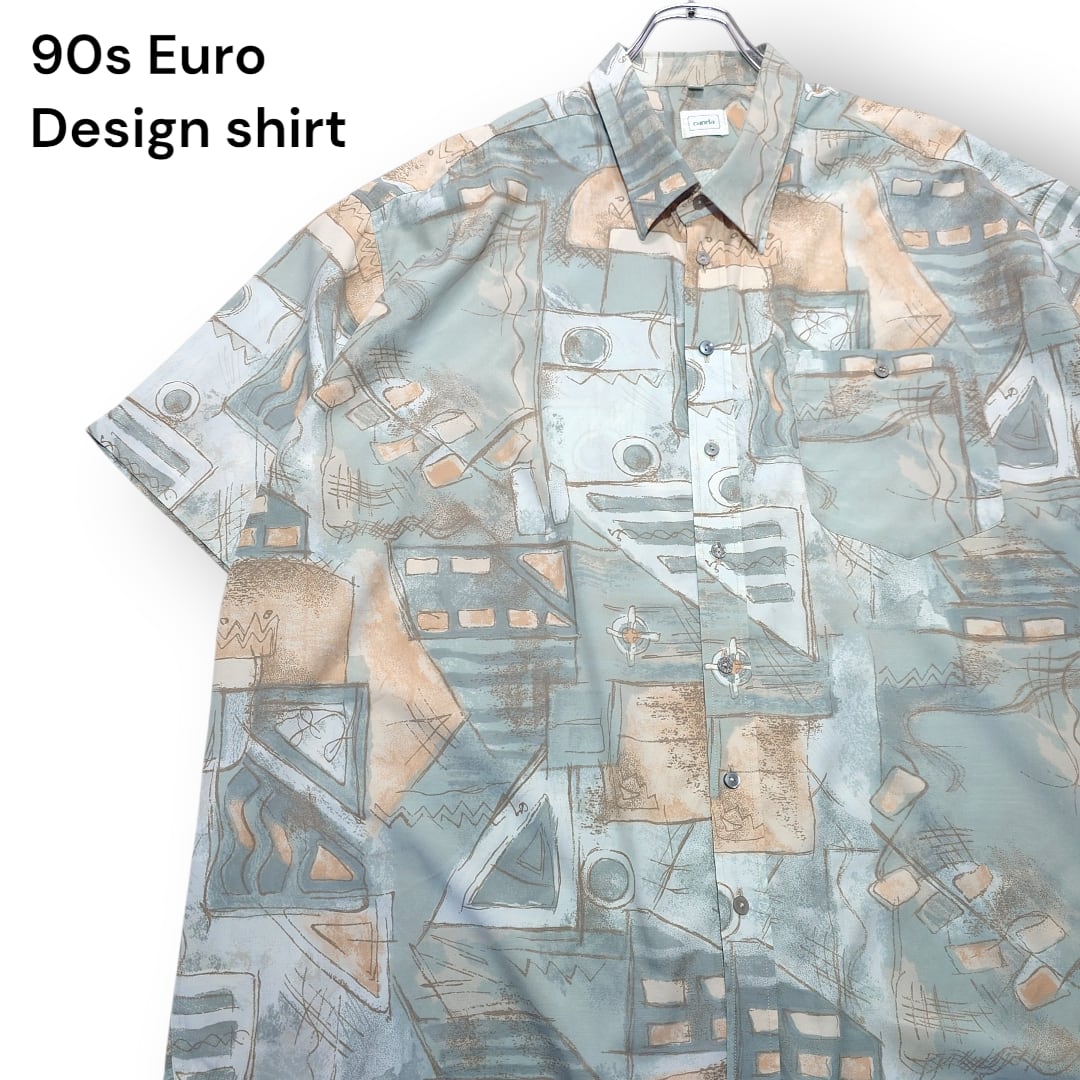 【90s】C&A CANDA ユーロ総柄シャツ ヨーロッパ古着 ユーロヴィンテージ アート ビスコース ポリエステル レトロ ミントグリーン