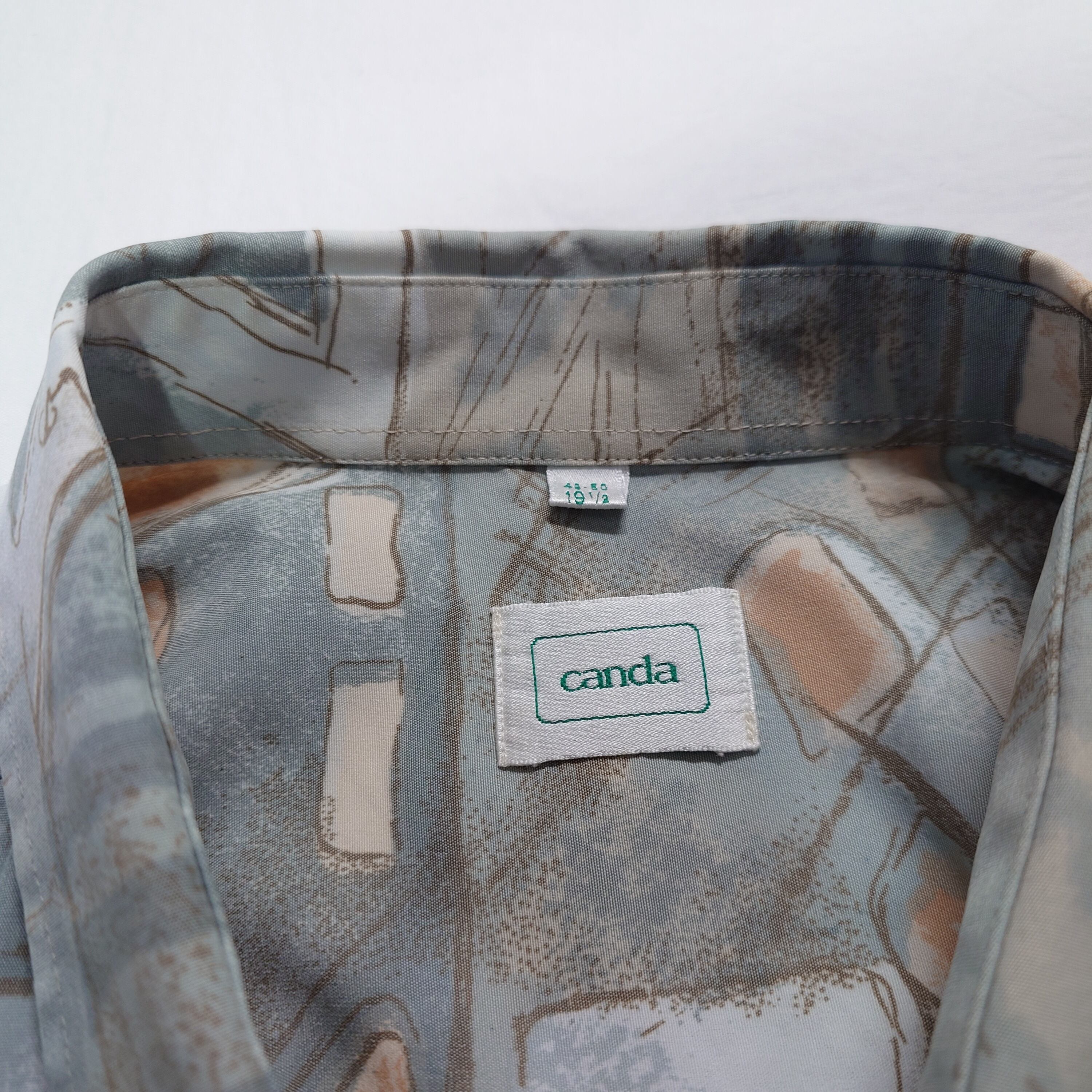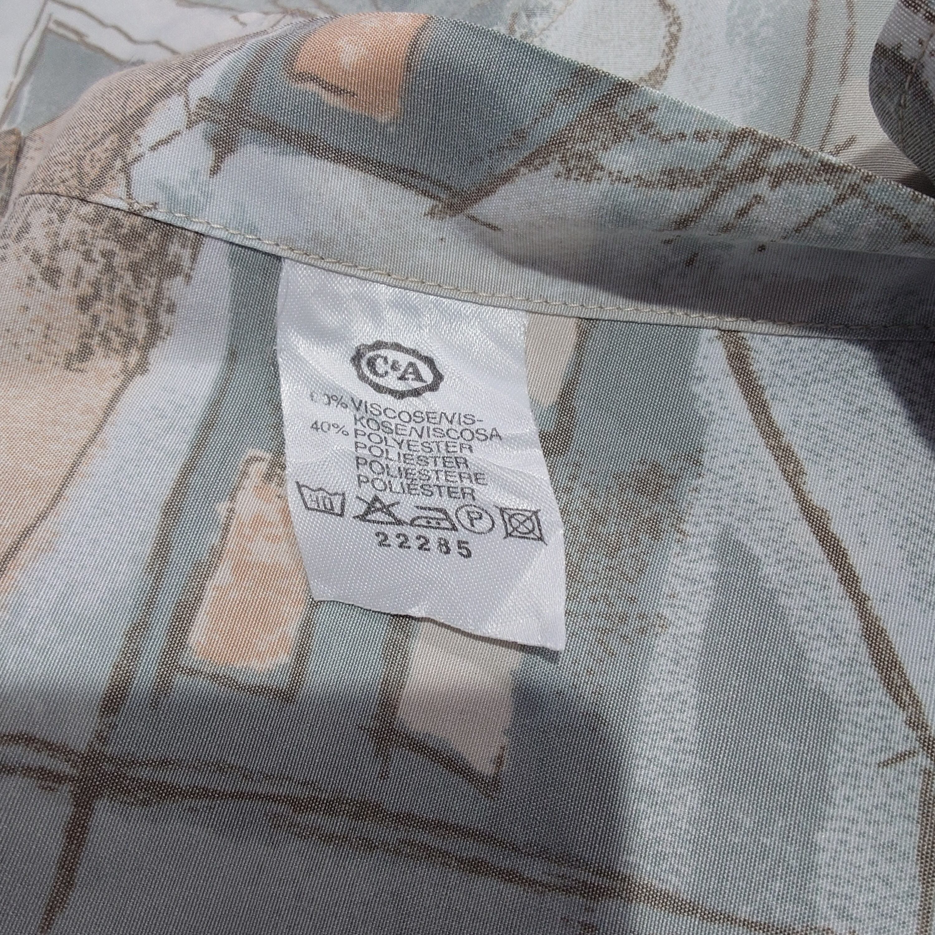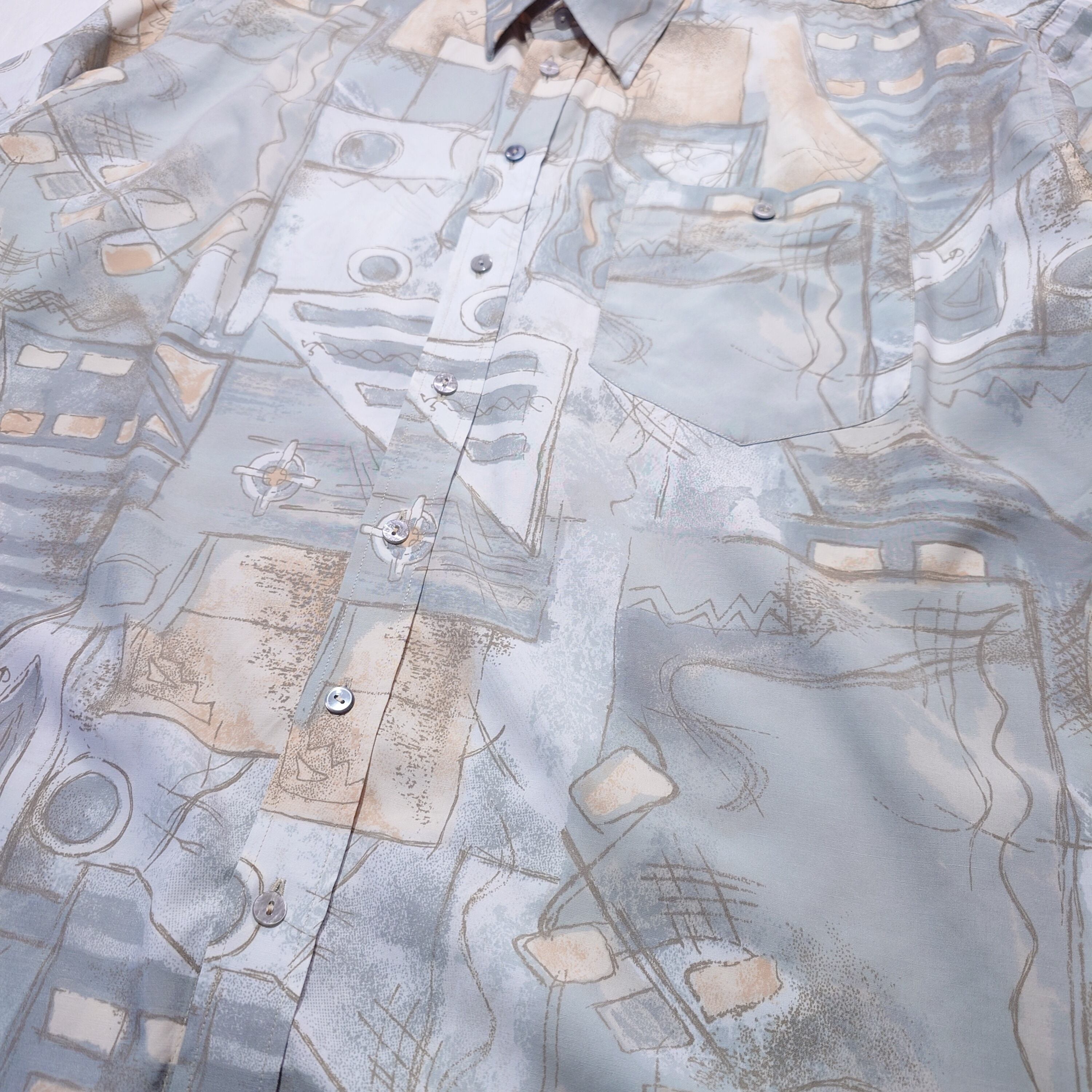 【90s】C&A CANDA ユーロ総柄シャツ ヨーロッパ古着 ユーロヴィンテージ アート ビスコース ポリエステル レトロ ミントグリーン