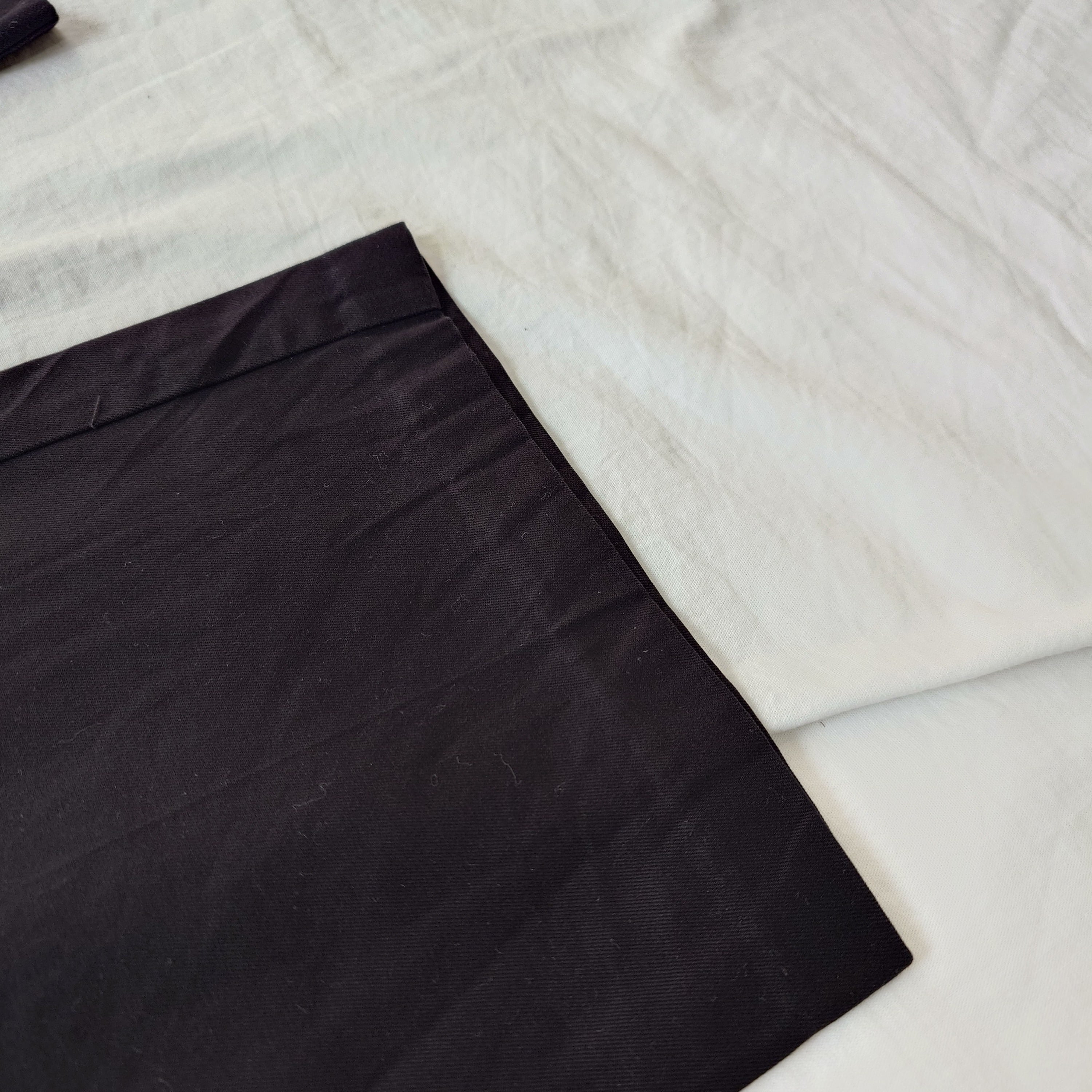There is natural fading typical of cotton fabric, as well as some staining around the zipper area.