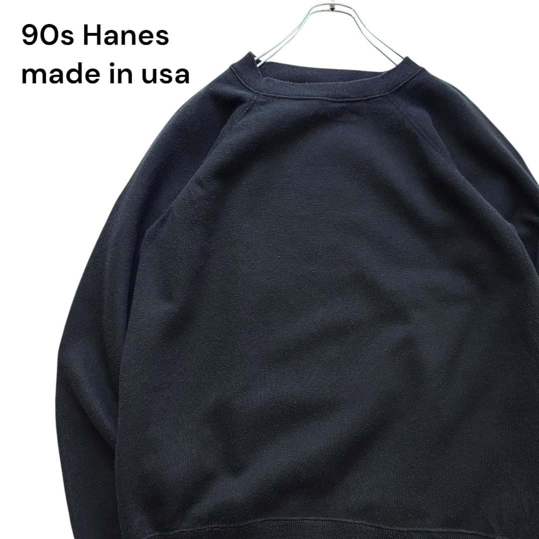 【90年代】Hanes Her Way ヘインズ Plain sweatshirt 無地スウェット ブラック 黒 ラグランスリーブ USA製 アメリカ古着 90s