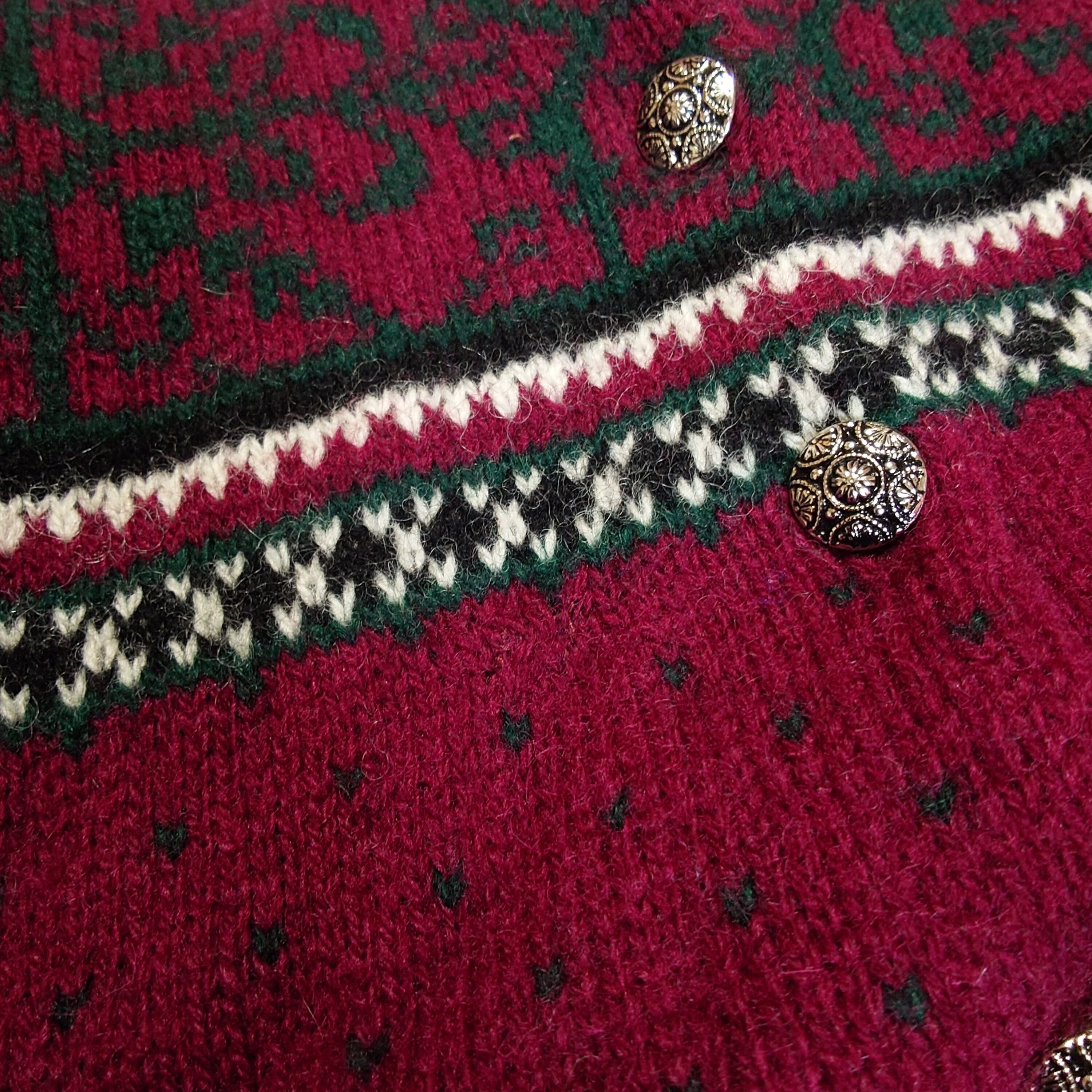 【90s】L.L.Bean エルエルビーン チロルニット カーディガン セーター ボルドー メタルボタン 古着 ヴィンテージ
