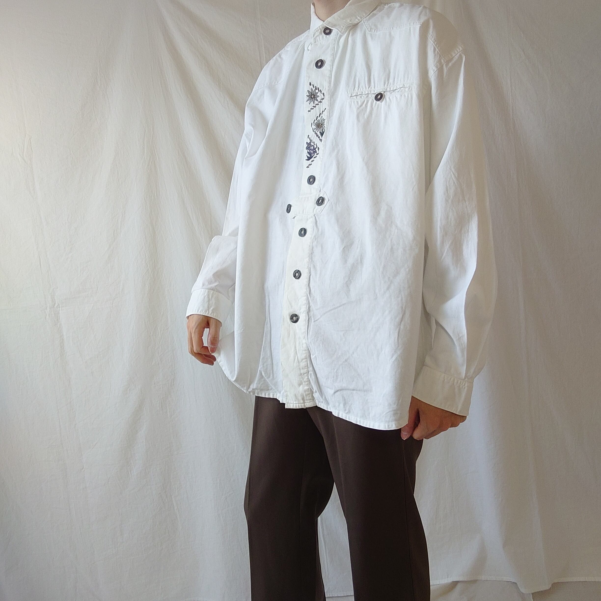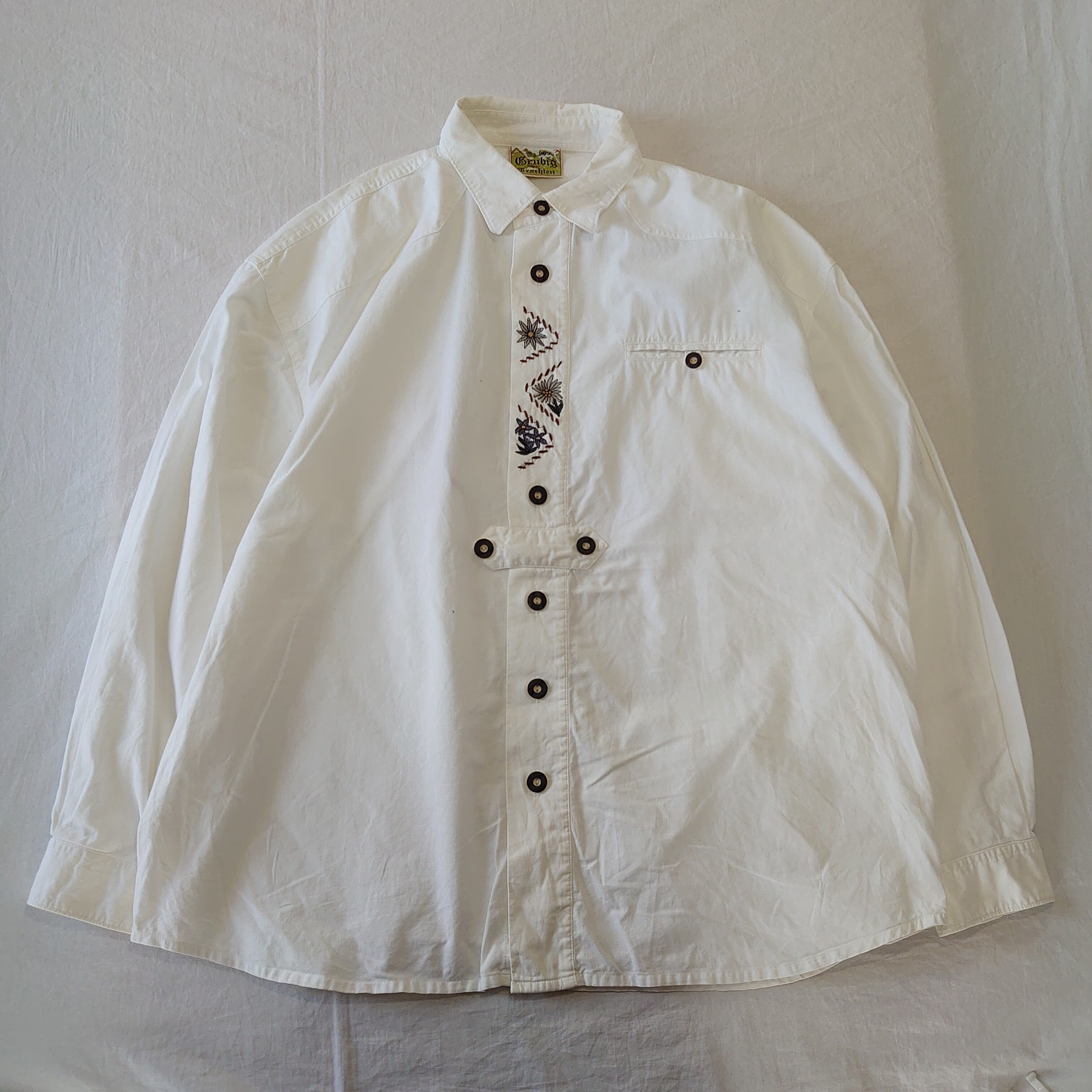 【雰囲気抜群】Tyrolean shirt チロリアンシャツ 刺繍入り ホワイト