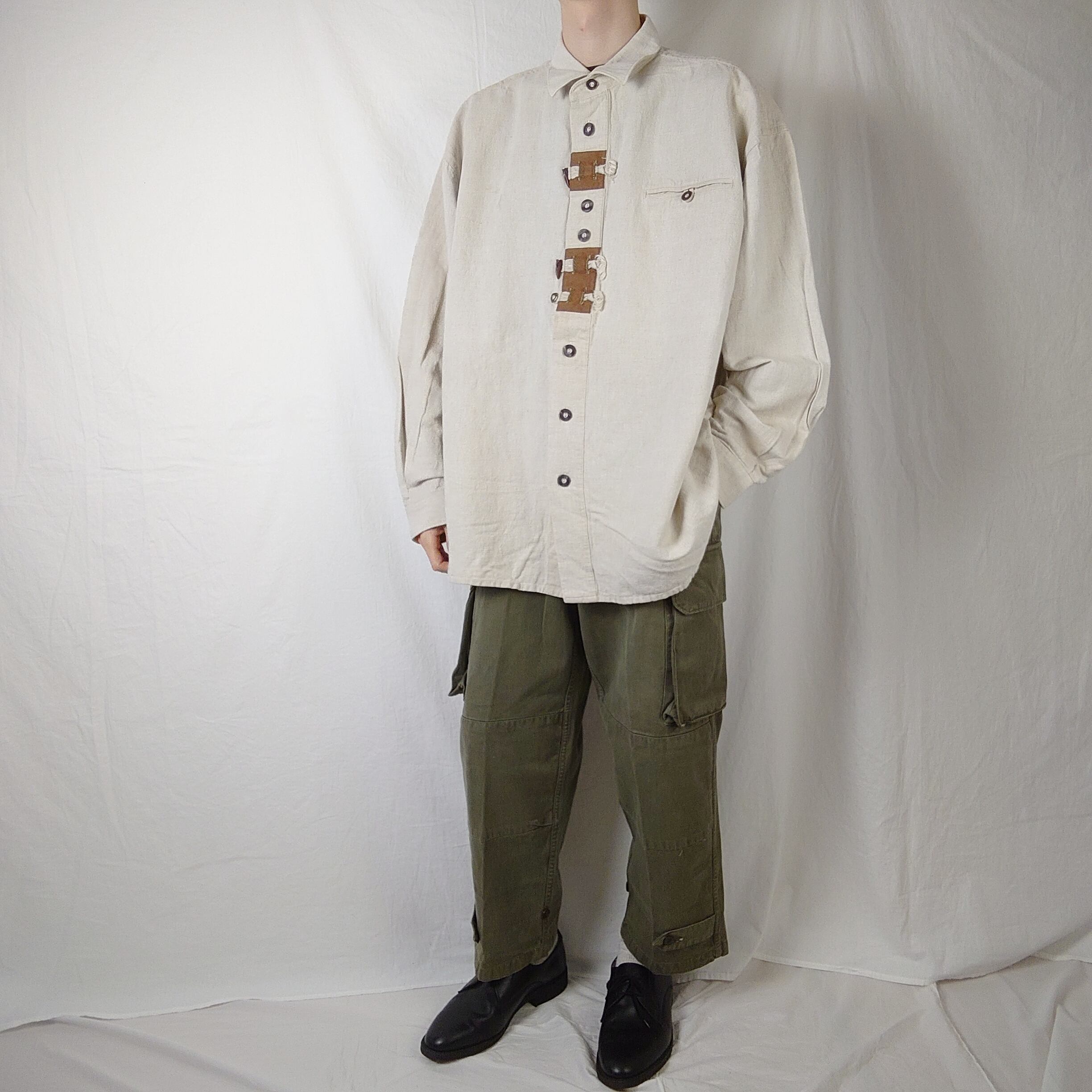 【コットンリネン】Tyrolean shirt チロリアンシャツ 刺繍 ベージュ