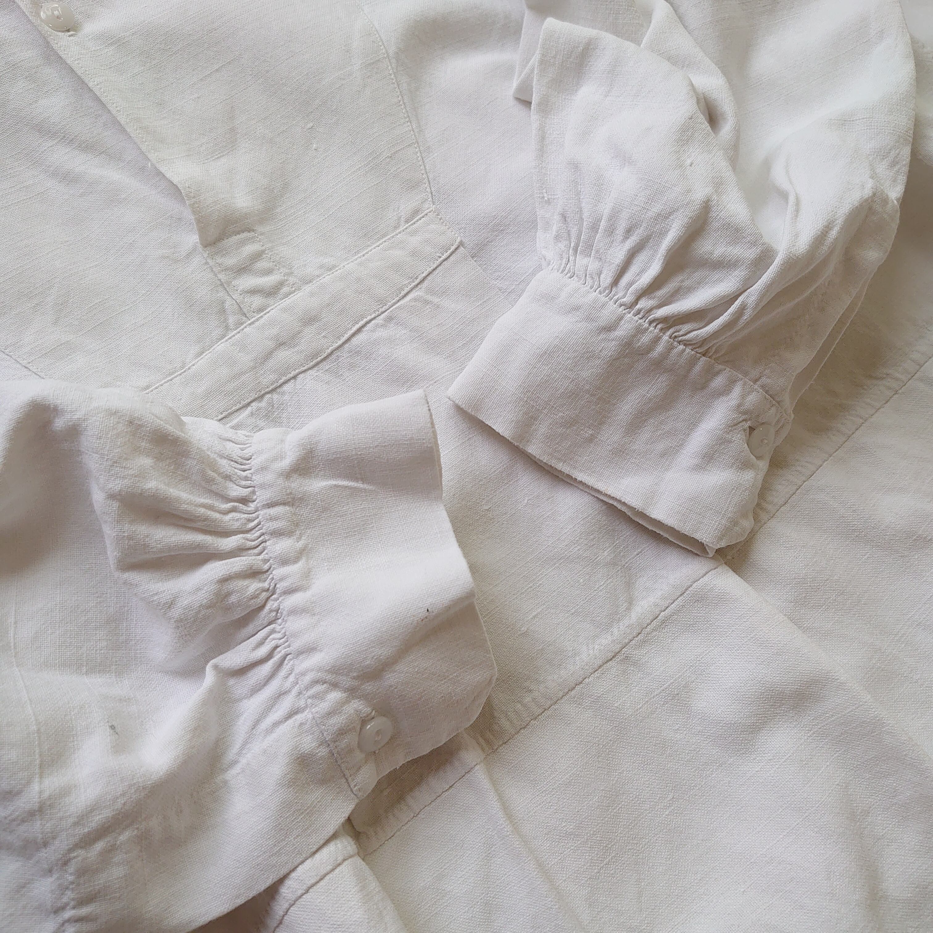 上質な古いリネン生地や非常に細かいギャザーなどフレンチアンティークらしい魅力的な1着。