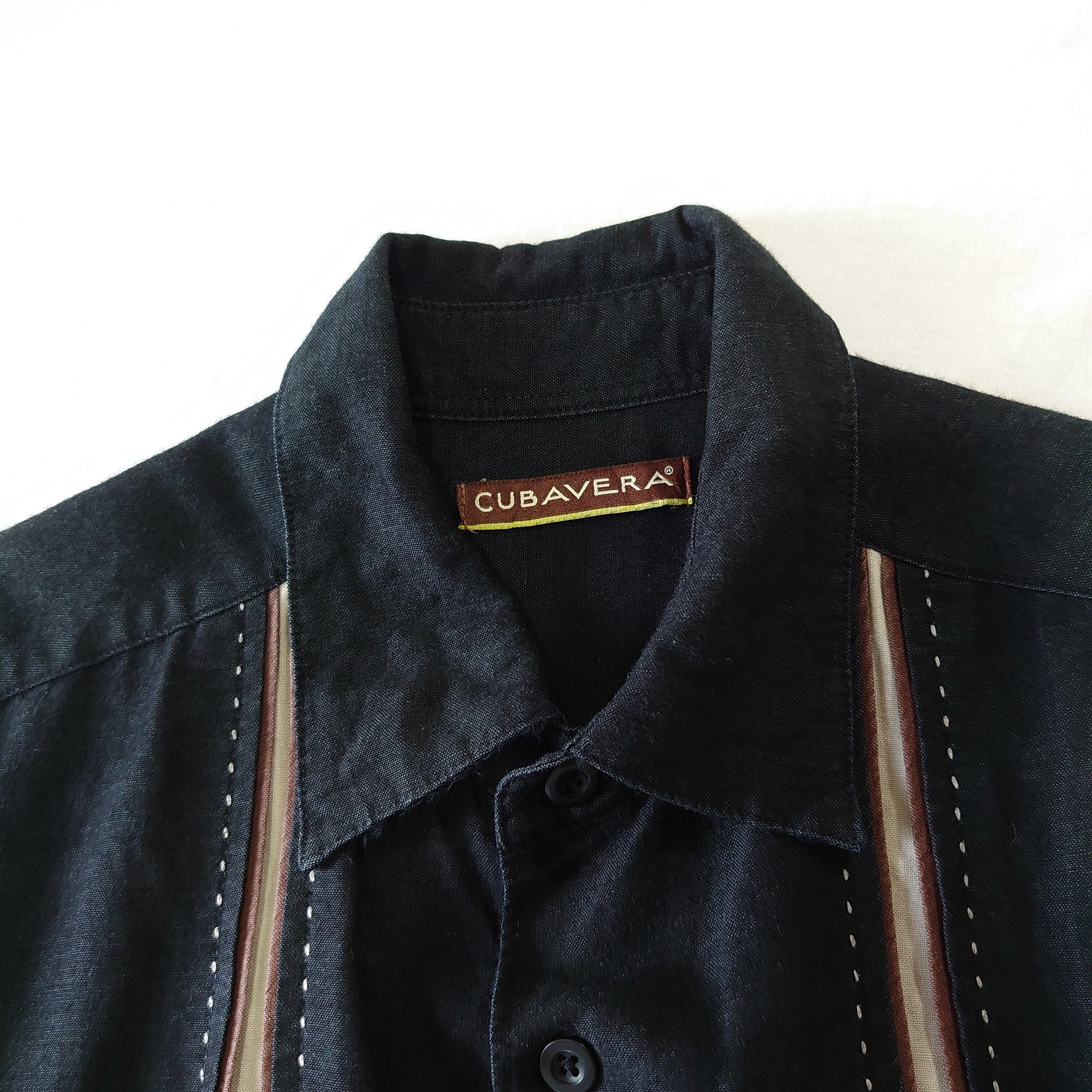 【ラミー混】Cubavera ラインシャツ ブラック キューバシャツ レーヨン