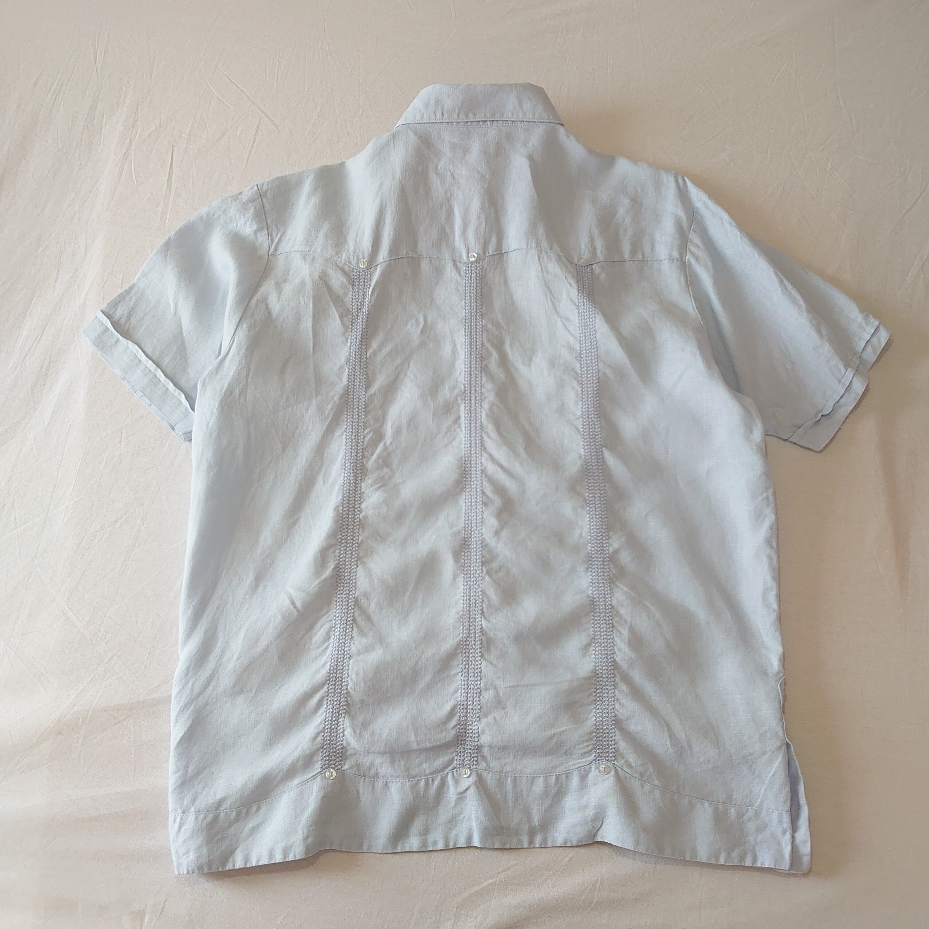 刺繍のライン、4つポケットなどキューバシャツ