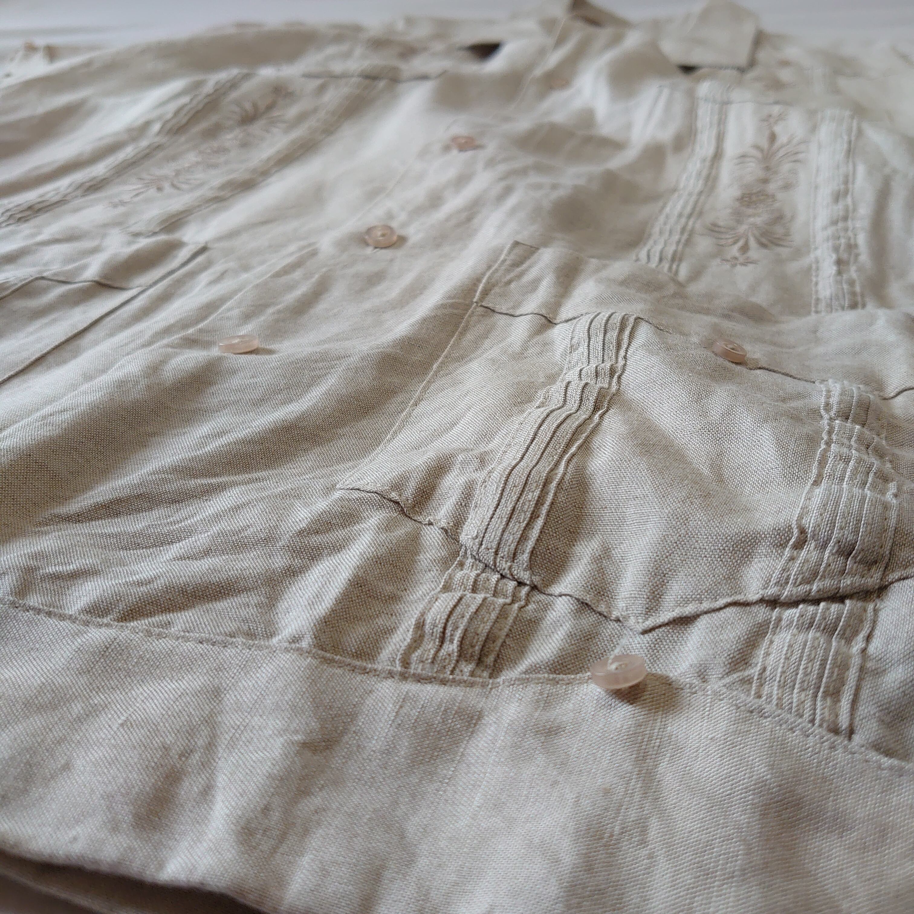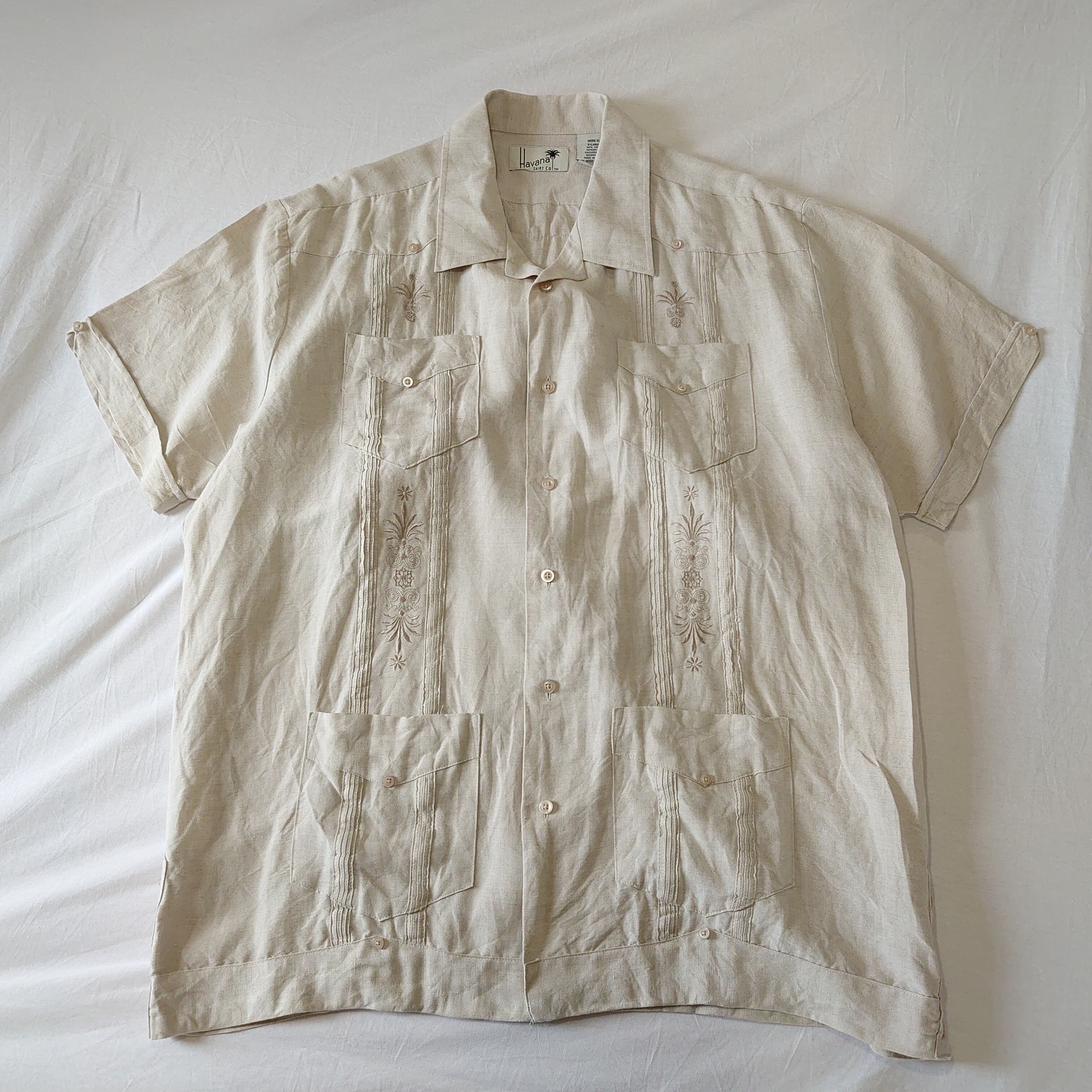 【リネン混】Havana キューバシャツ ベージュ 開襟 極上 リネンシャツ