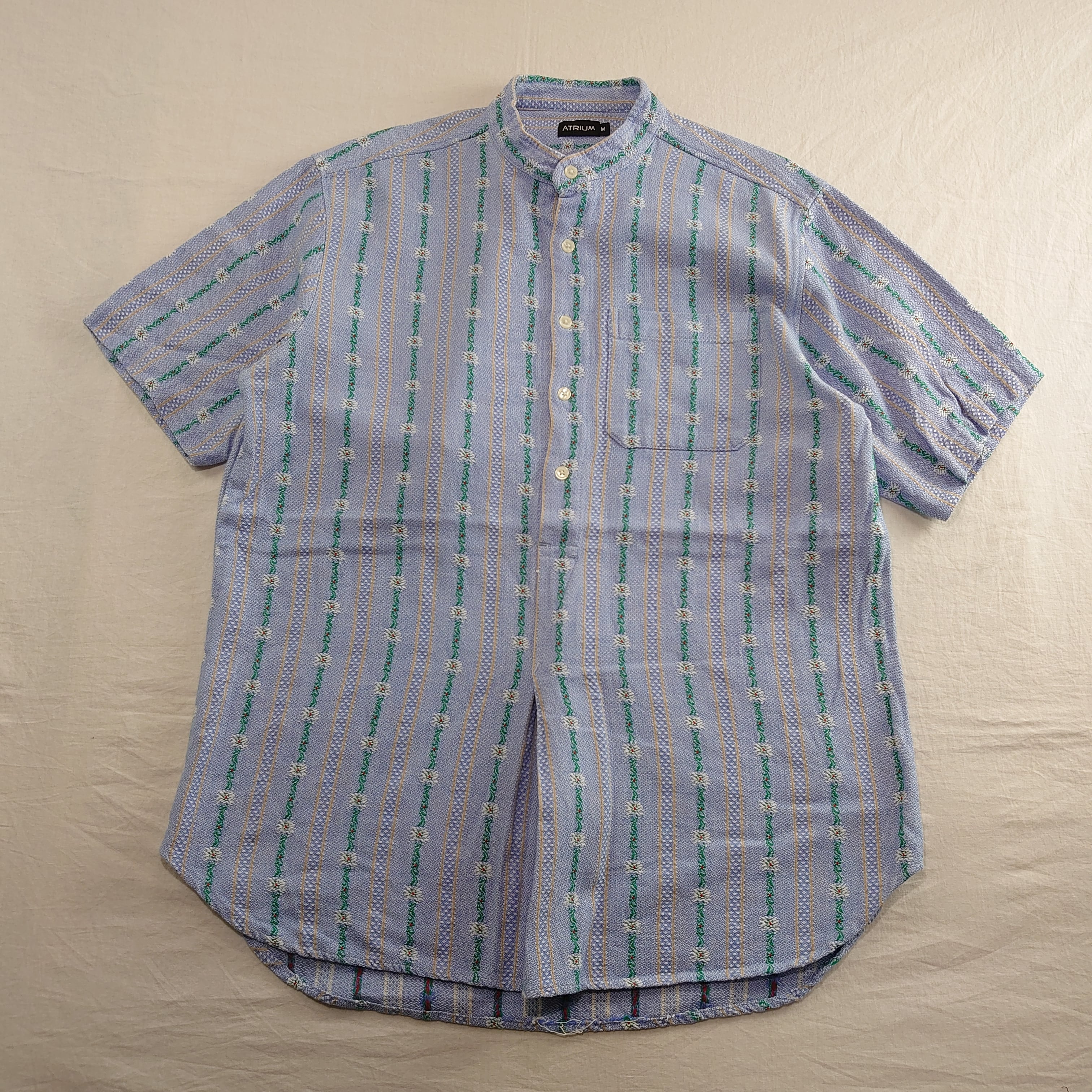 【エーデルワイス柄】プルオーバー半袖シャツ ストライプ 花柄 柄シャツ 総柄