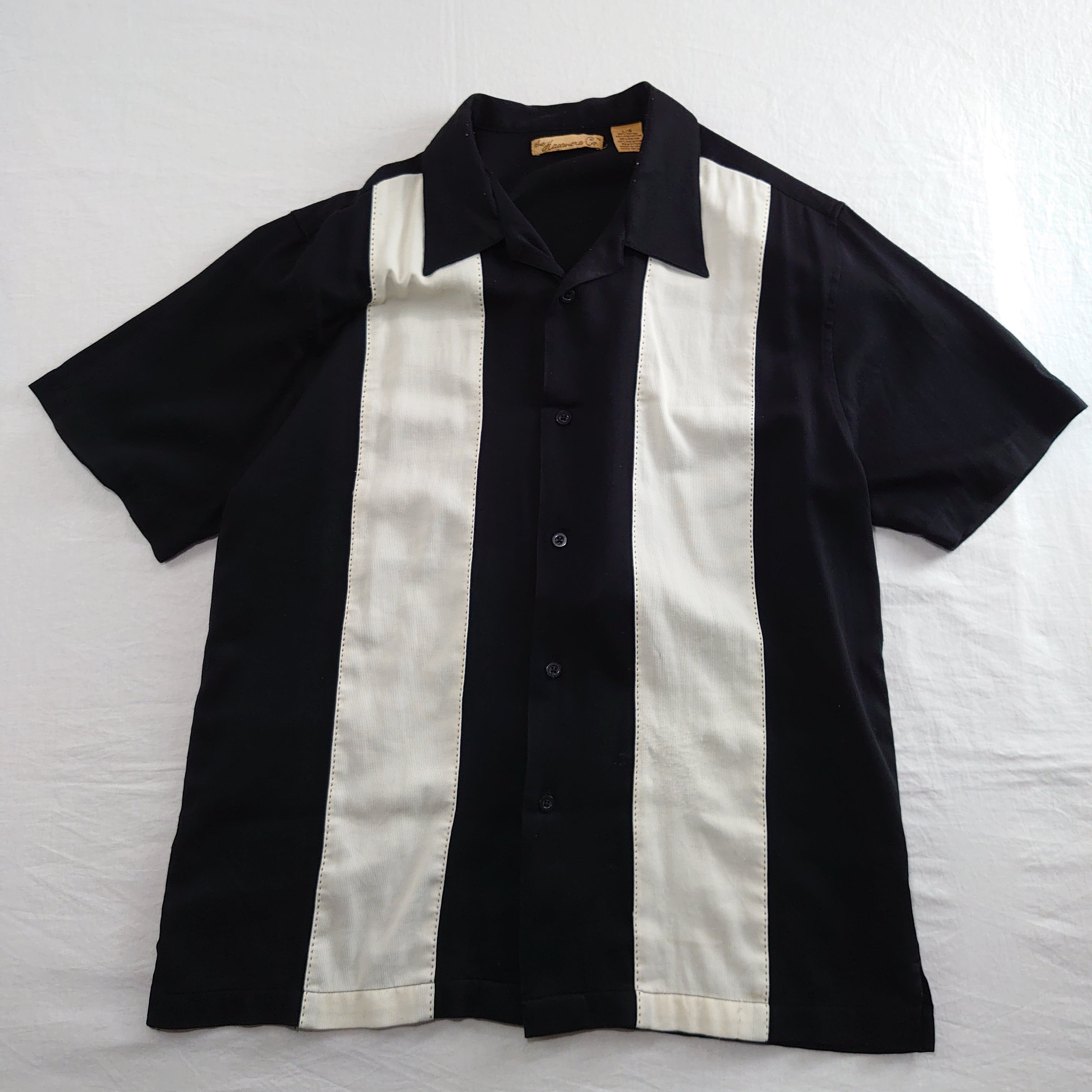 【大人気】ラインシャツ オープンカラーシャツ レーヨン混 ブラックホワイト