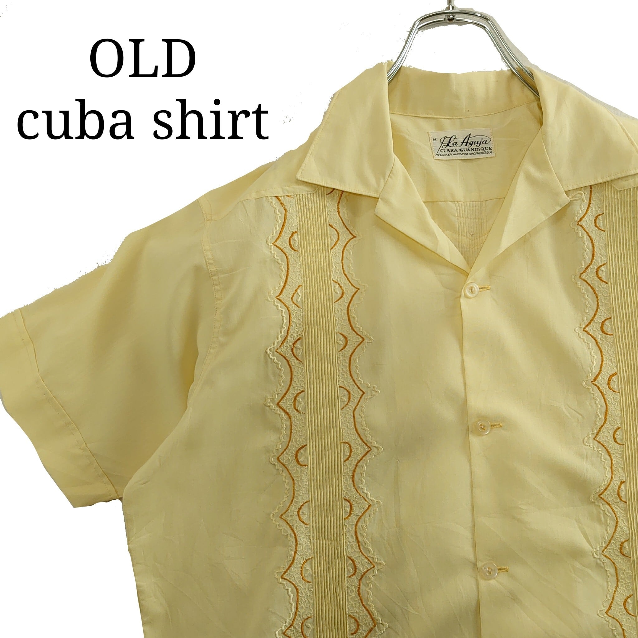 【雰囲気抜群】cuba shirt キューバシャツ イエロー 刺繍 ヴィンテージ