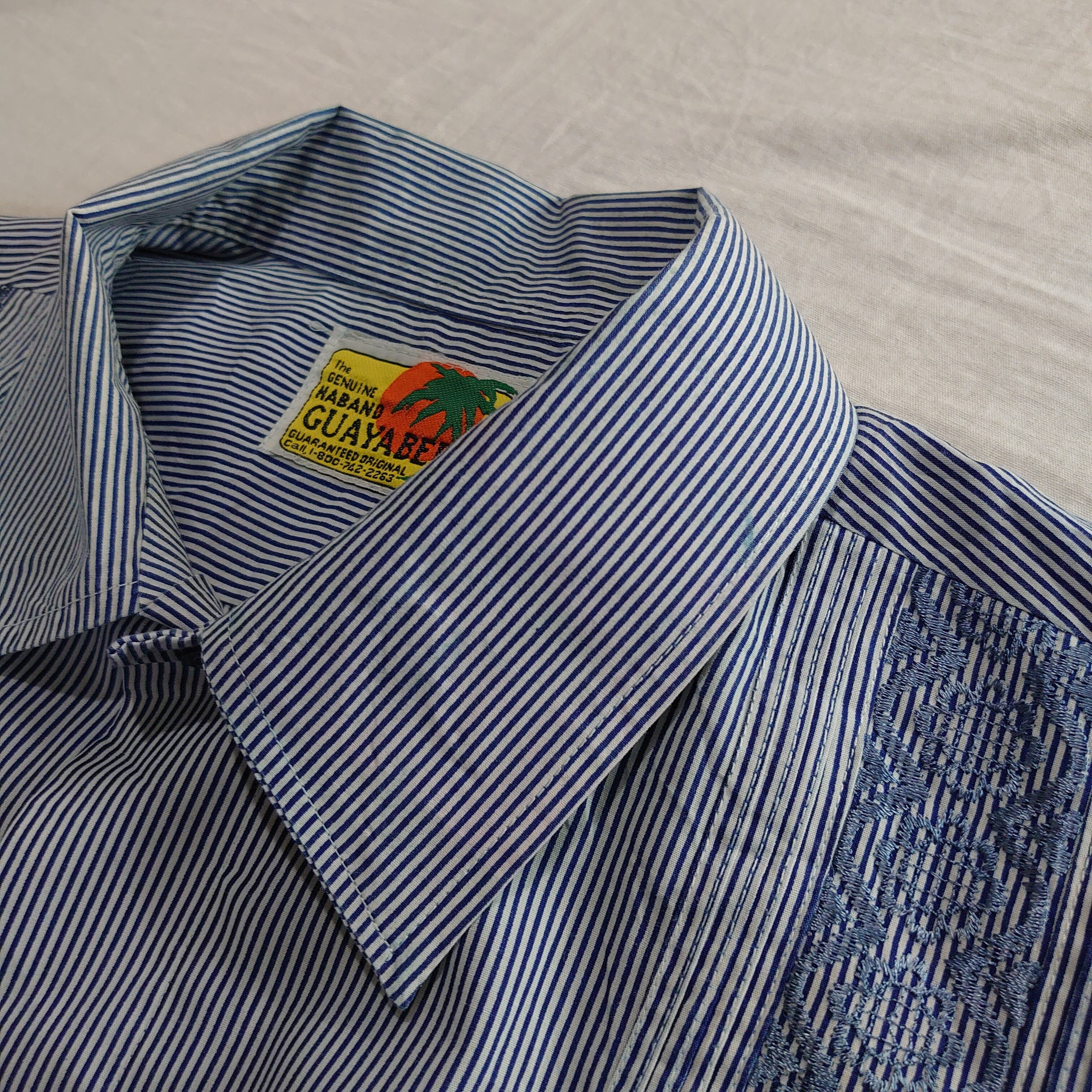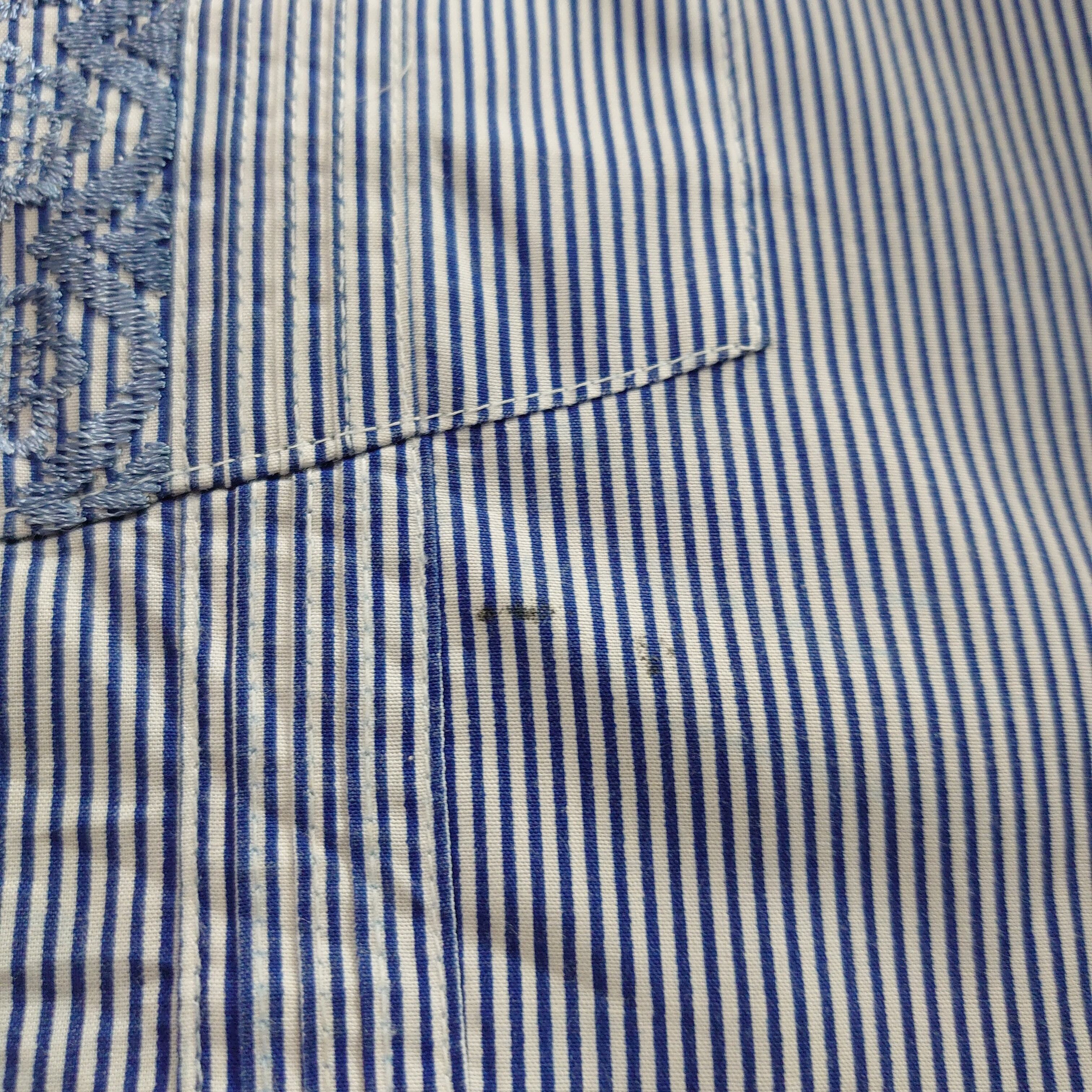 【希少デザイン】cuba shirt キューバシャツ ストライプ 刺繍入り