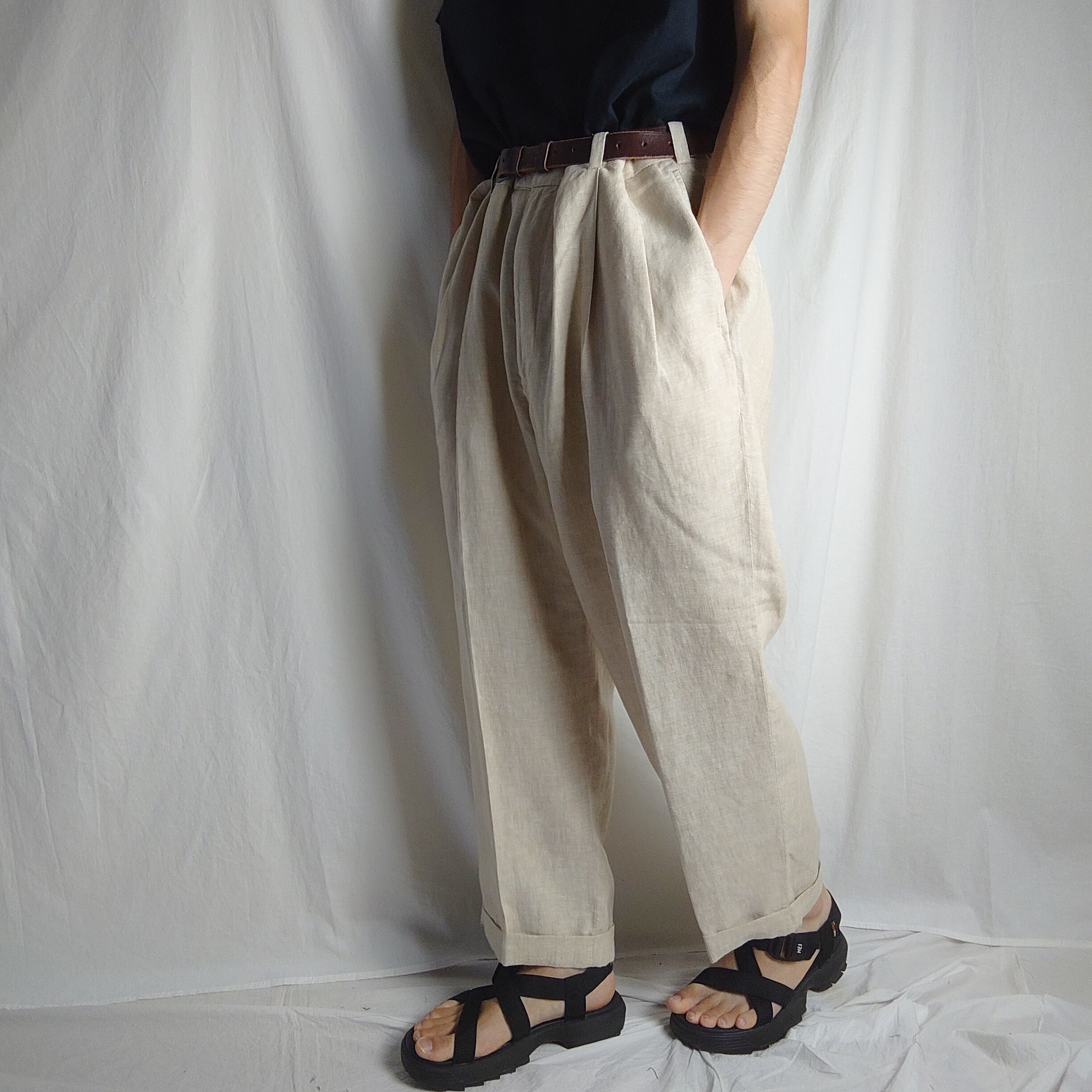 【上質】JOS.A.BANK 古着リネンパンツ ツータック ワイド 90~00s
